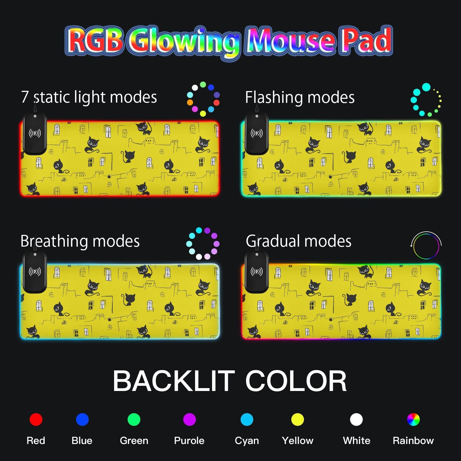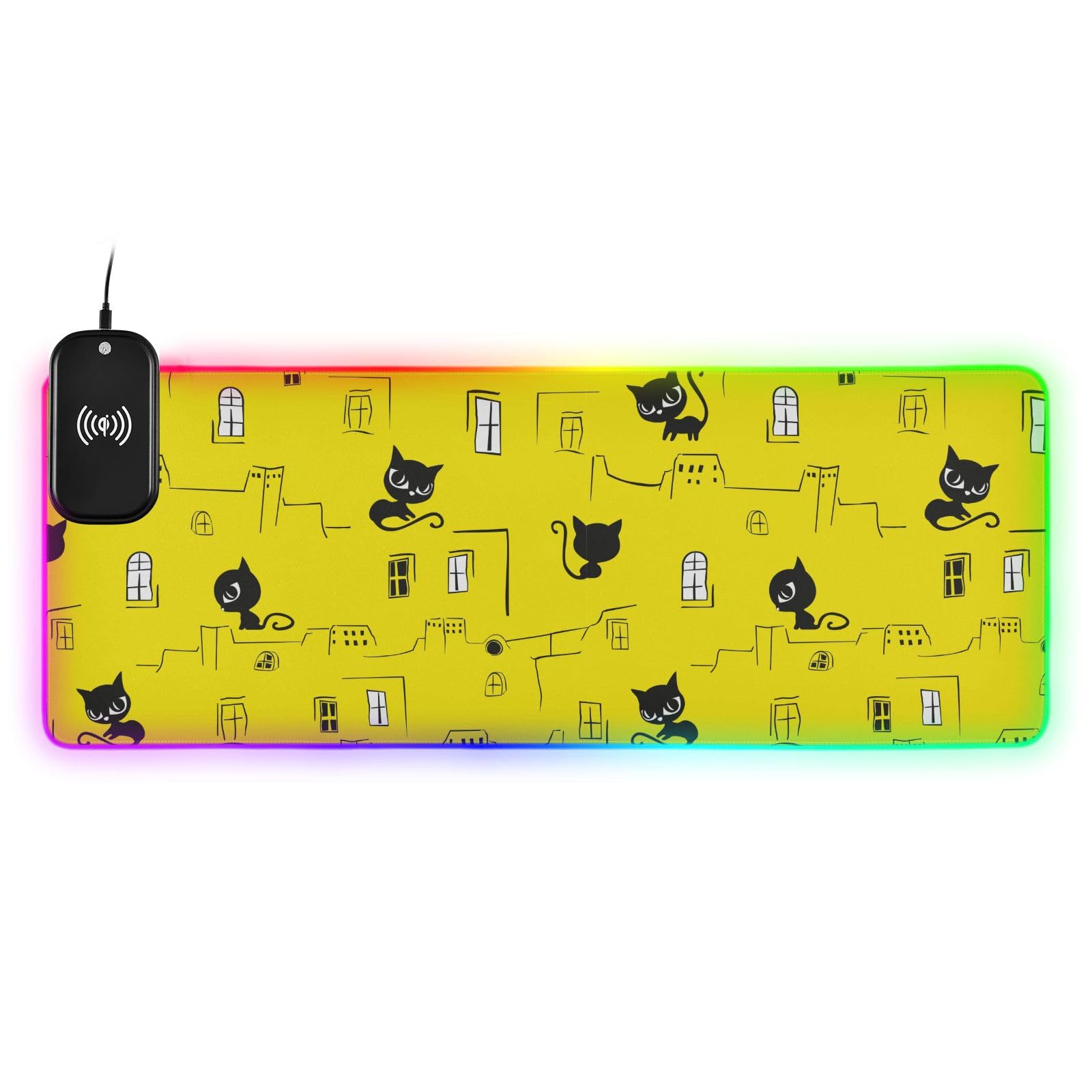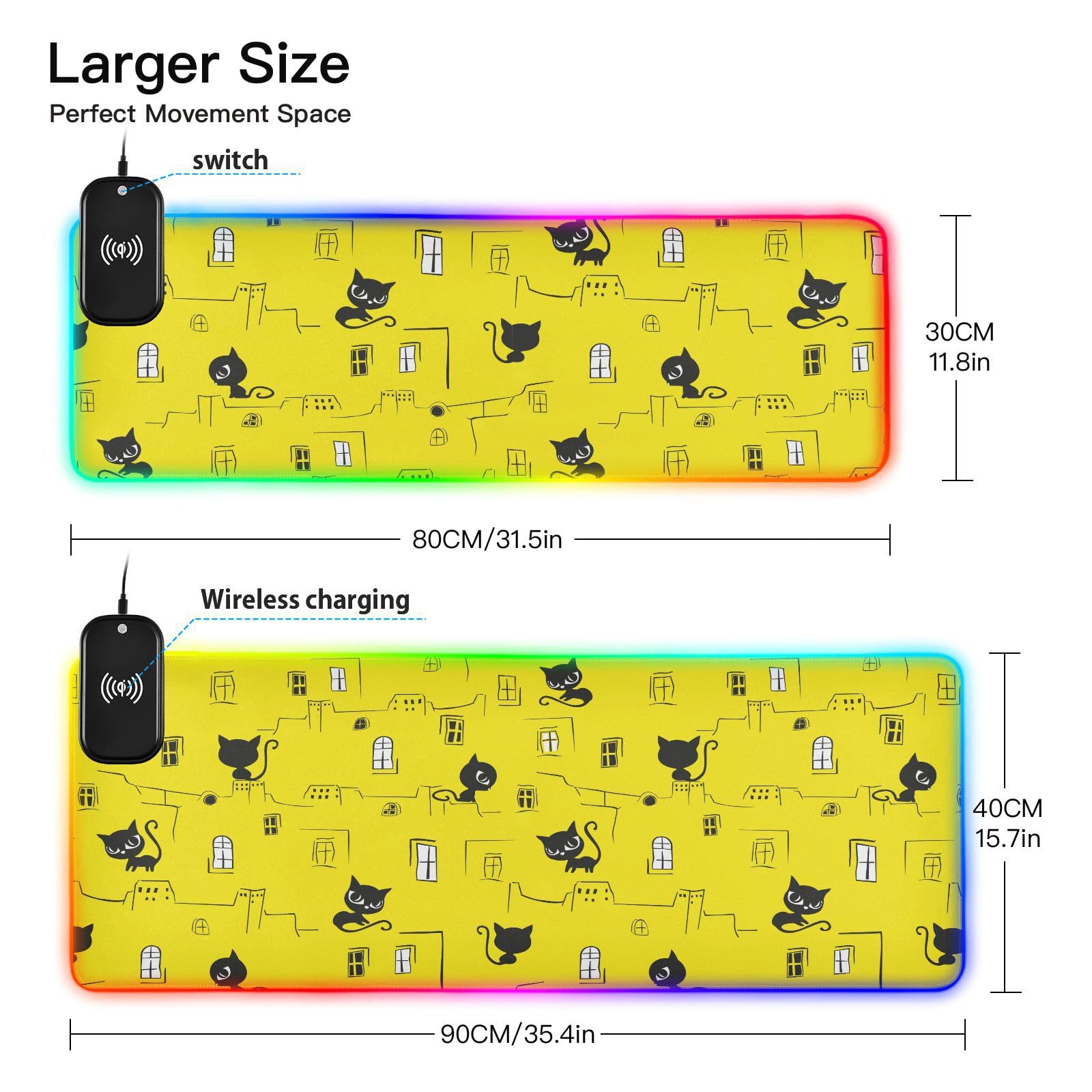 Black Cat Roof Wireless Charging Mouse Pad for Mobile Phone Extra Large Gaming Mousepad with 13 Lighting Modes Mouse Mat for Gaming MacBook PC Laptop Desk Office Home