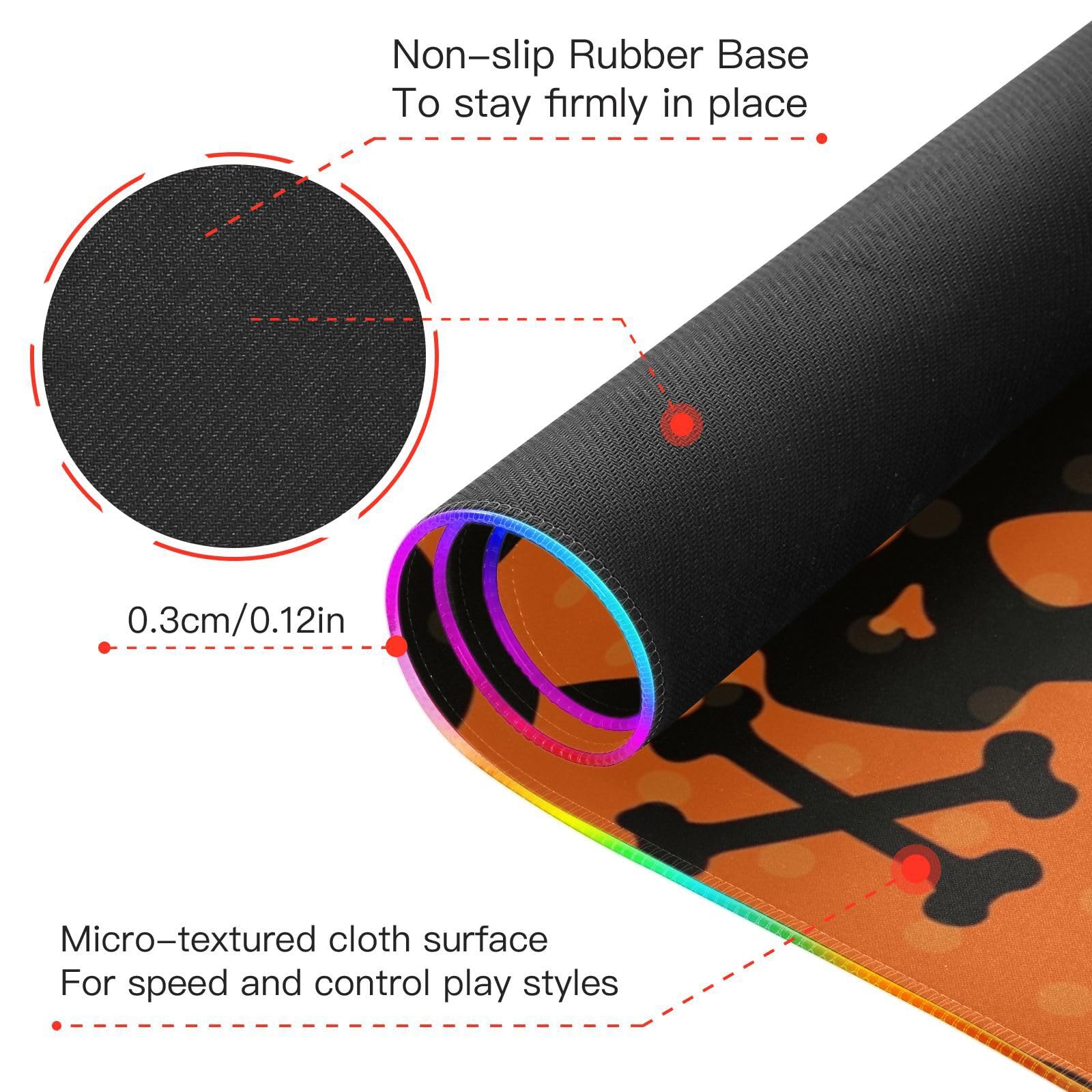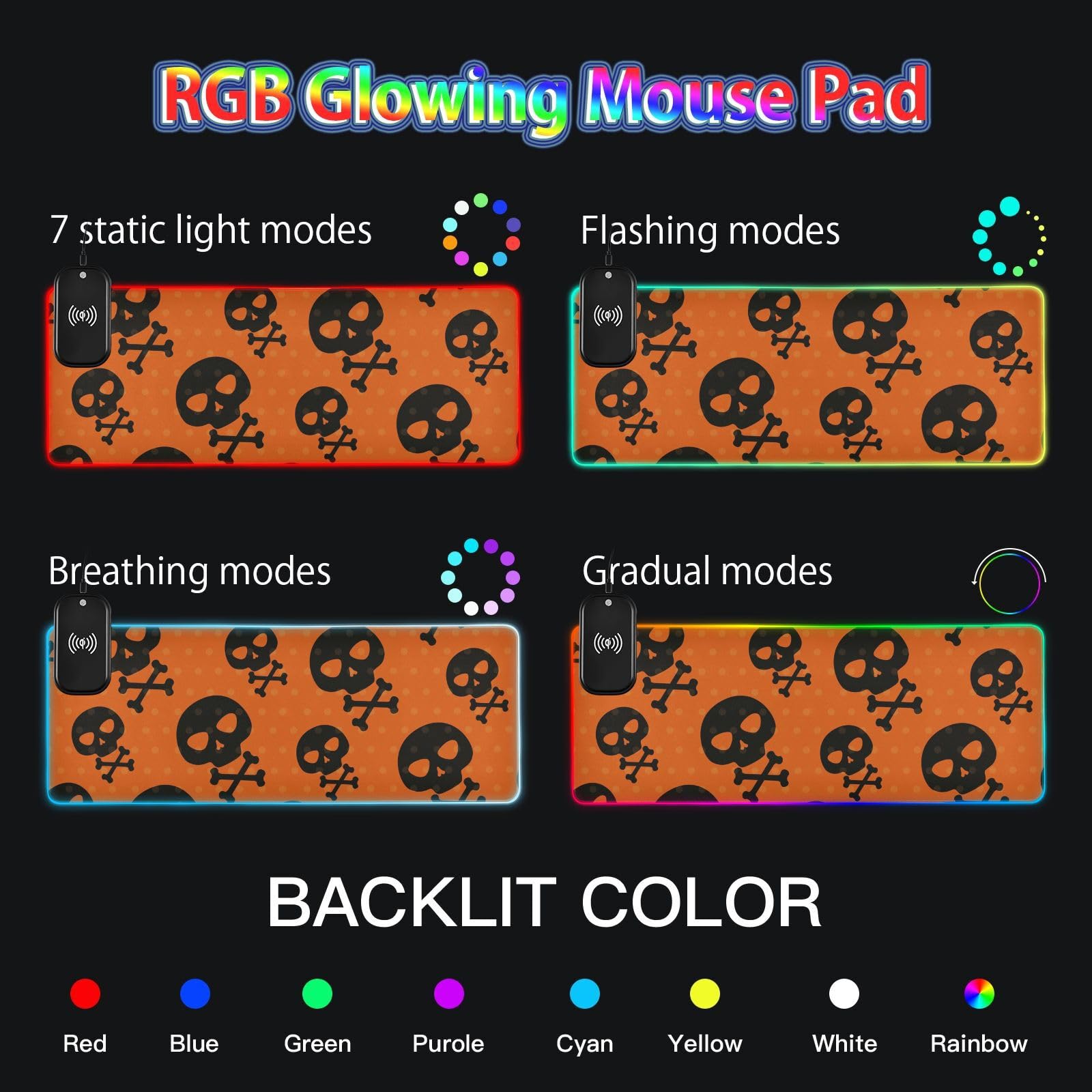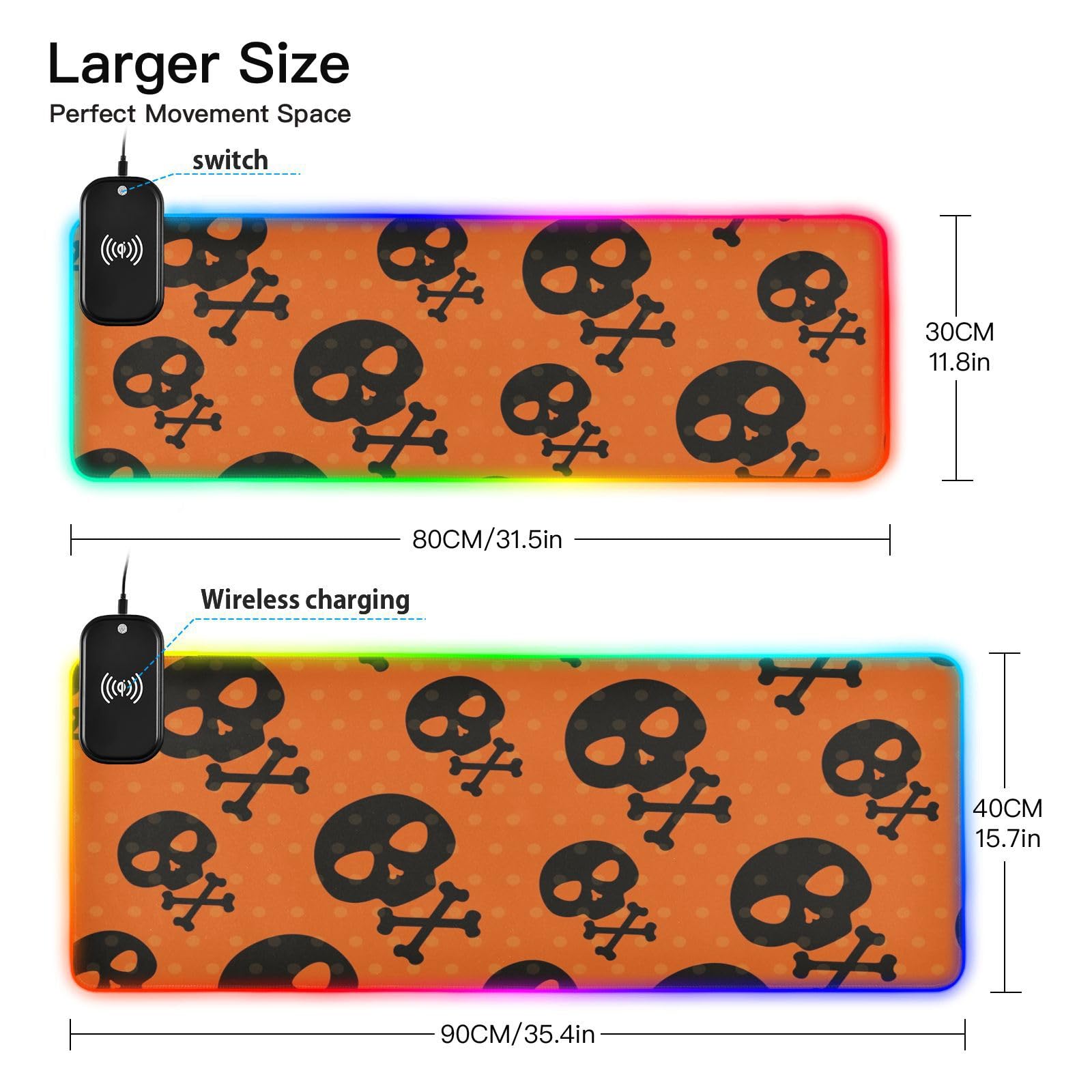 Halloween Skulls Wireless Charging Mouse Pad for Mobile Phone Extra Large Gaming Mousepad with 13 Lighting Modes Extended Desk Mat for Office Home Gaming MacBook PC Laptop Desk