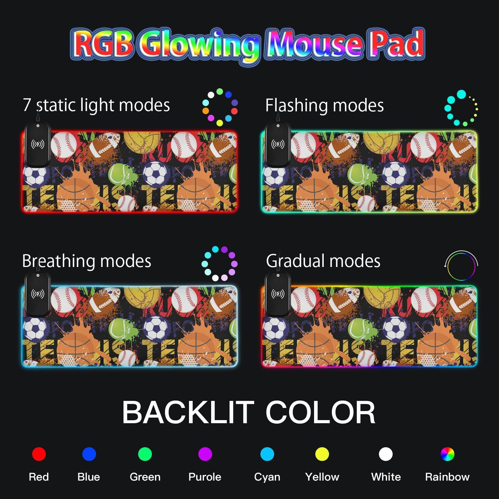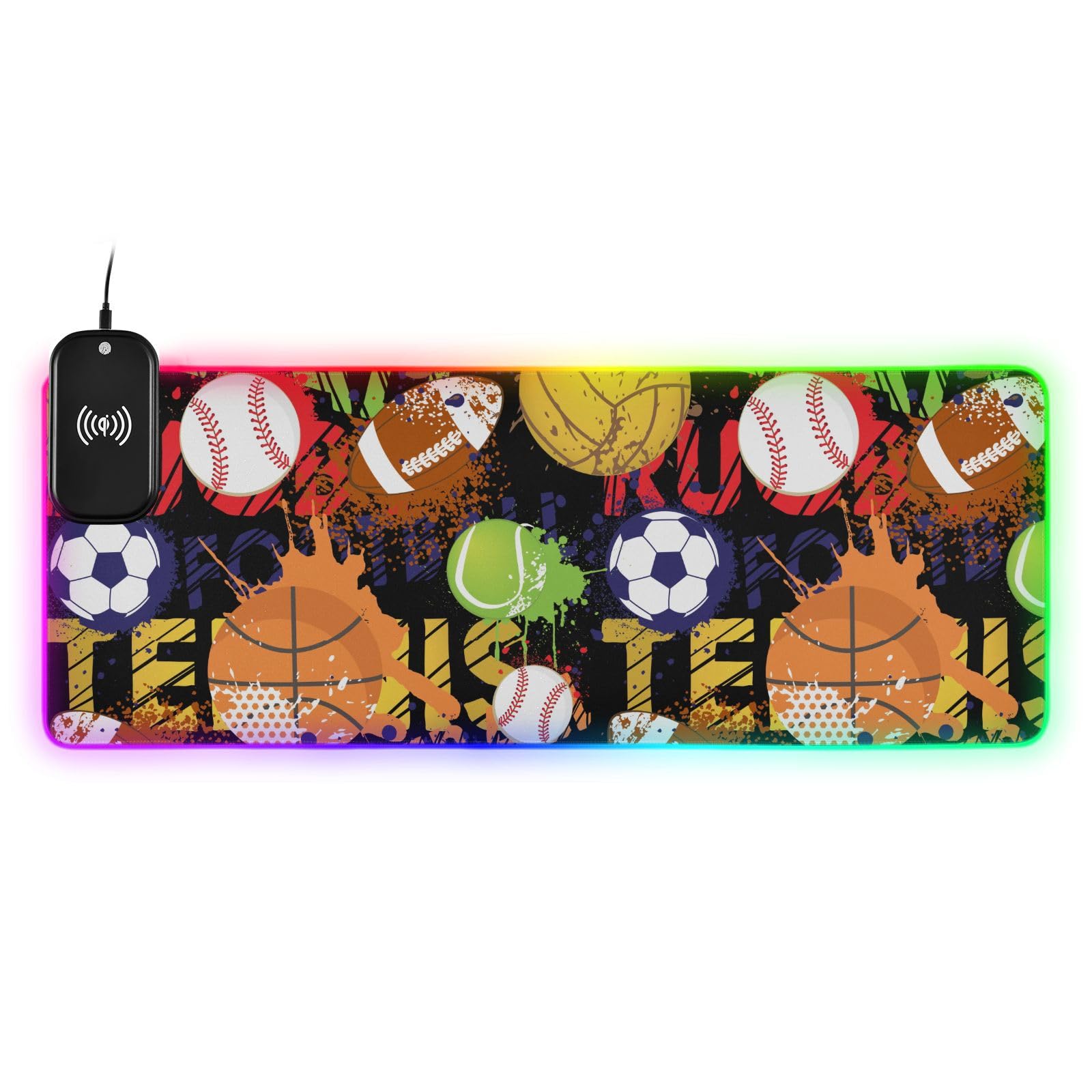Basketball Football Wireless Charging Mouse Pad for Mobile Phone Extra Large Gaming Mousepad with 13 Lighting Modes Keyboard Mat for Gaming MacBook PC Laptop Desk Home Office