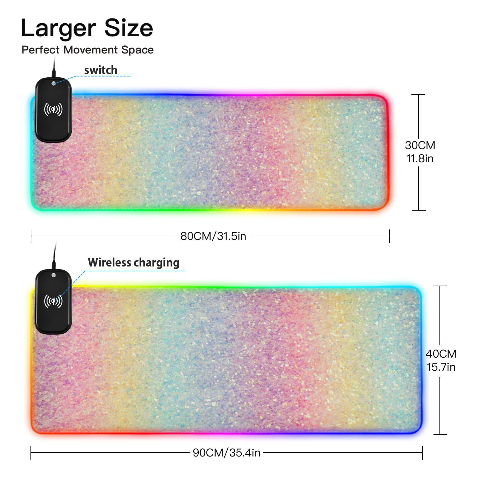 Glitter Lights Wireless Charging Mouse Pad for Mobile Phone Extra Large Gaming Mousepad with 13 Lighting Modes Computer Mat for MacBook PC Laptop Desk Office Home Gaming