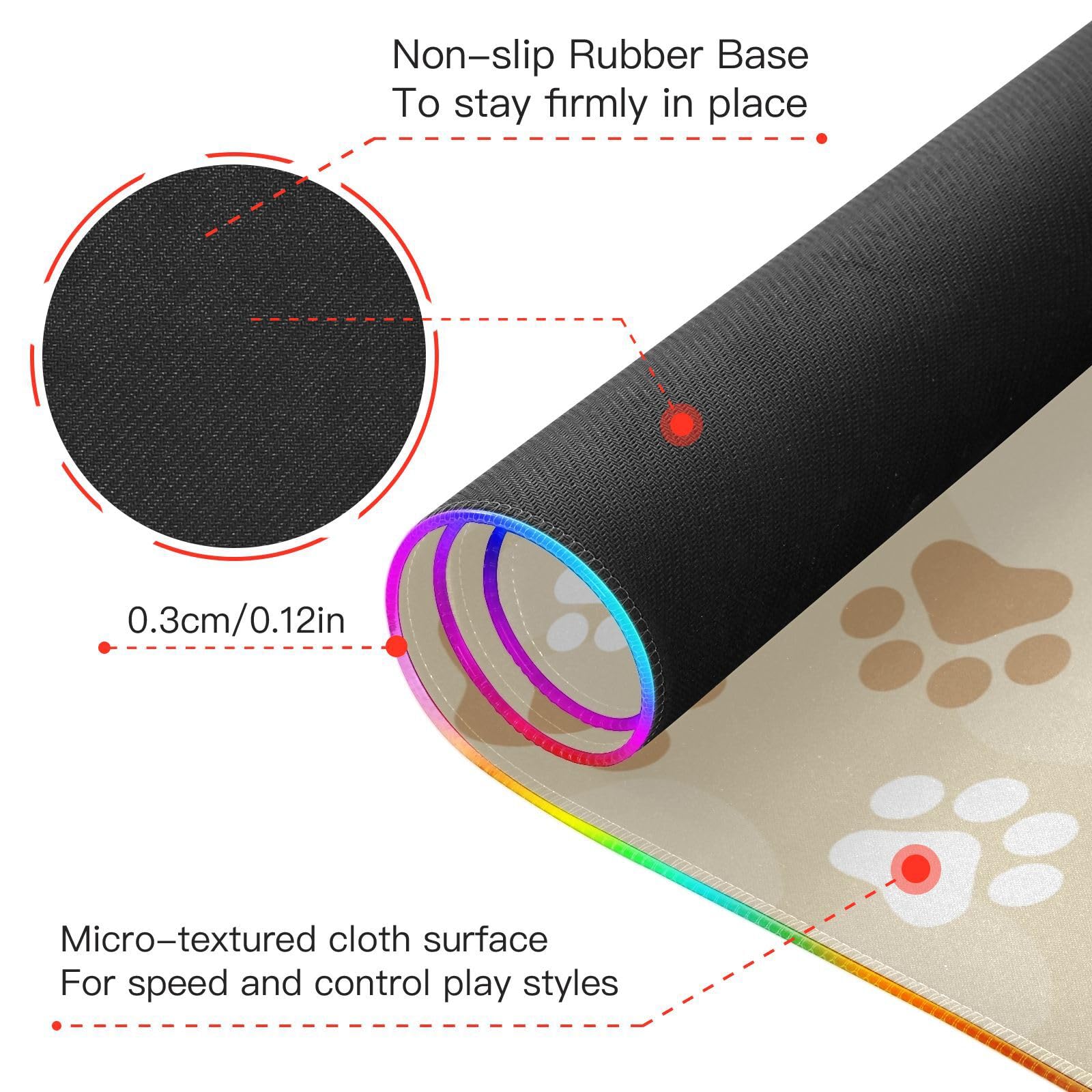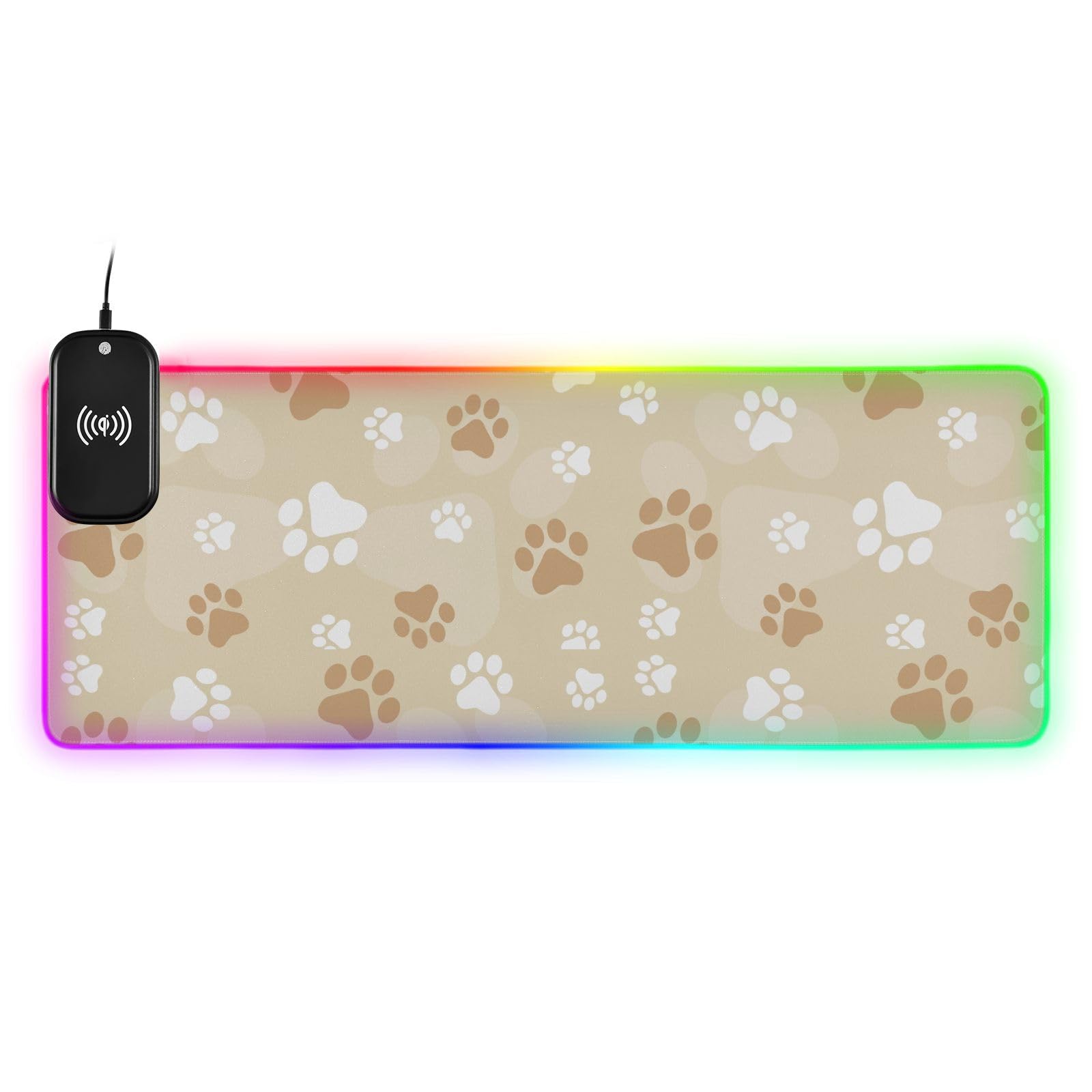 Dog Paw Prints Wireless Charging Mouse Pad for Mobile Phone Extra Large Gaming Mousepad with 13 Lighting Modes Keyboard Mat for Office Home Gaming MacBook PC Laptop Desk