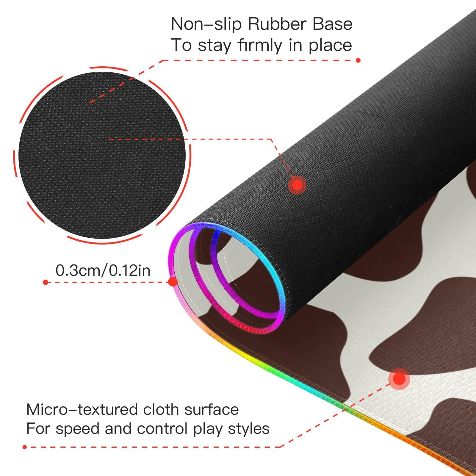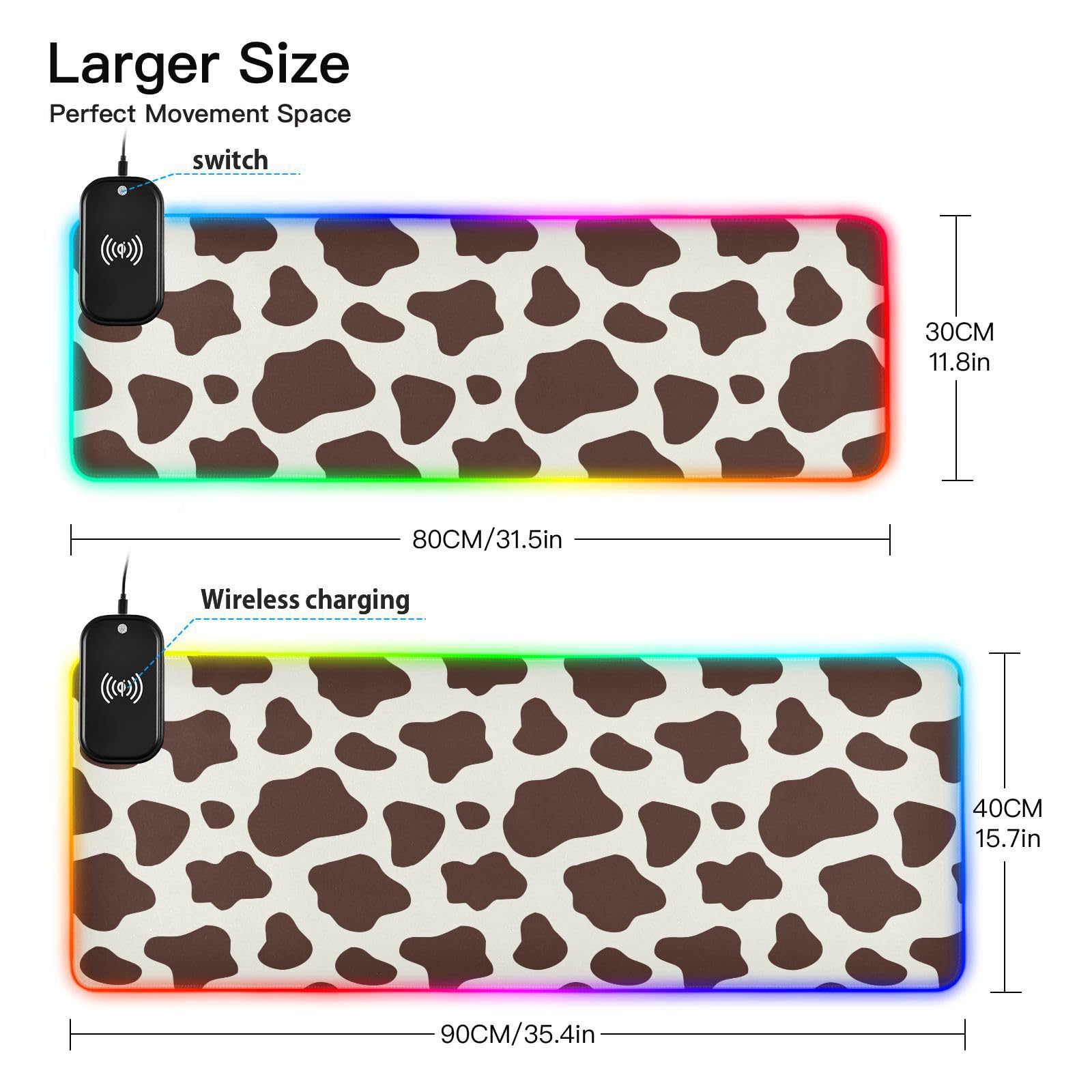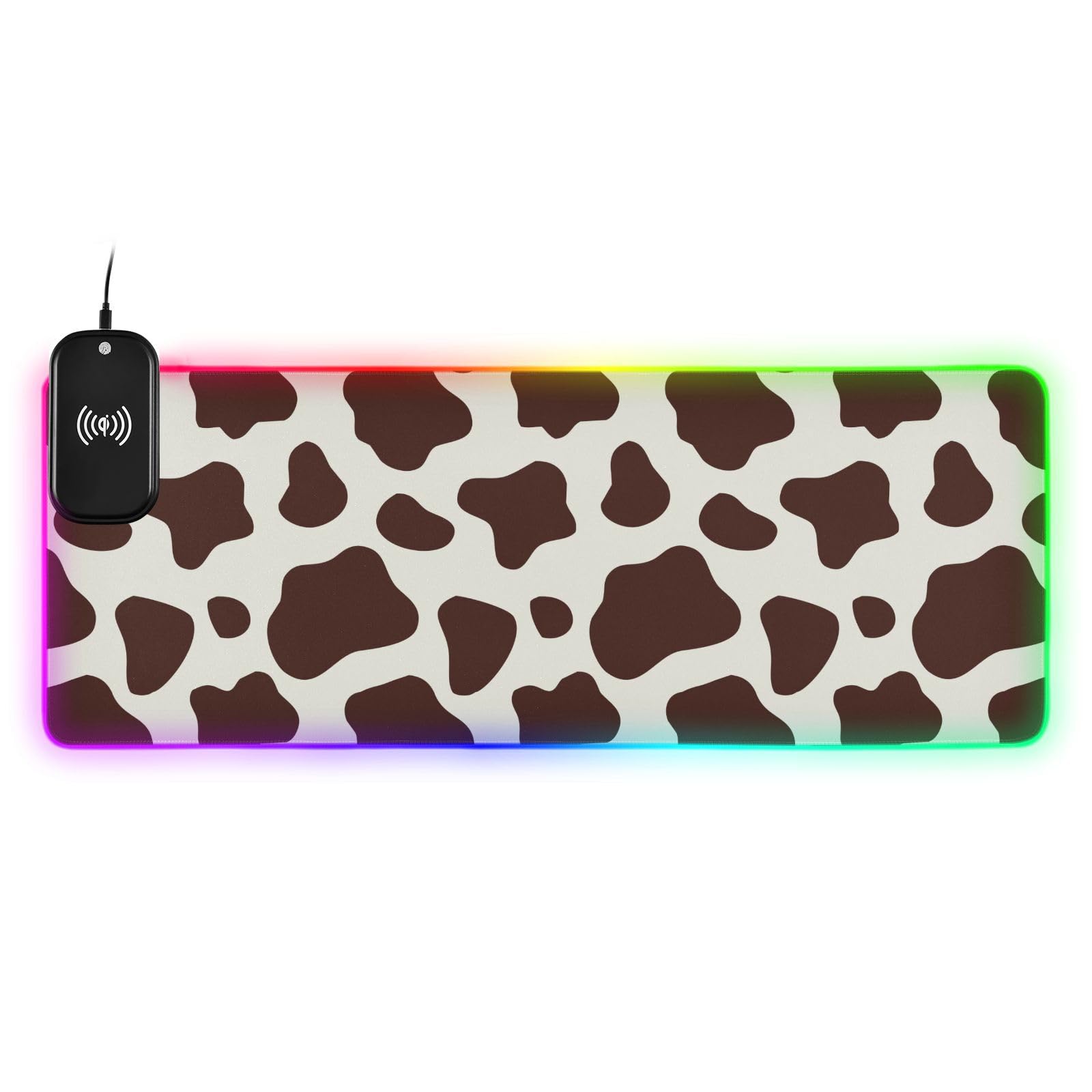 Brown White Cow Textures Wireless Charging Mouse Pad for Mobile Phone Extra Large Gaming Mousepad with 13 Lighting Modes Extended Desk Mat for Gaming MacBook PC Laptop Desk Office Home