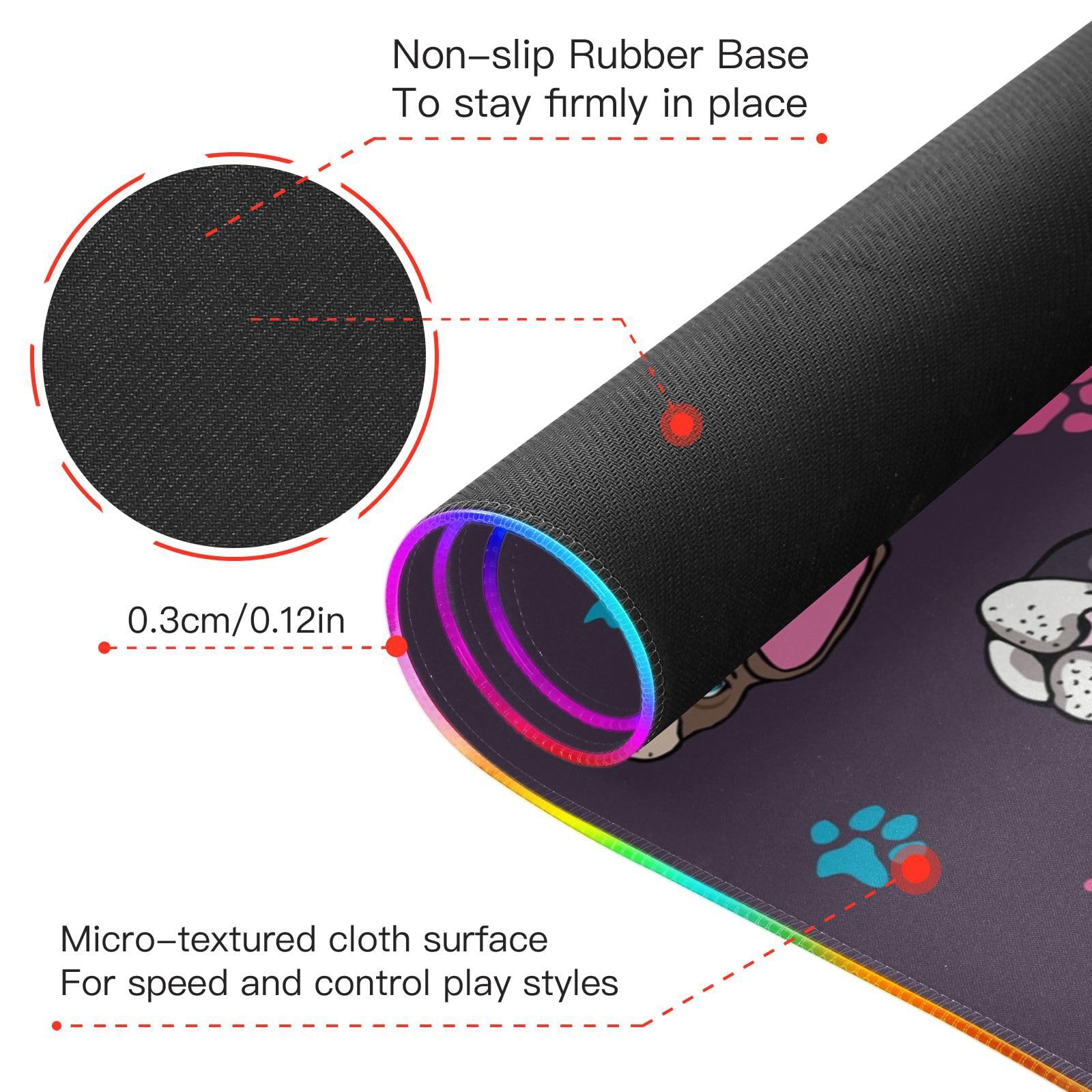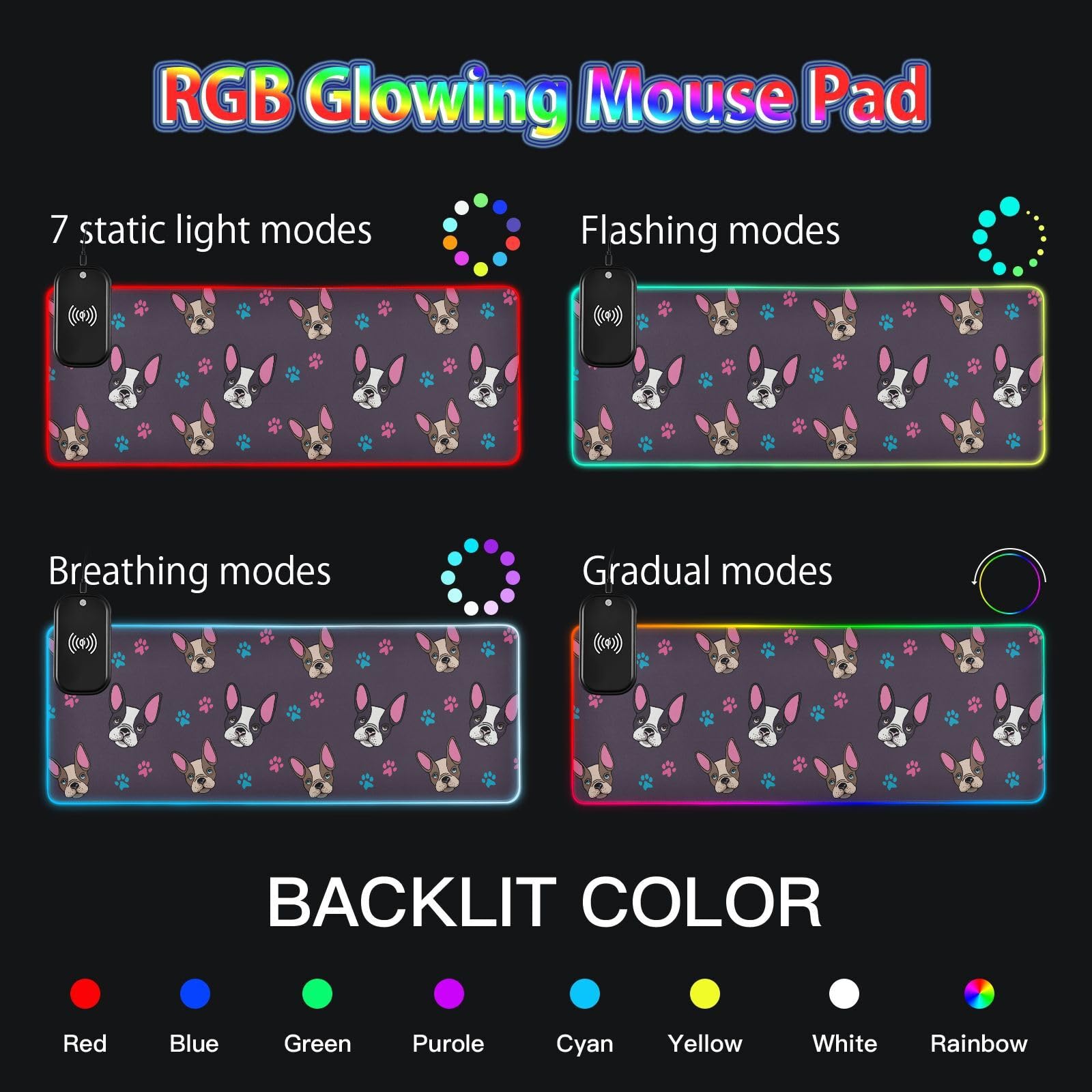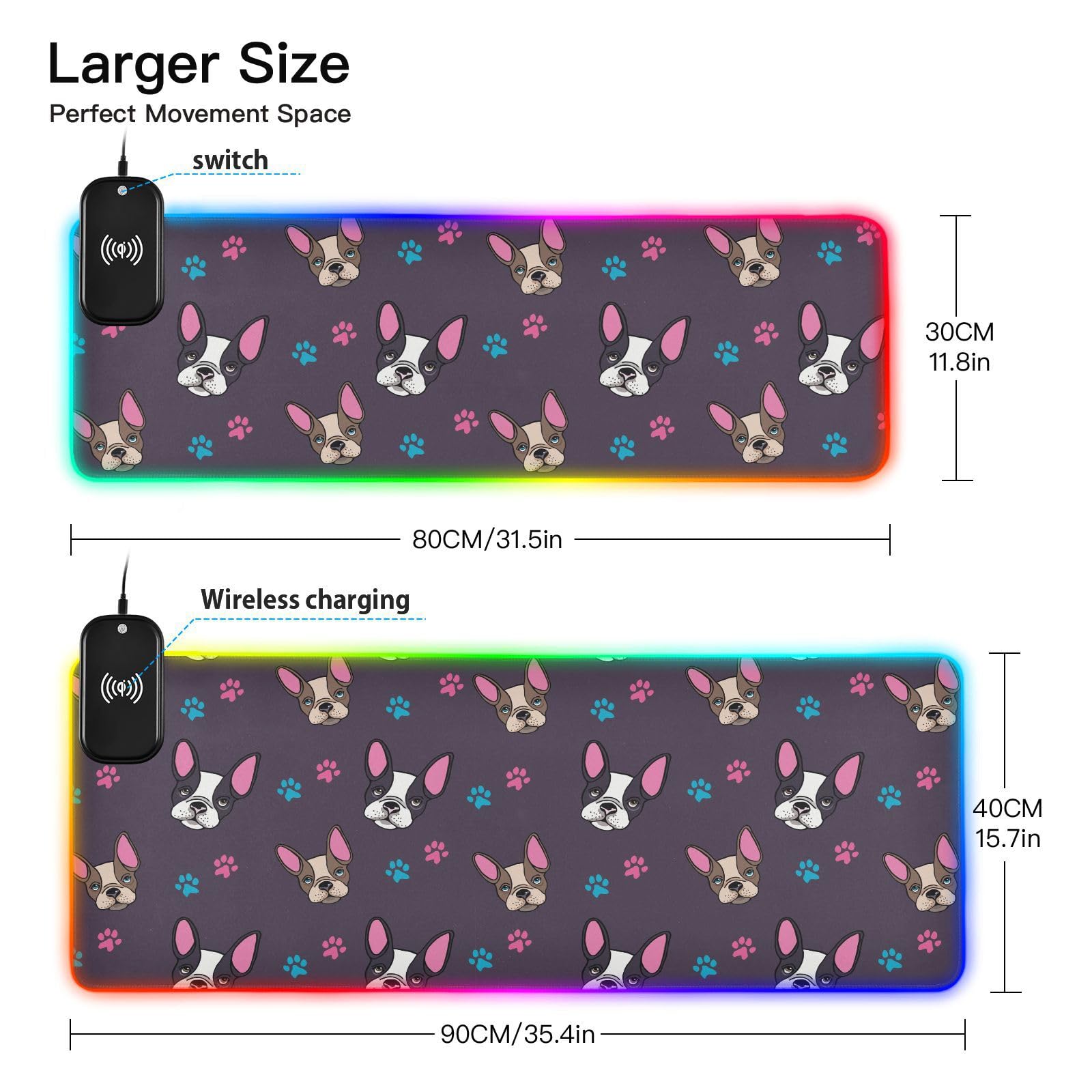 Cute French Bulldog Puppies Wireless Charging Mouse Pad for Mobile Phone Extra Large Gaming Mousepad with 13 Lighting Modes Extended Desk Mat for Gaming MacBook PC Laptop Desk Office Home