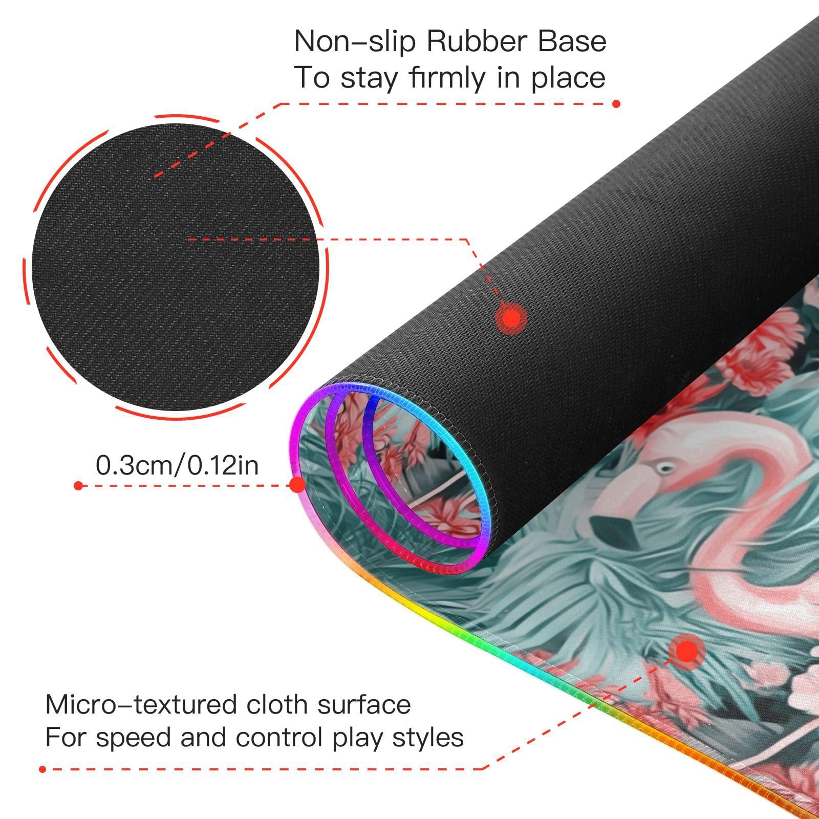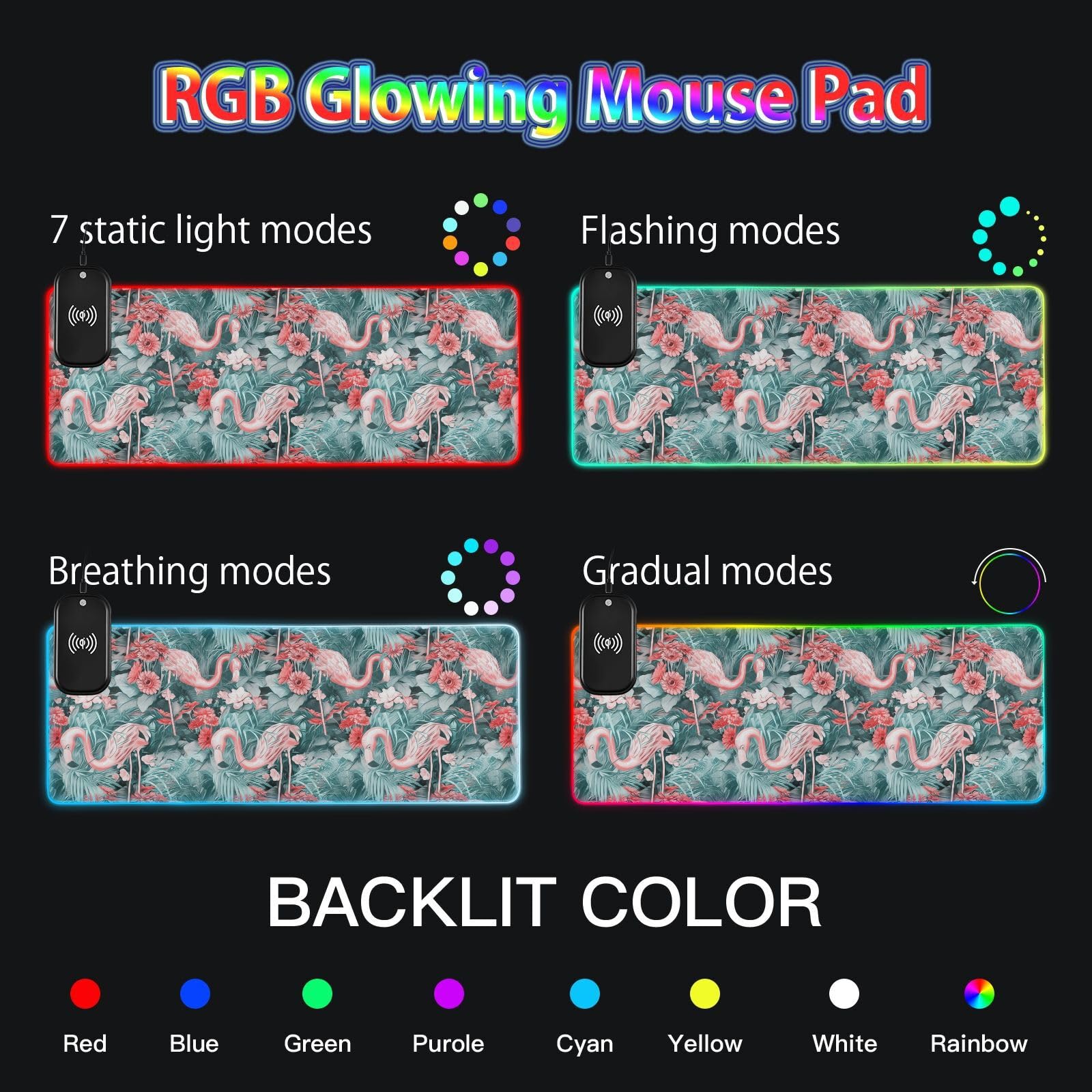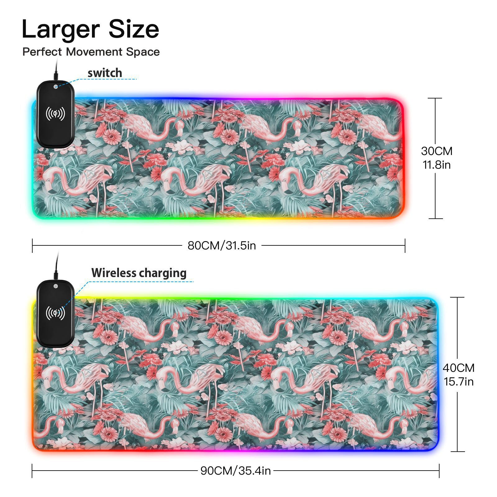 Flamingos Pink Flowers Wireless Charging Mouse Pad for Mobile Phone Extra Large Gaming Mousepad with 13 Lighting Modes Computer Mat for Gaming MacBook PC Laptop Desk Home Office