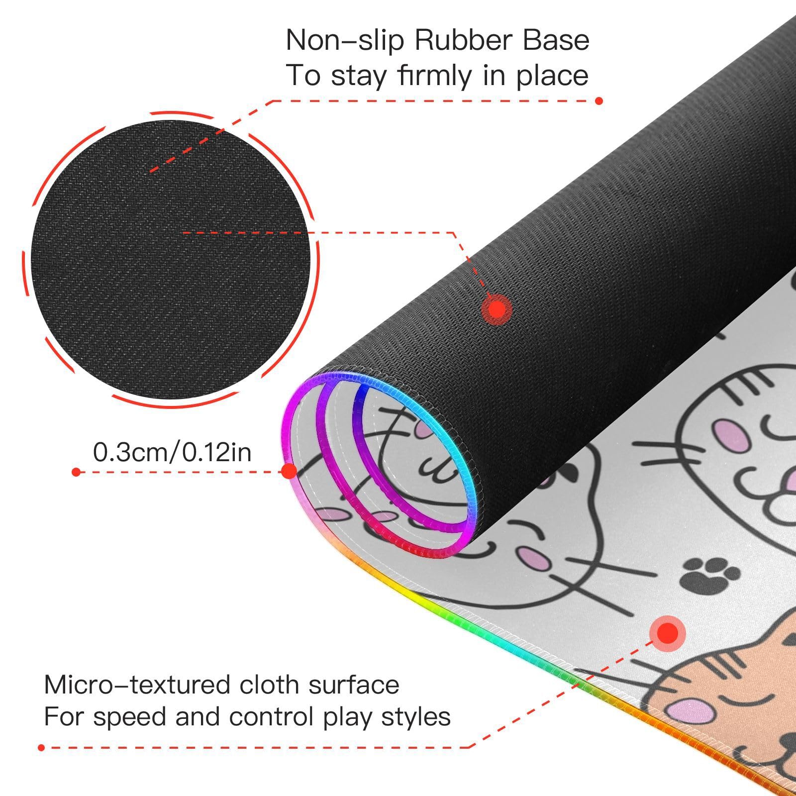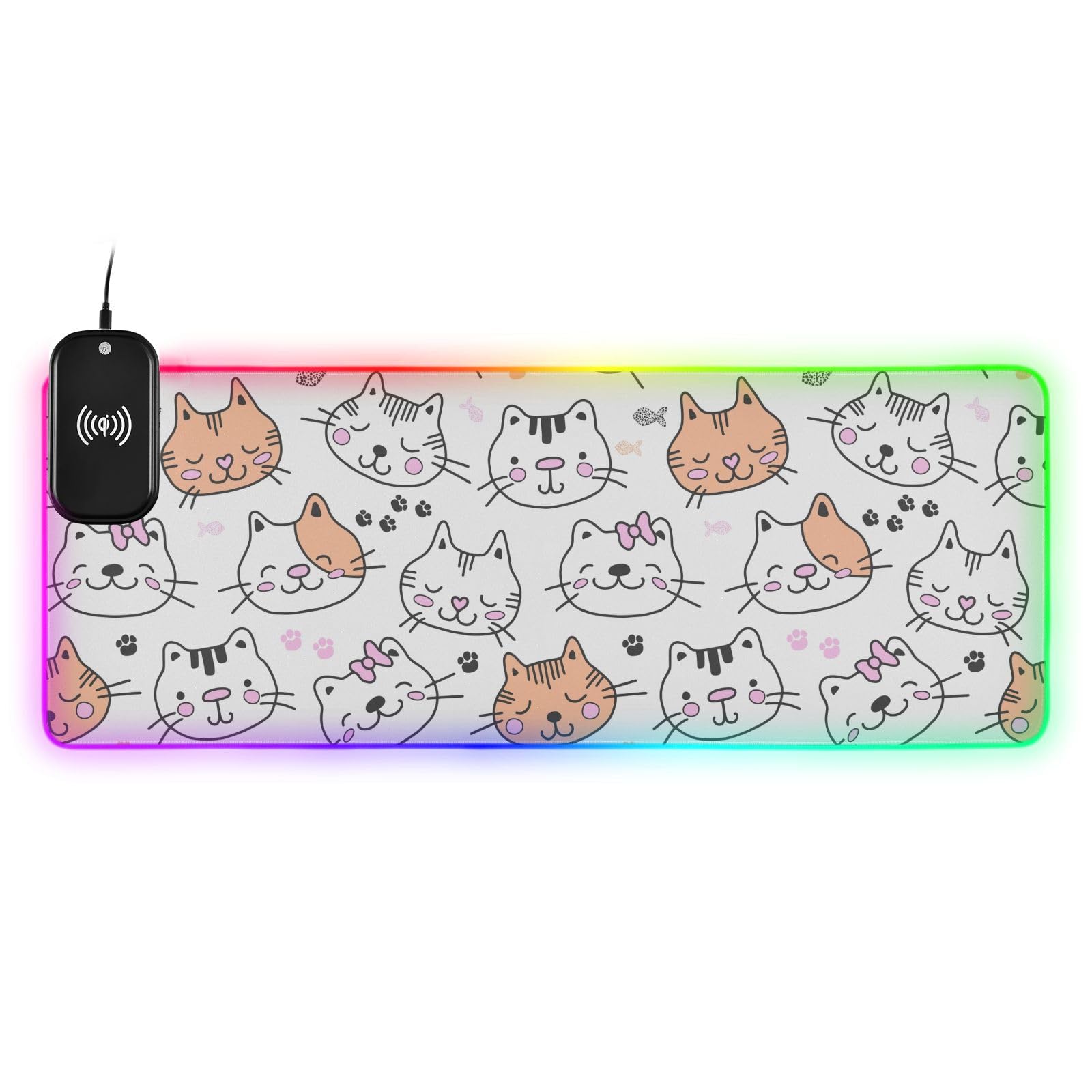 Cute Cat Animal Wireless Charging Mouse Pad for Mobile Phone Extra Large Gaming Mousepad with 13 Lighting Modes Extended Desk Mat for Gaming MacBook PC Laptop Desk Office Home
