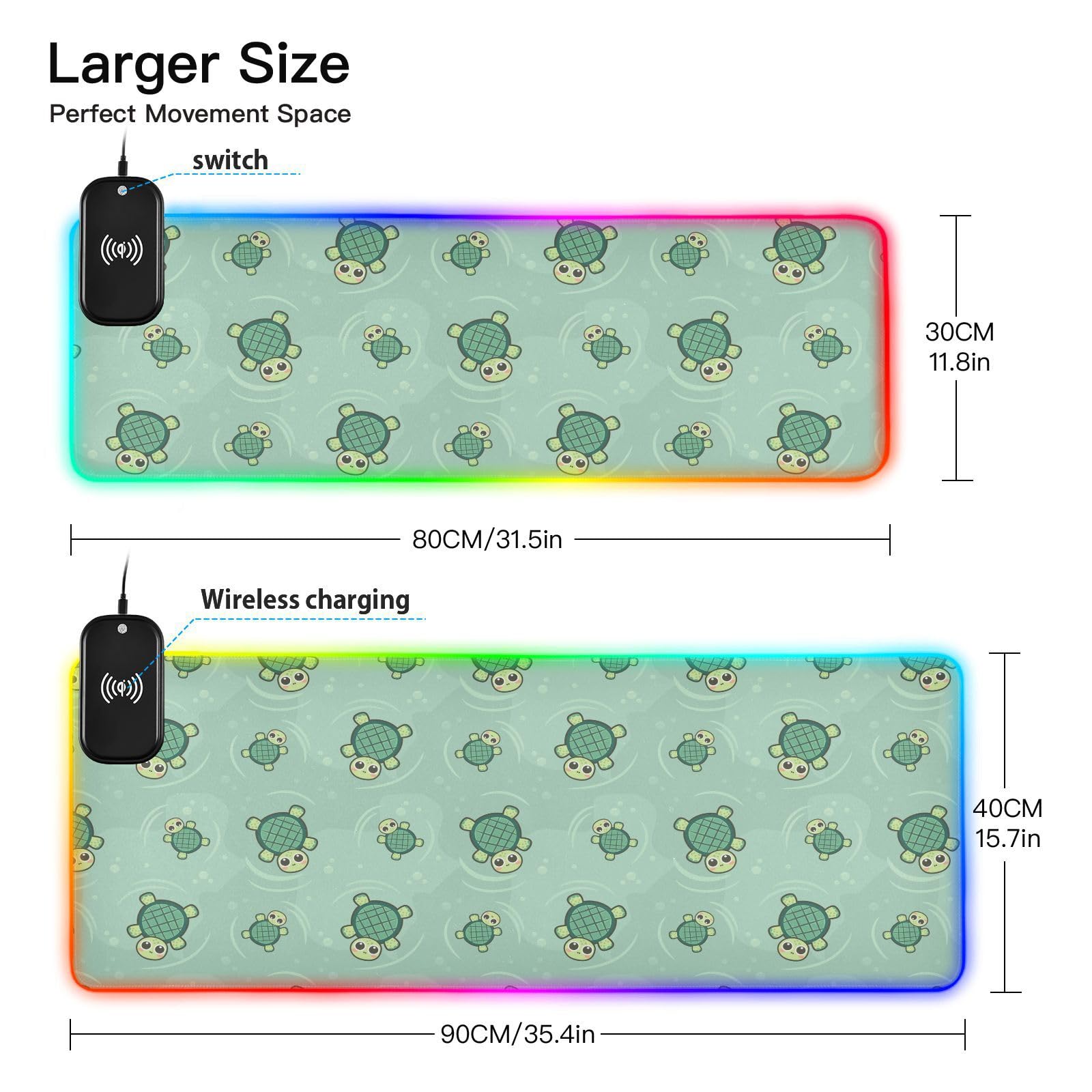 Cute Turtle Wireless Charging Mouse Pad for Mobile Phone Extra Large Gaming Mousepad with 13 Lighting Modes Extended Desk Mat for MacBook PC Laptop Desk Office Home Gaming