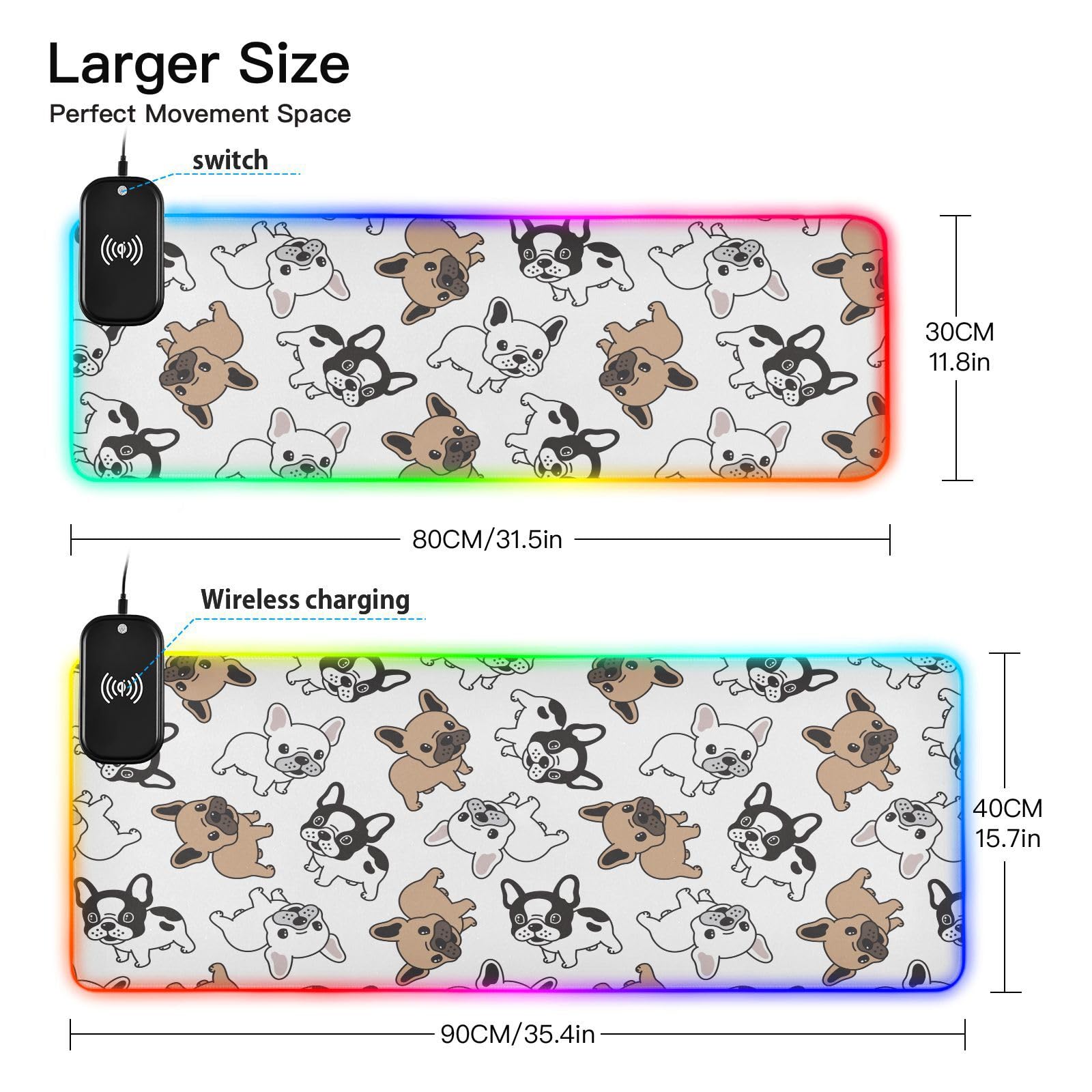 Cartoon Dog Wireless Charging Mouse Pad for Mobile Phone Extra Large Gaming Mousepad with 13 Lighting Modes Extended Desk Mat for Gaming MacBook PC Laptop Desk Office Home
