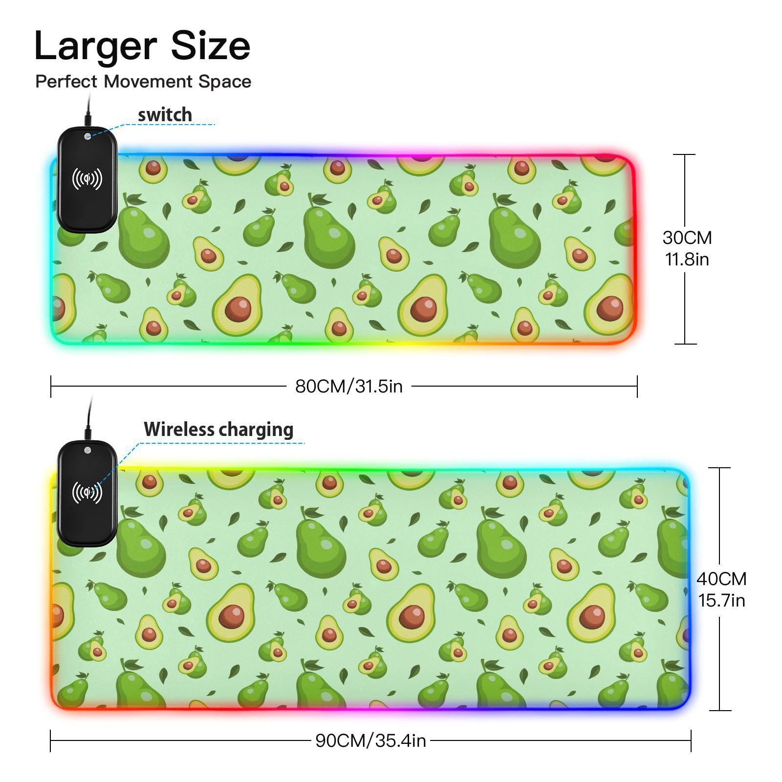 Avocados Wireless Charging Mouse Pad for Mobile Phone Extra Large Gaming Mousepad with 13 Lighting Modes Keyboard Mat for MacBook PC Laptop Desk Office Home Gaming