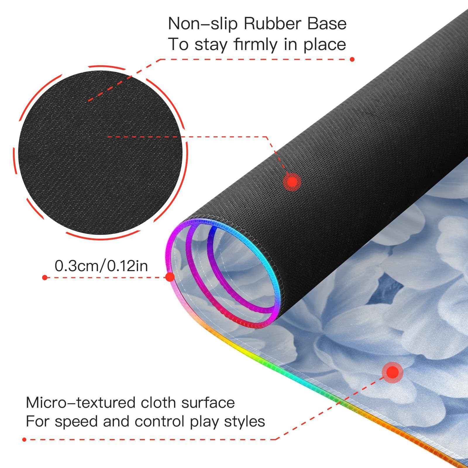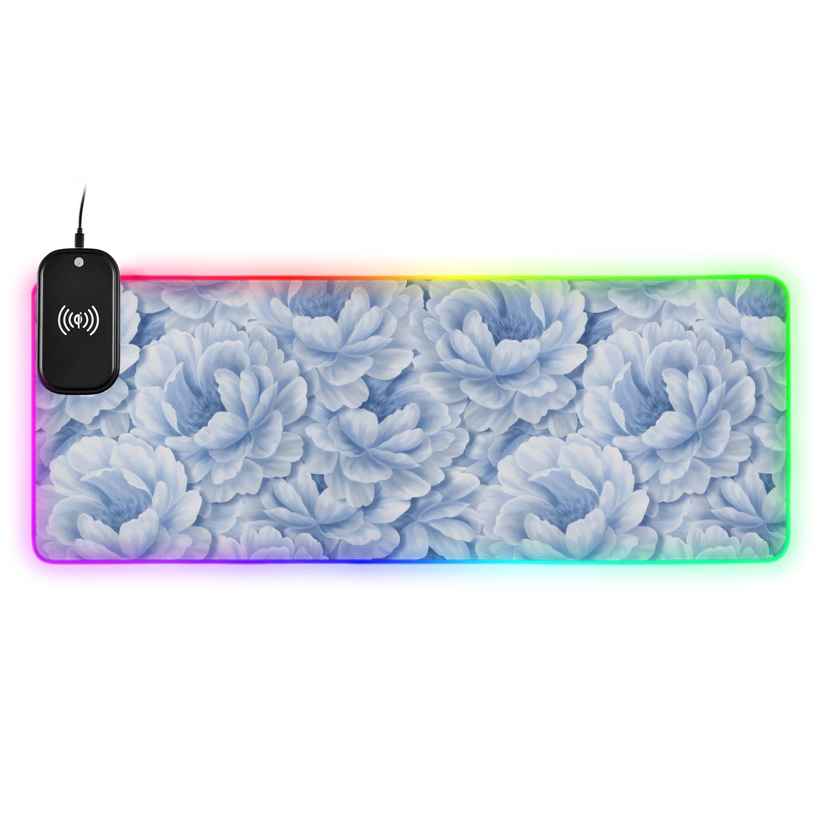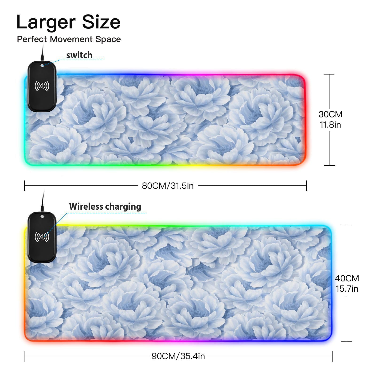 Blue Floral Peony Wireless Charging Mouse Pad for Mobile Phone Extra Large Gaming Mousepad with 13 Lighting Modes Computer Mat for Gaming MacBook PC Laptop Desk Office Home