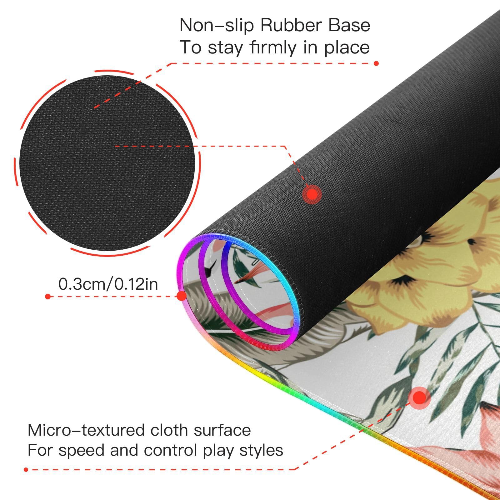 Flamingo Flowers Wireless Charging Mouse Pad for Mobile Phone Extra Large Gaming Mousepad with 13 Lighting Modes Extended Desk Mat for Gaming MacBook PC Laptop Desk Office Home
