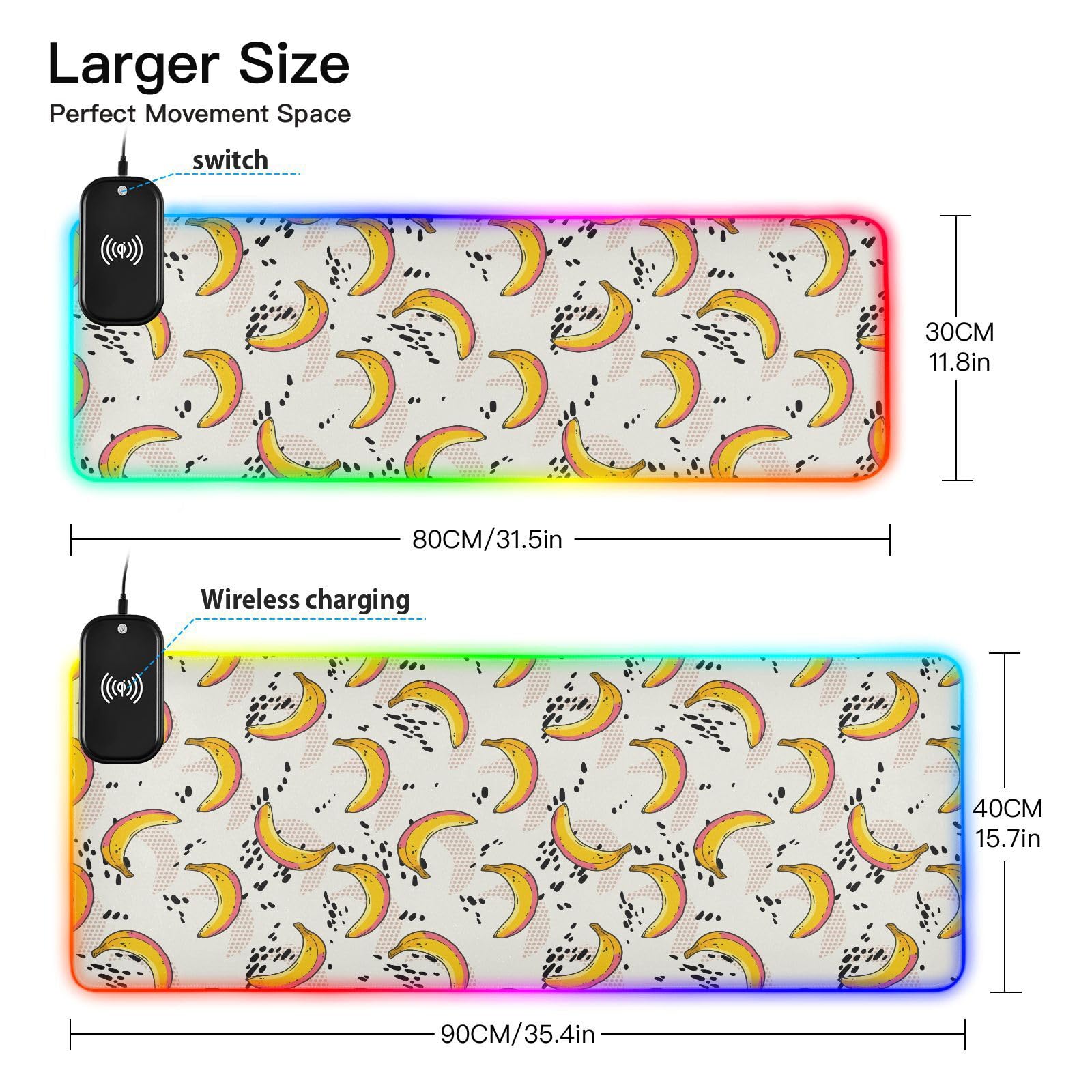 Banana Wireless Charging Mouse Pad for Mobile Phone Extra Large Gaming Mousepad with 13 Lighting Modes Keyboard Mat for MacBook PC Laptop Desk Office Home Gaming