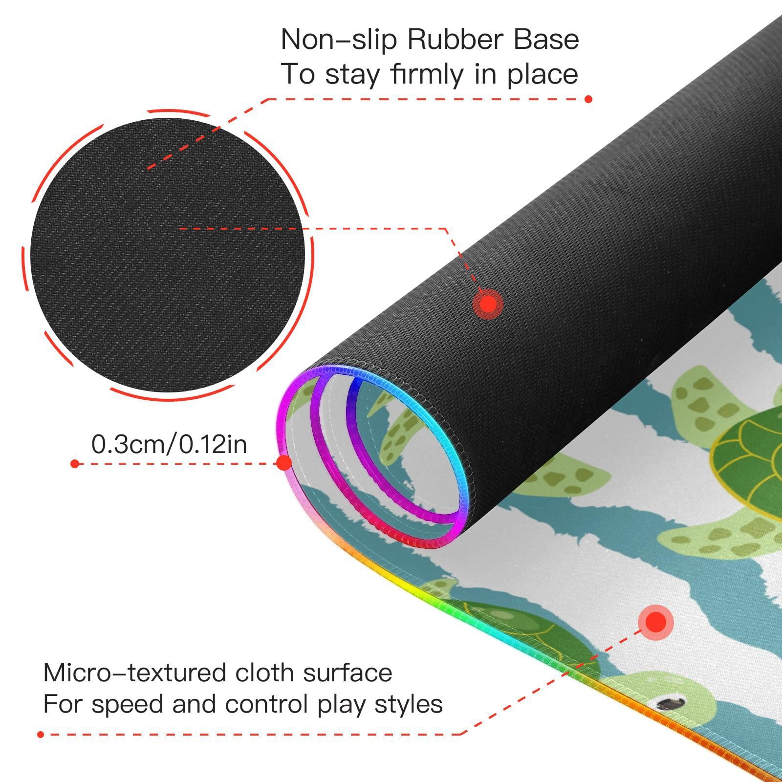 Green Turtles Wireless Charging Mouse Pad for Mobile Phone Extra Large Gaming Mousepad with 13 Lighting Modes Computer Mat for Gaming MacBook PC Laptop Desk Office Home