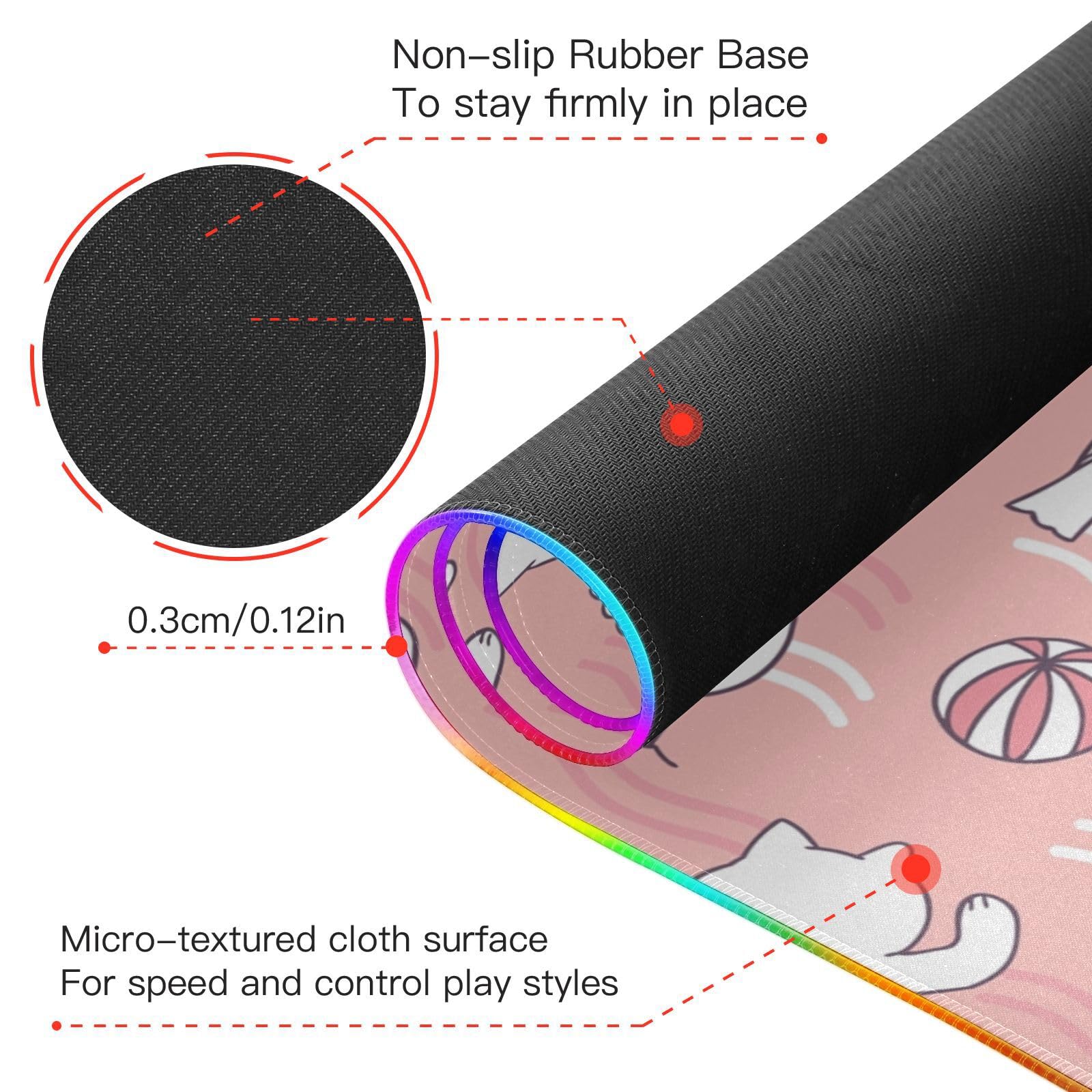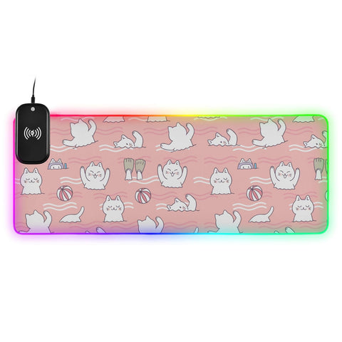 Cartoon Cute Sweet Cat Wireless Charging Mouse Pad for Mobile Phone Extra Large Gaming Mousepad with 13 Lighting Modes Mouse Mat for MacBook PC Laptop Desk Office Home Gaming