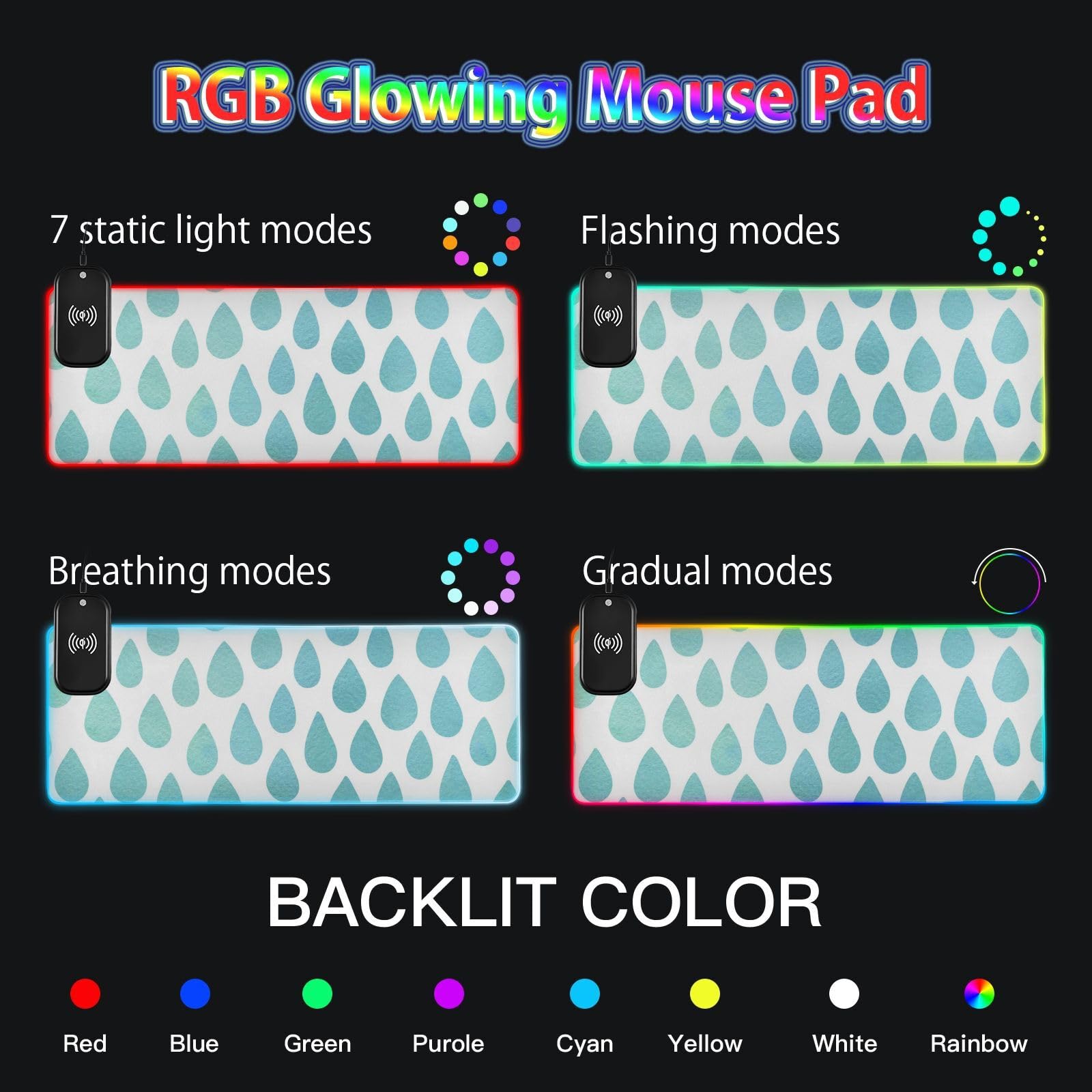 Blue Dots Wireless Charging Mouse Pad for Mobile Phone Extra Large Gaming Mousepad with 13 Lighting Modes Keyboard Mat for Gaming MacBook PC Laptop Desk Home Office