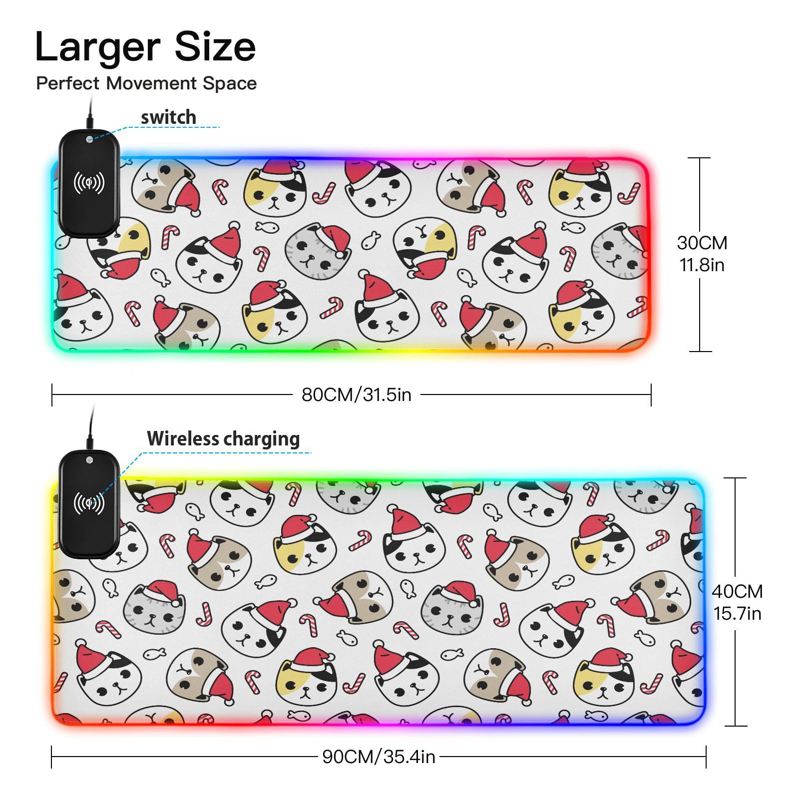 Christmas Cat Santa Wireless Charging Mouse Pad for Mobile Phone Extra Large Gaming Mousepad with 13 Lighting Modes Computer Mat for Office Home Gaming MacBook PC Laptop Desk