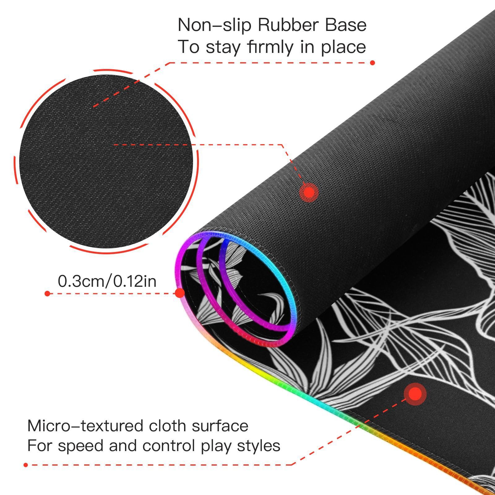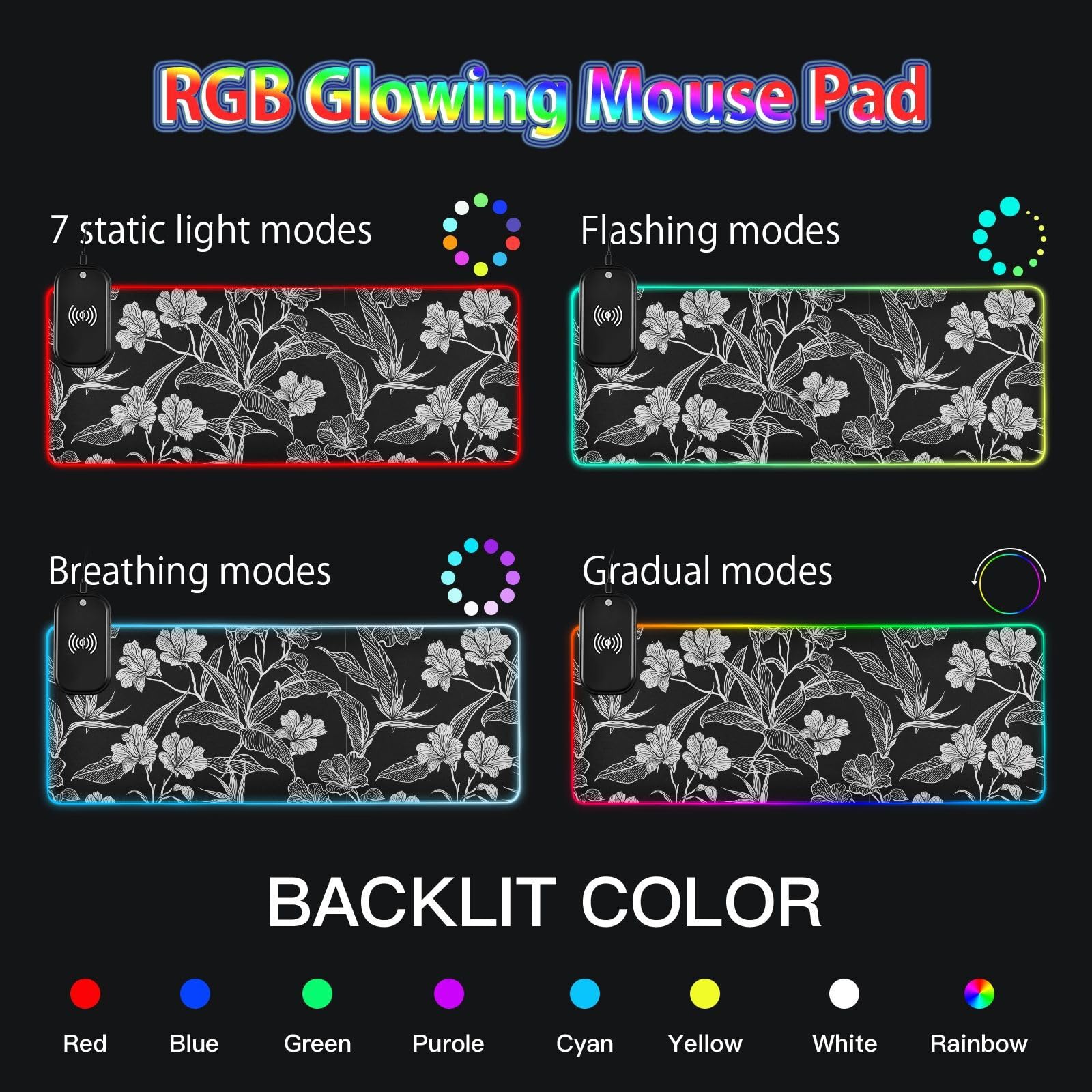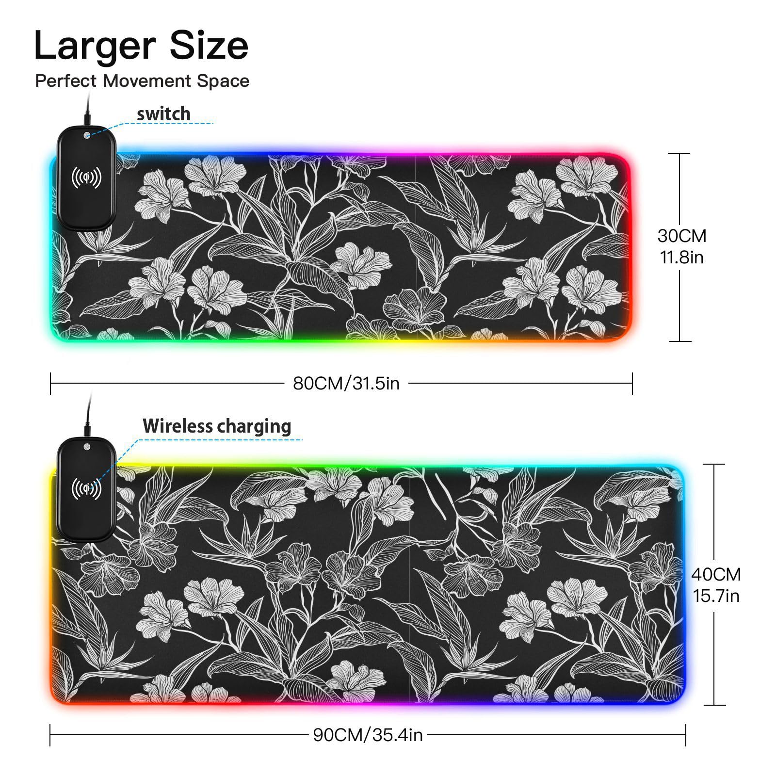 Colorless Flowers Leaves Wireless Charging Mouse Pad for Mobile Phone Extra Large Gaming Mousepad with 13 Lighting Modes Extended Desk Mat for Gaming MacBook PC Laptop Desk Office Home