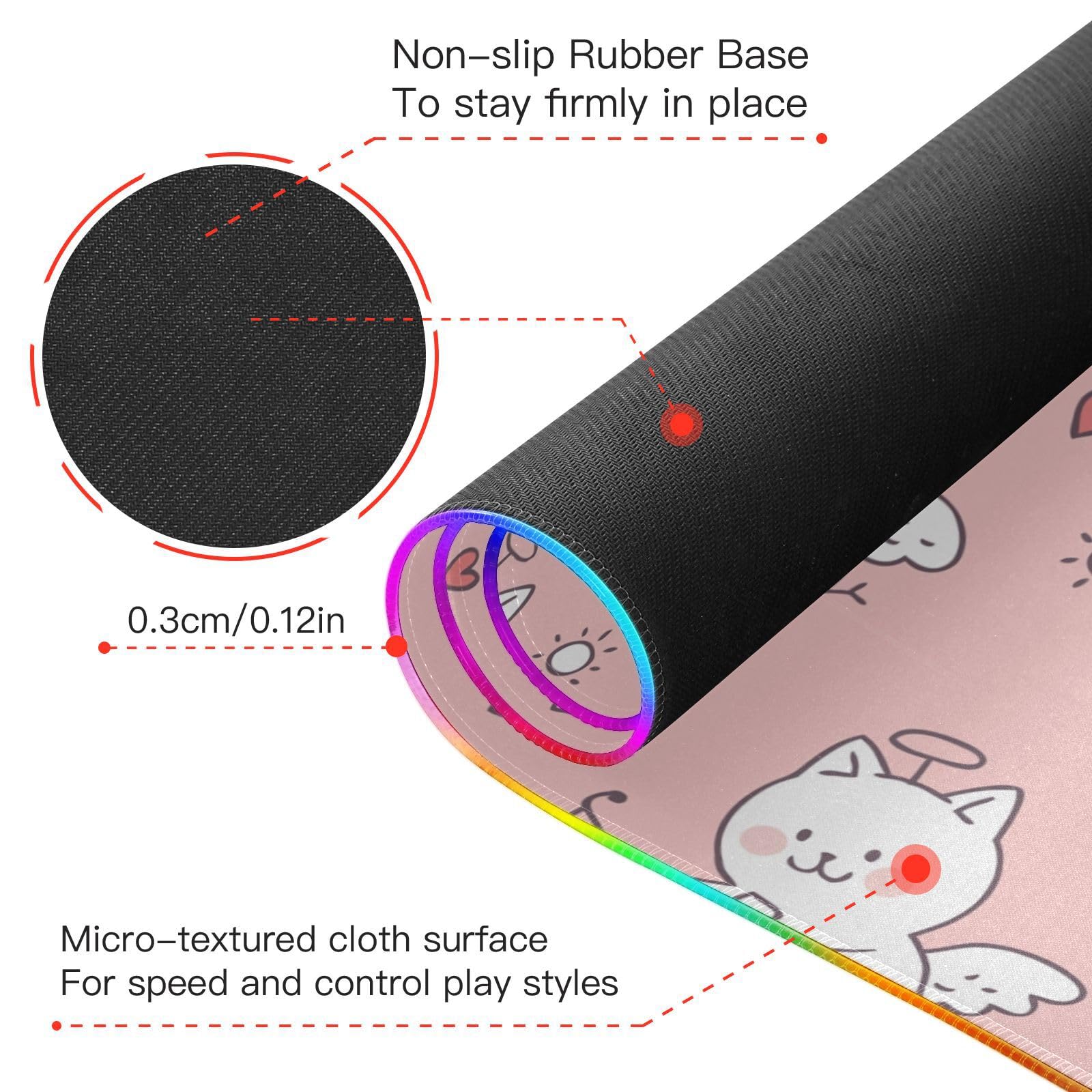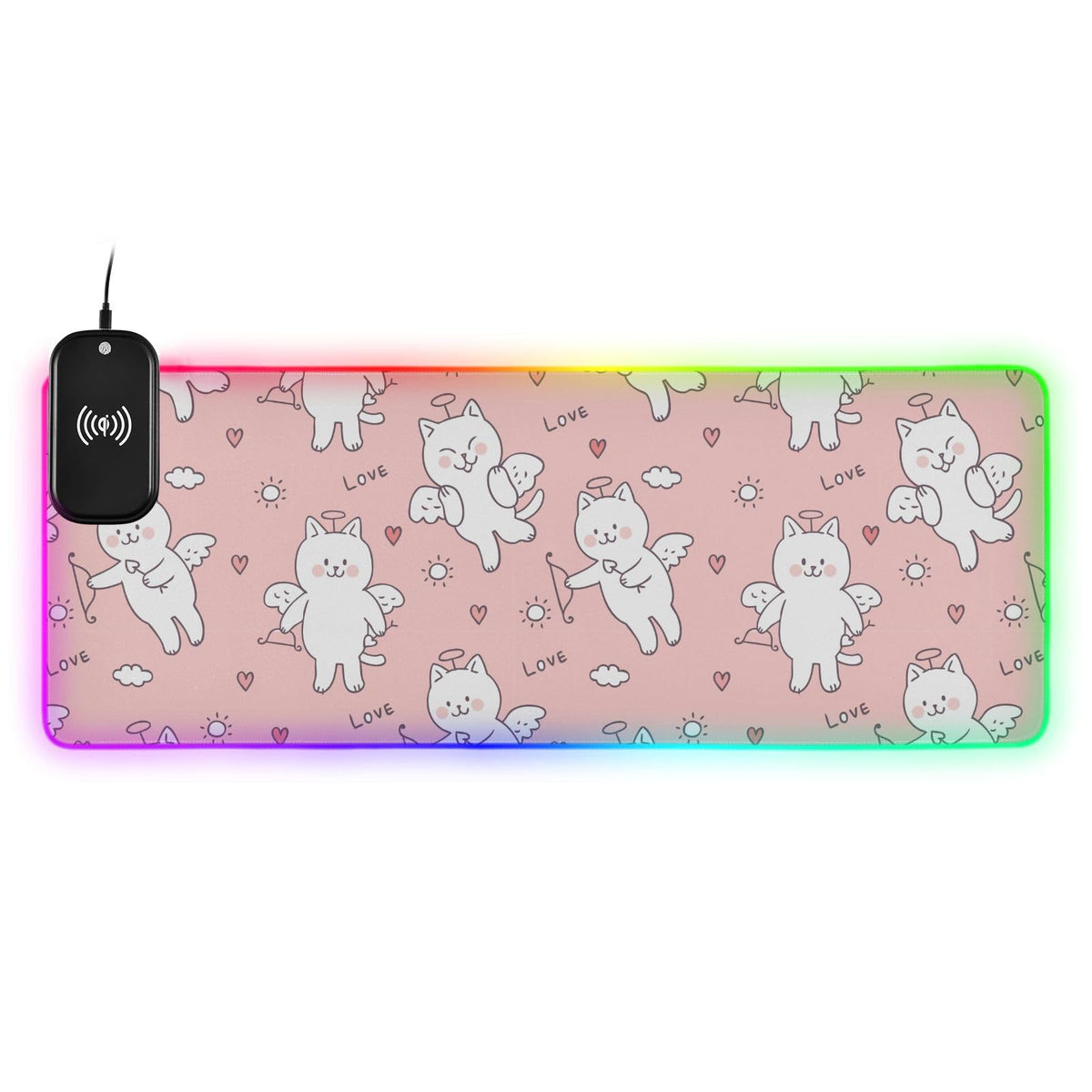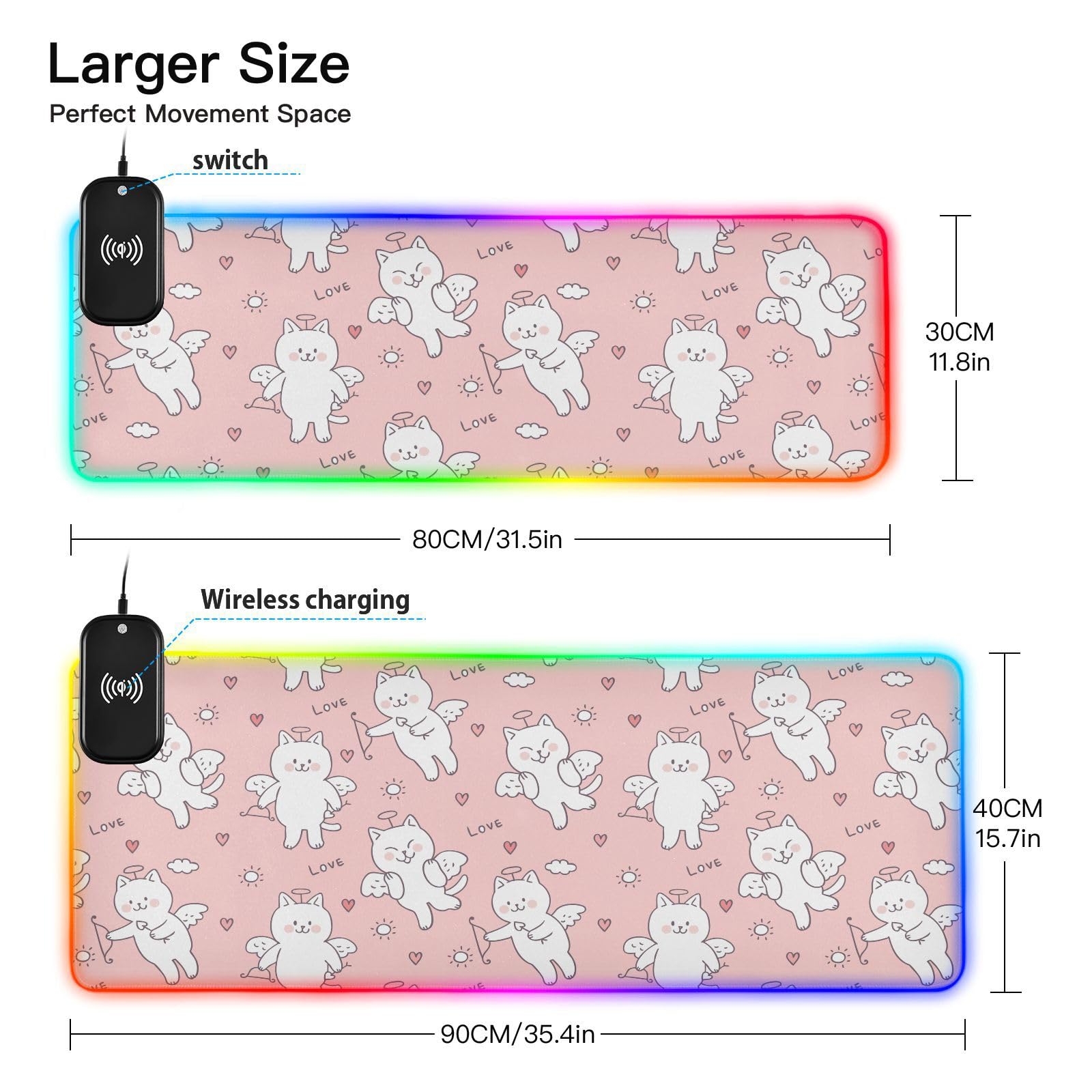 Cartoon Cute Sweet Cat Wireless Charging Mouse Pad for Mobile Phone Extra Large Gaming Mousepad with 13 Lighting Modes Extended Desk Mat for Gaming MacBook PC Laptop Desk Office Home