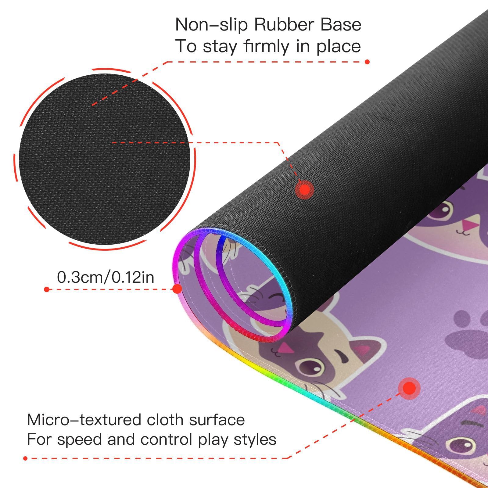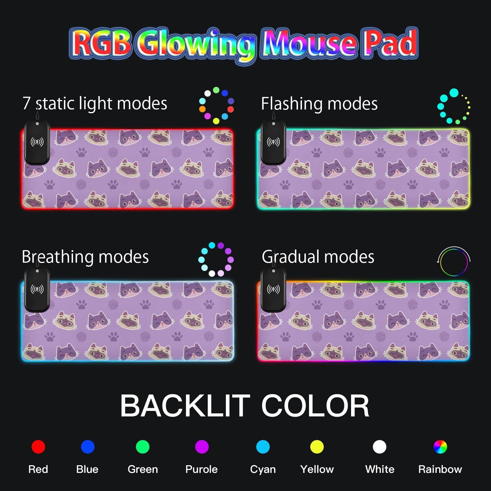 Cute Colorful Cat Wireless Charging Mouse Pad for Mobile Phone Extra Large Gaming Mousepad with 13 Lighting Modes Extended Desk Mat for Gaming MacBook PC Laptop Desk Home Office