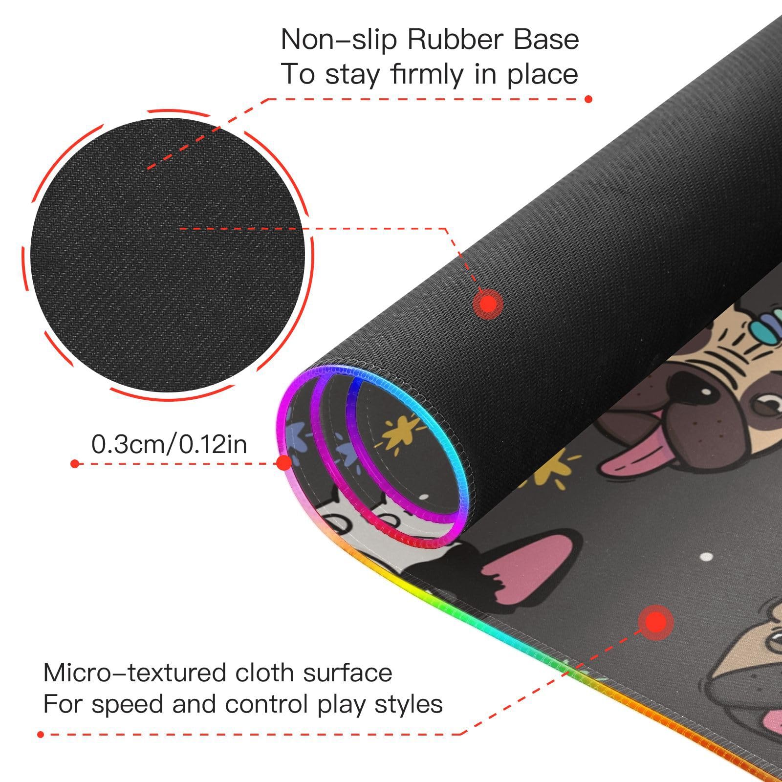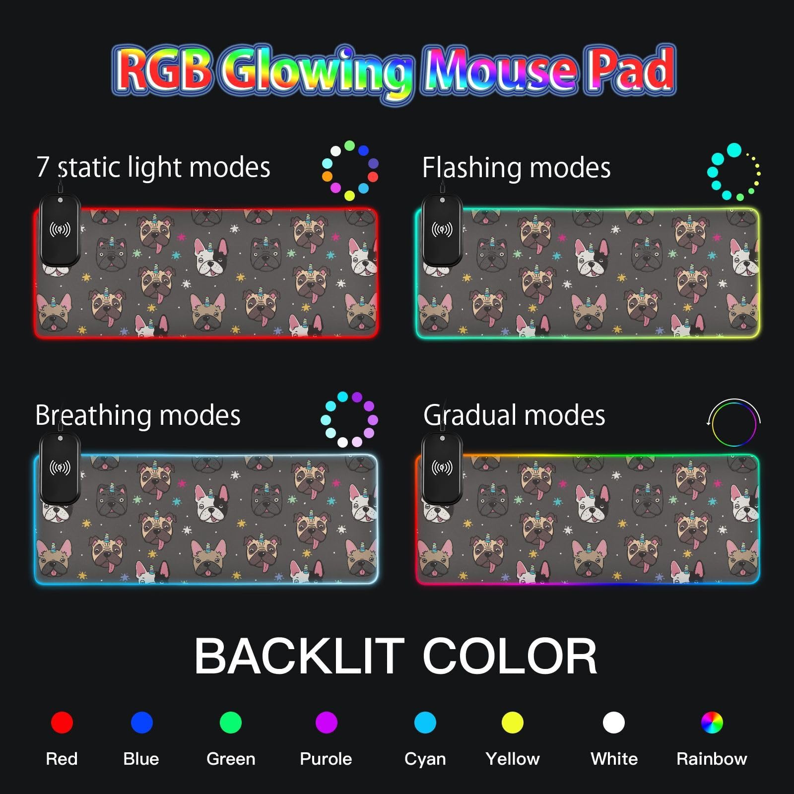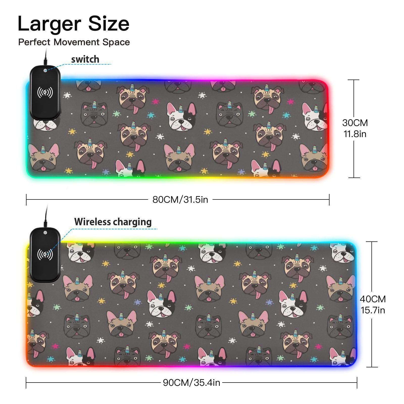 Cute Pugs Unicorn Horn Wireless Charging Mouse Pad for Mobile Phone Extra Large Gaming Mousepad with 13 Lighting Modes Computer Mat for Gaming MacBook PC Laptop Desk Office Home
