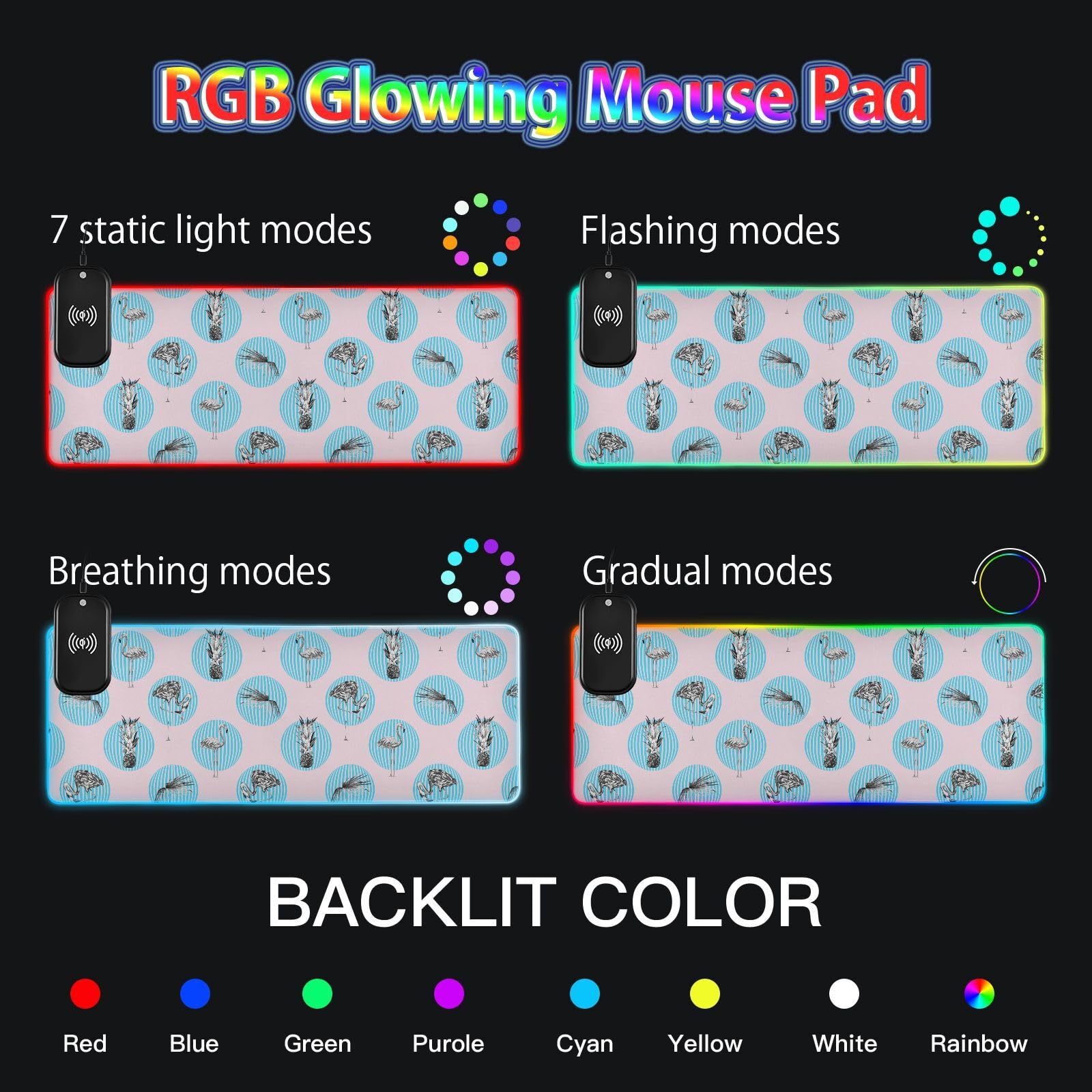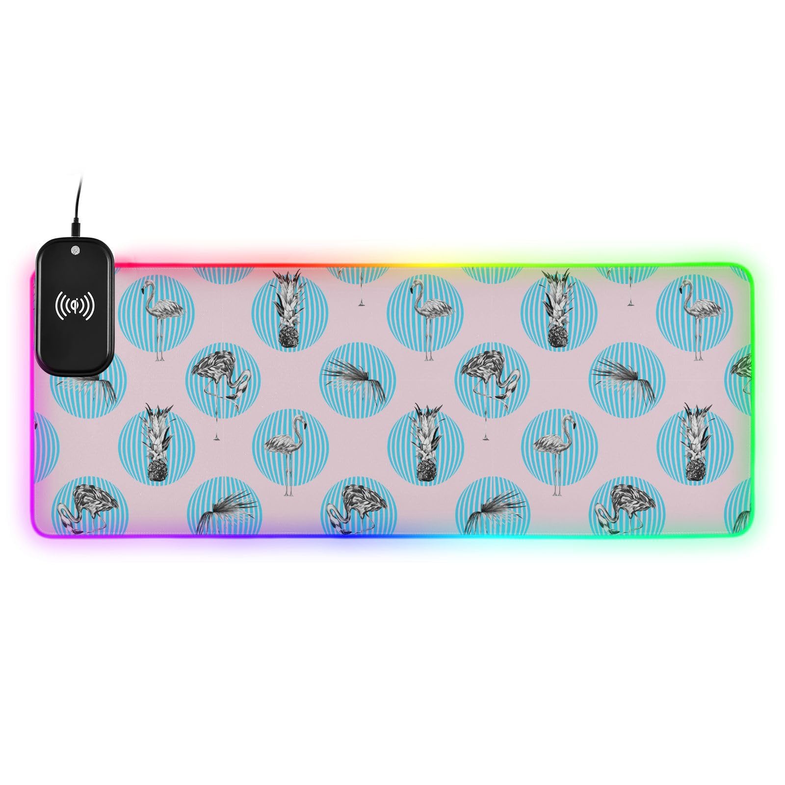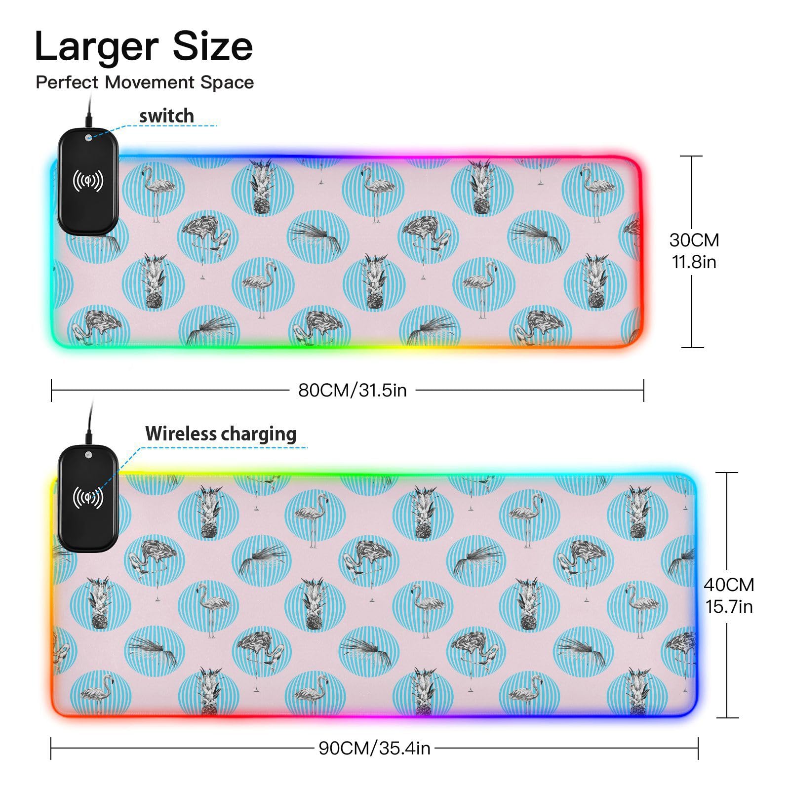 Flamingo Wireless Charging Mouse Pad for Mobile Phone Extra Large Gaming Mousepad with 13 Lighting Modes Keyboard Mat for Gaming MacBook PC Laptop Desk Home Office