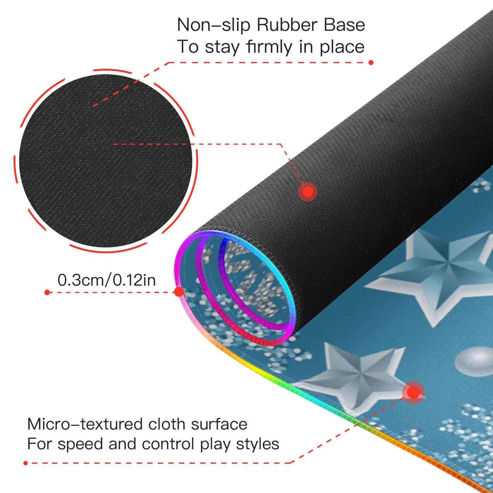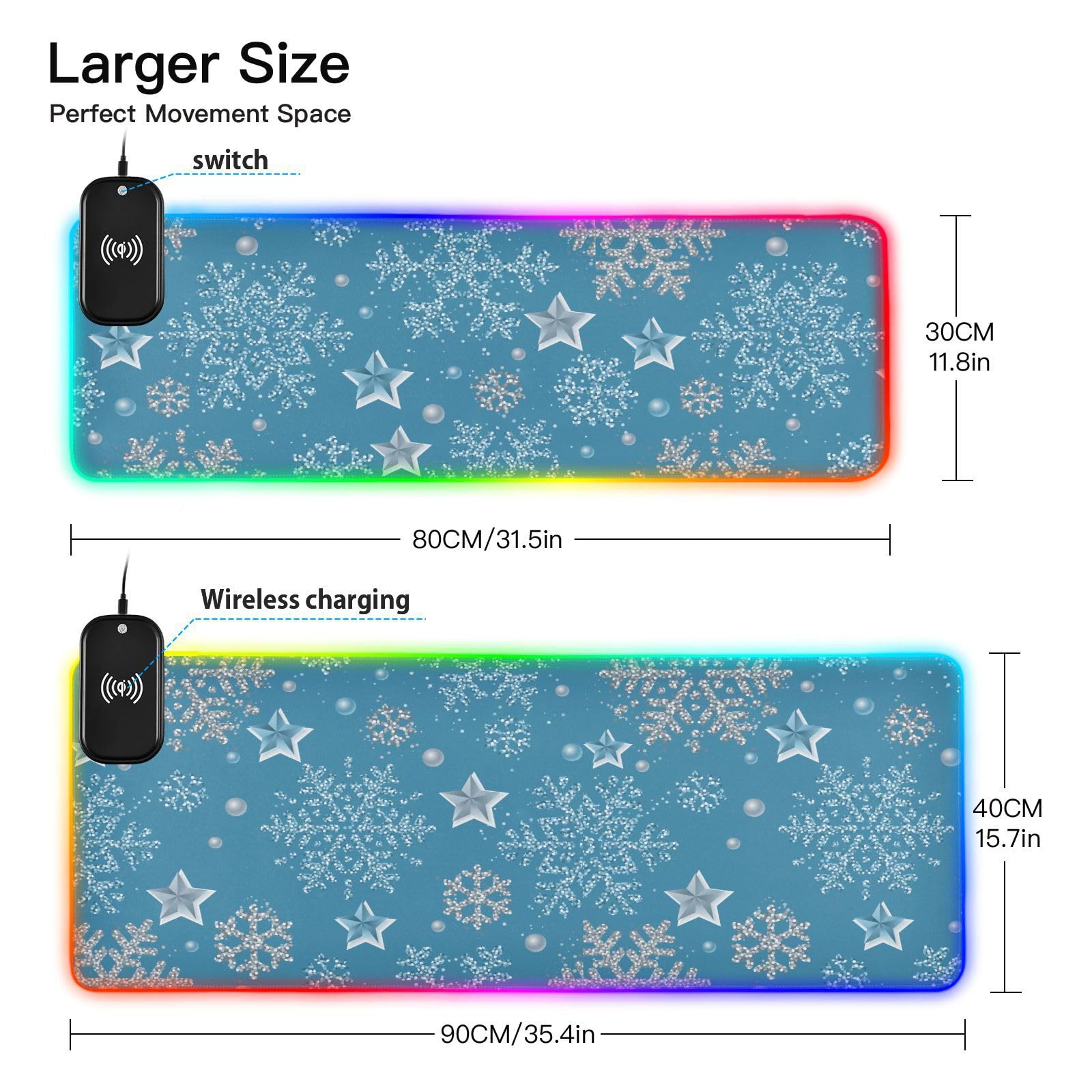 Christmas Snowflakes Stars Wireless Charging Mouse Pad for Mobile Phone Extra Large Gaming Mousepad with 13 Lighting Modes Computer Mat for MacBook PC Laptop Desk Office Home Gaming