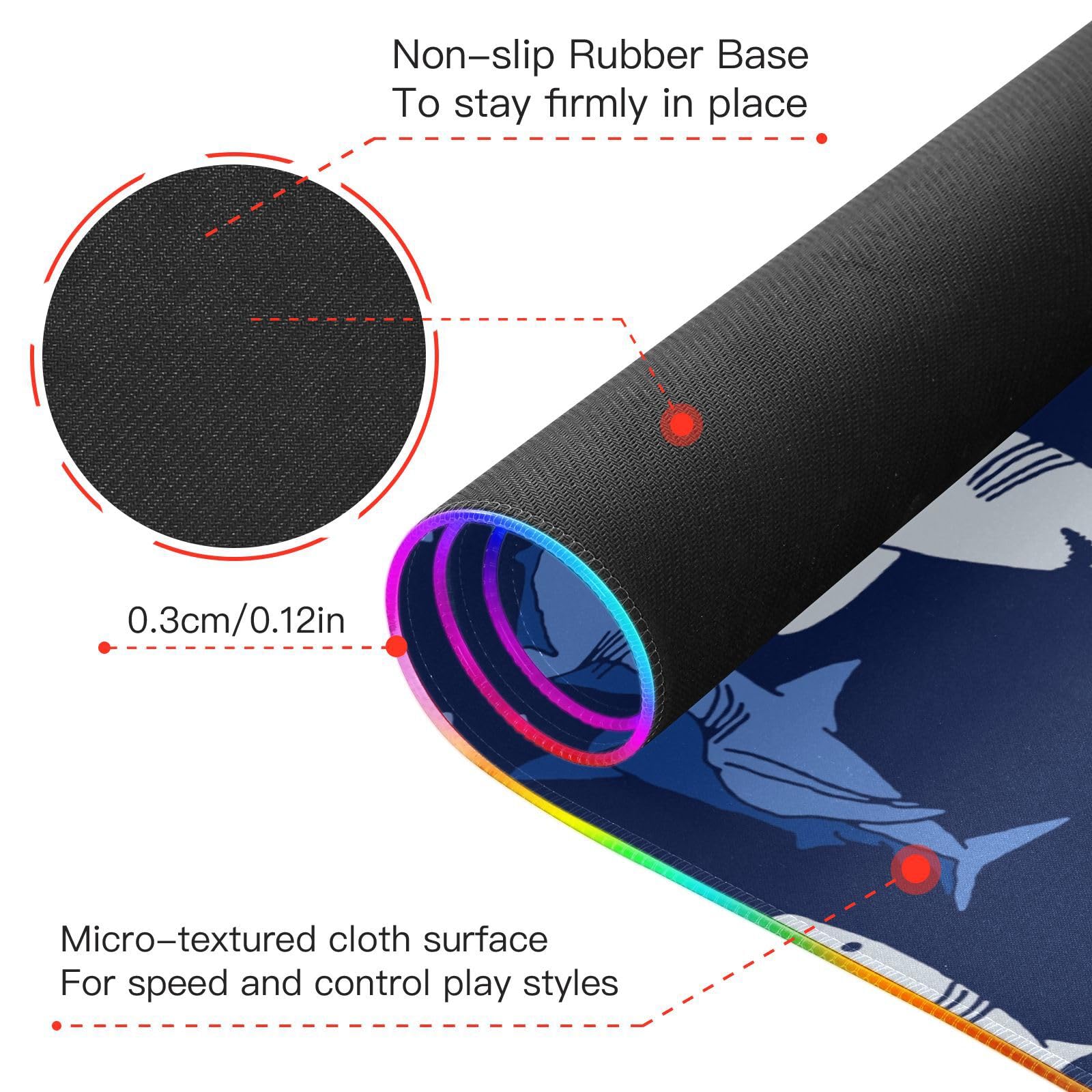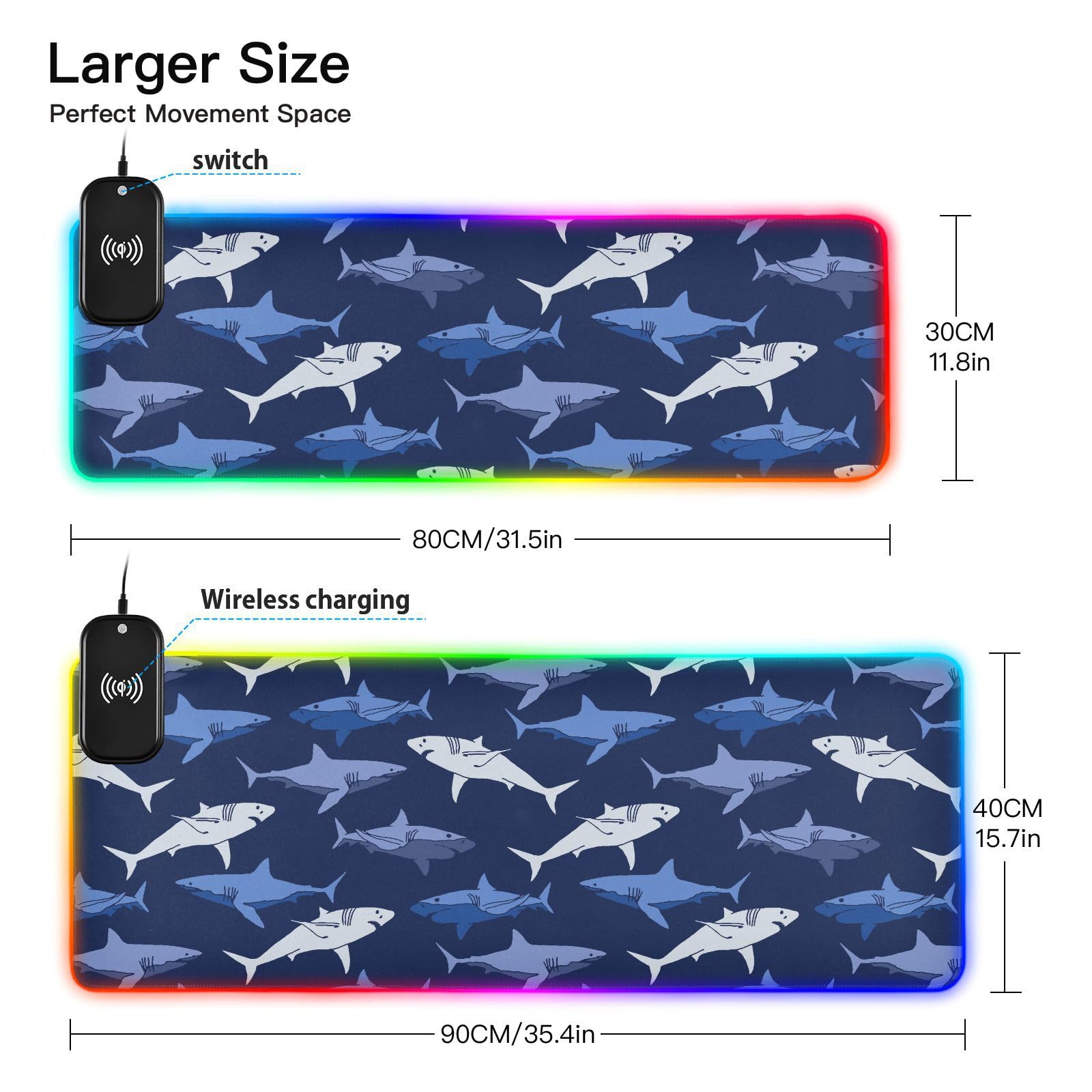 Dark Deep Shark Wireless Charging Mouse Pad for Mobile Phone Extra Large Gaming Mousepad with 13 Lighting Modes Computer Mat for Gaming MacBook PC Laptop Desk Home Office