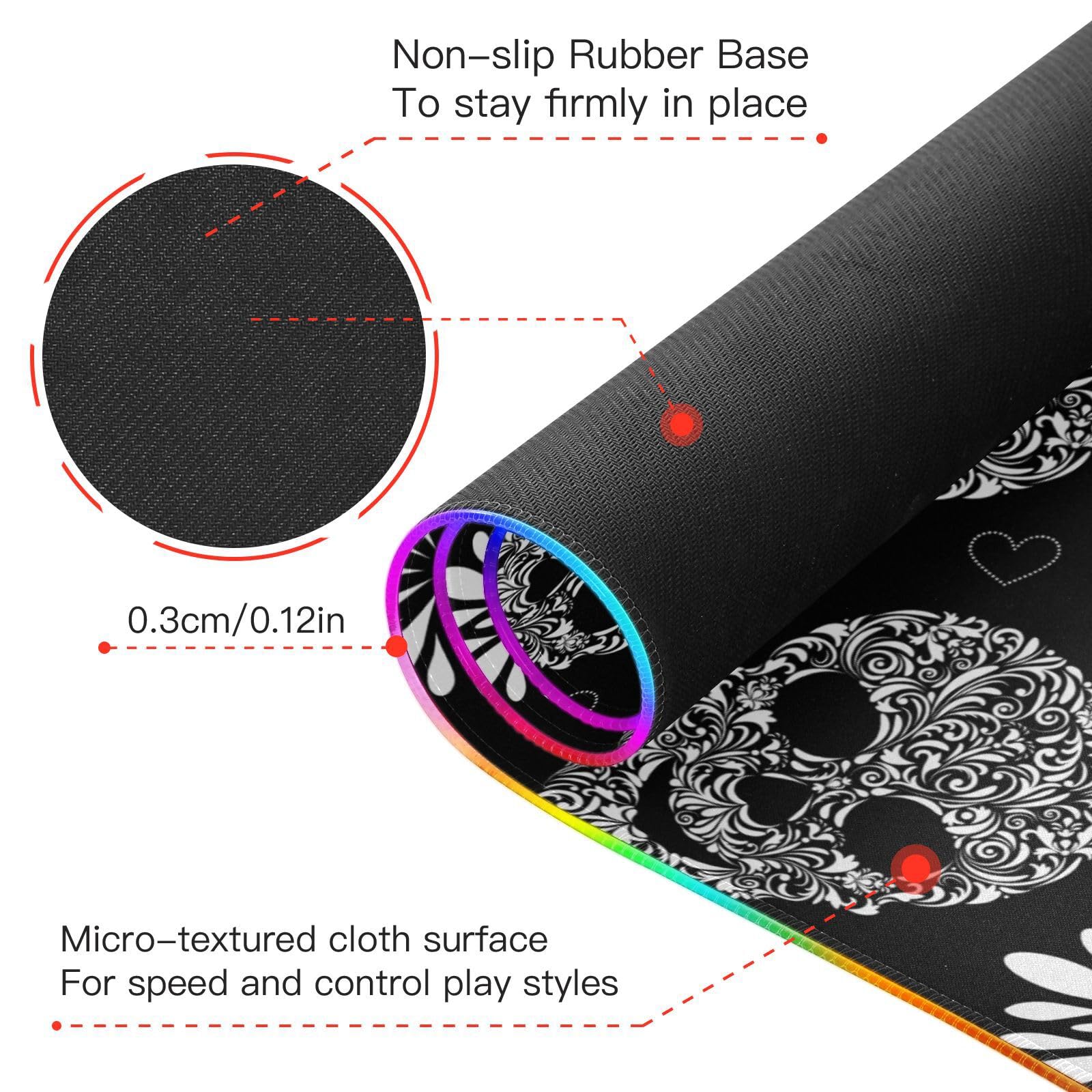 Floral Skulls Black Wireless Charging Mouse Pad for Mobile Phone Extra Large Gaming Mousepad with 13 Lighting Modes Keyboard Mat for MacBook PC Laptop Desk Office Home Gaming