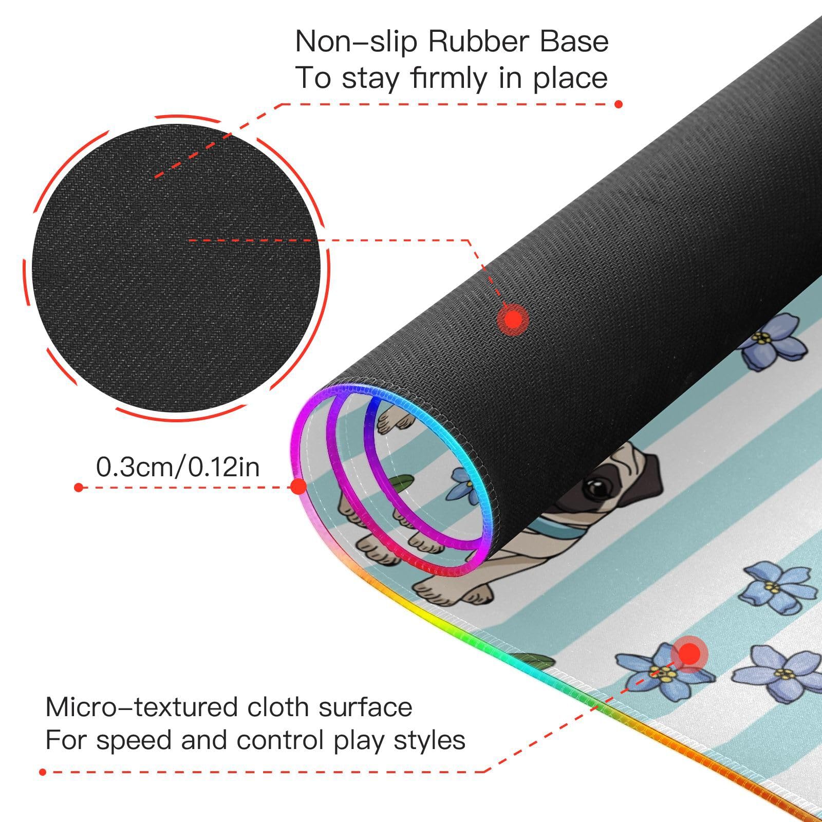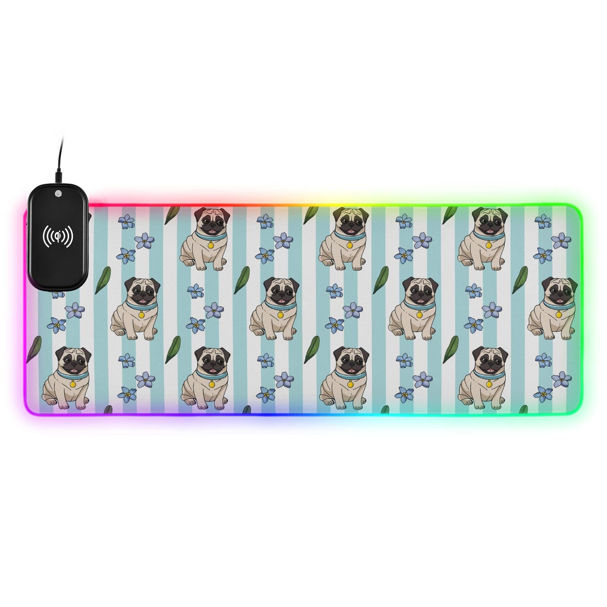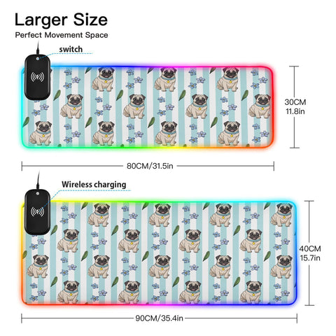 Cartoon Pugs Wireless Charging Mouse Pad for Mobile Phone Extra Large Gaming Mousepad with 13 Lighting Modes Mouse Mat for MacBook PC Laptop Desk Office Home Gaming