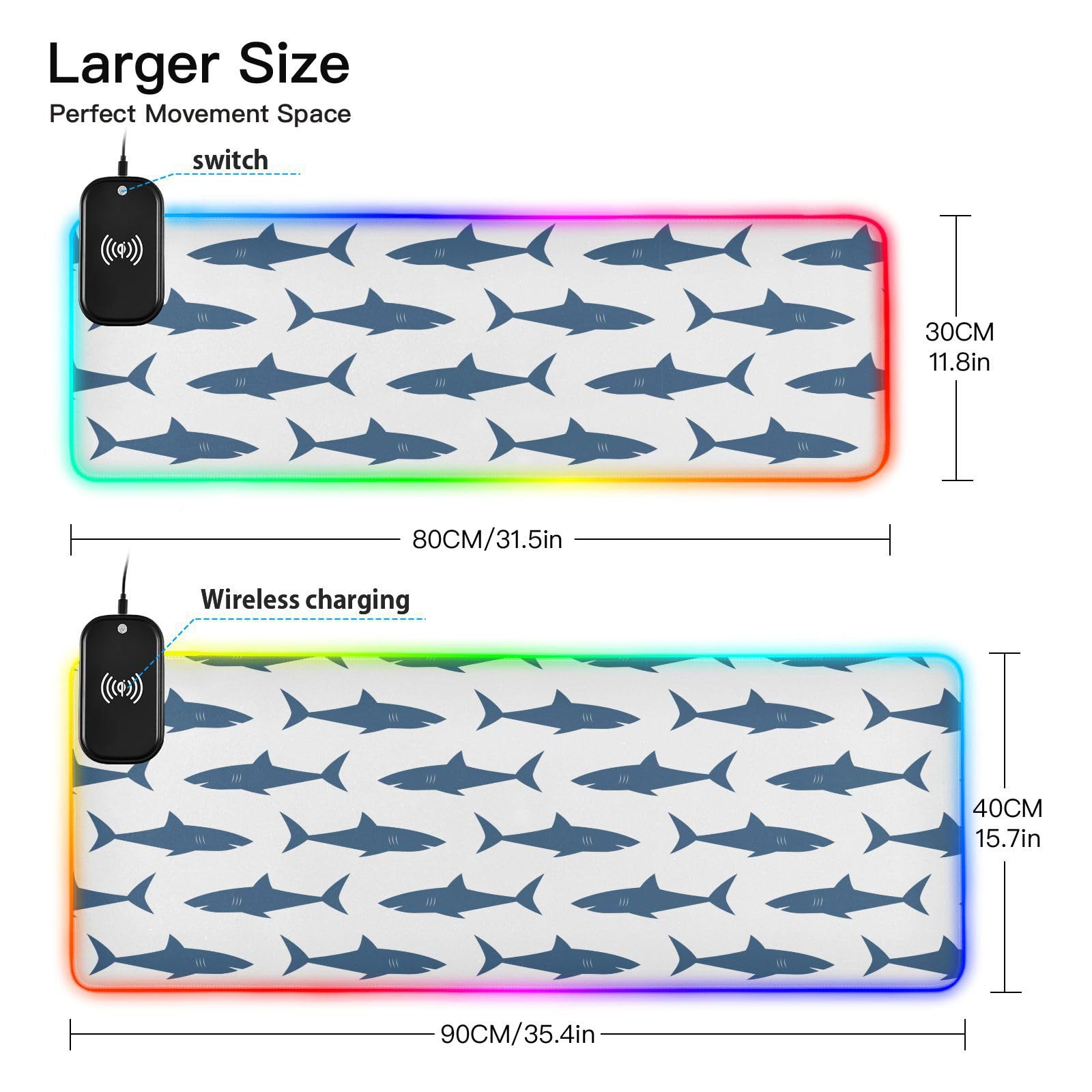 Blue Shark Wireless Charging Mouse Pad for Mobile Phone Extra Large Gaming Mousepad with 13 Lighting Modes Keyboard Mat for MacBook PC Laptop Desk Office Home Gaming
