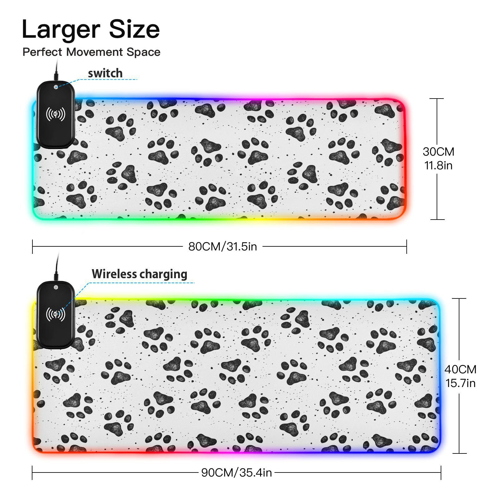 Black Dog Paw Wireless Charging Mouse Pad for Mobile Phone Extra Large Gaming Mousepad with 13 Lighting Modes Extended Desk Mat for MacBook PC Laptop Desk Office Home Gaming