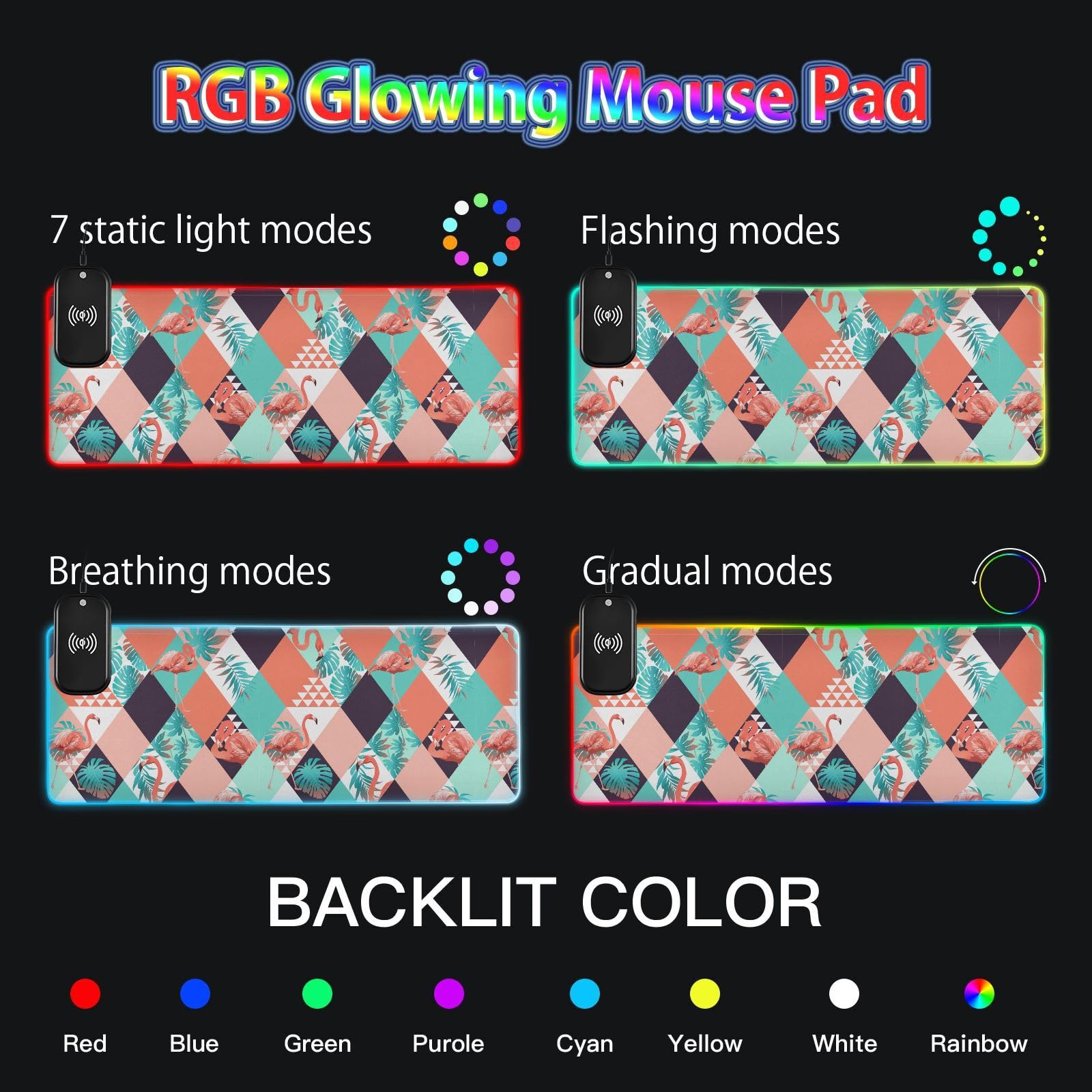 Flamingo (30) Wireless Charging Mouse Pad for Mobile Phone Extra Large Gaming Mousepad with 13 Lighting Modes Keyboard Mat for Gaming MacBook PC Laptop Desk Office Home