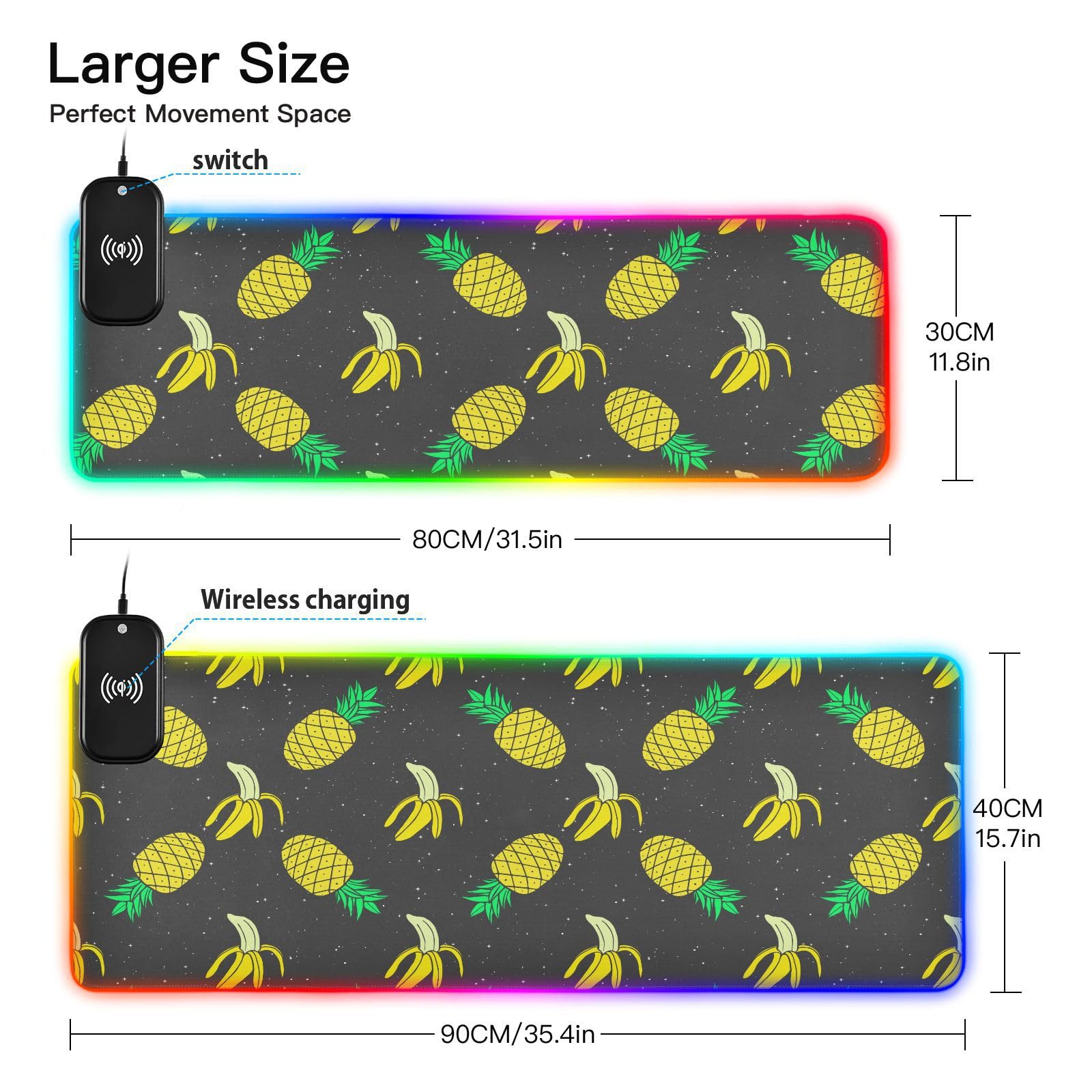 Bananas Pineapples Wireless Charging Mouse Pad for Mobile Phone Extra Large Gaming Mousepad with 13 Lighting Modes Mouse Mat for Gaming MacBook PC Laptop Desk Home Office