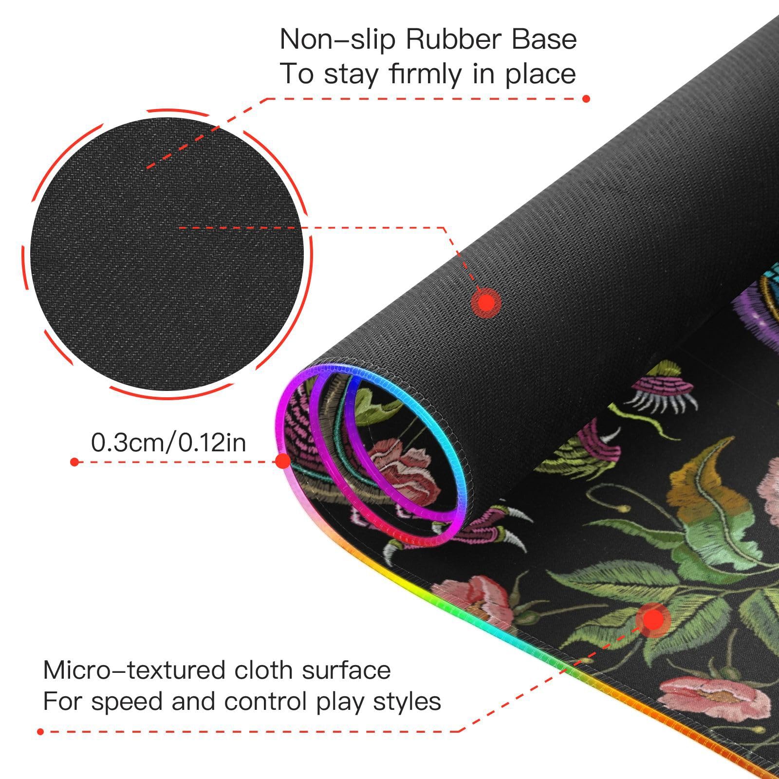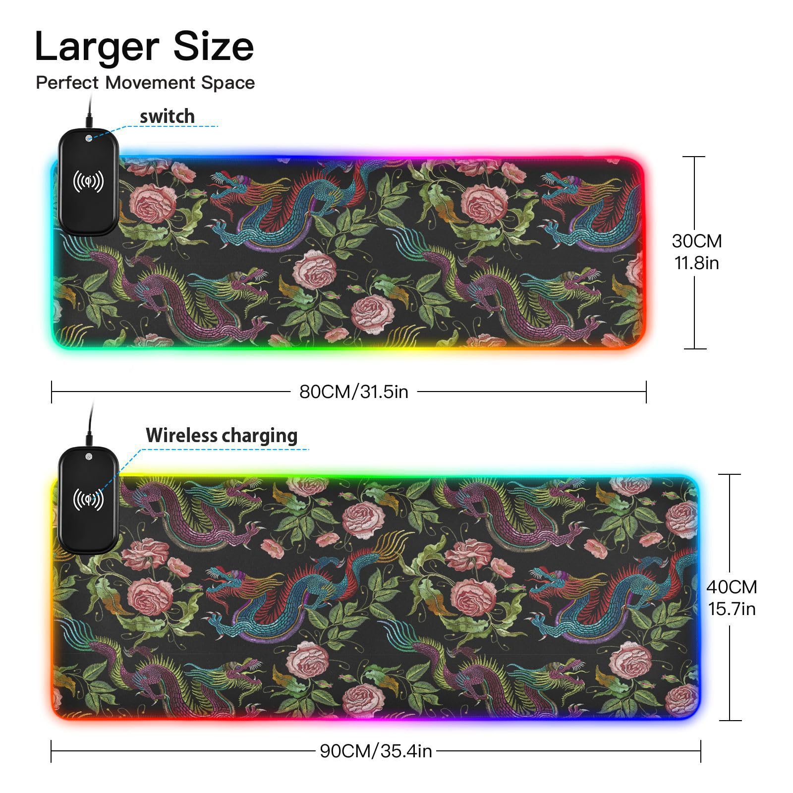 Chinese Dragons Peonies Wireless Charging Mouse Pad for Mobile Phone Extra Large Gaming Mousepad with 13 Lighting Modes Computer Mat for Gaming MacBook PC Laptop Desk Office Home