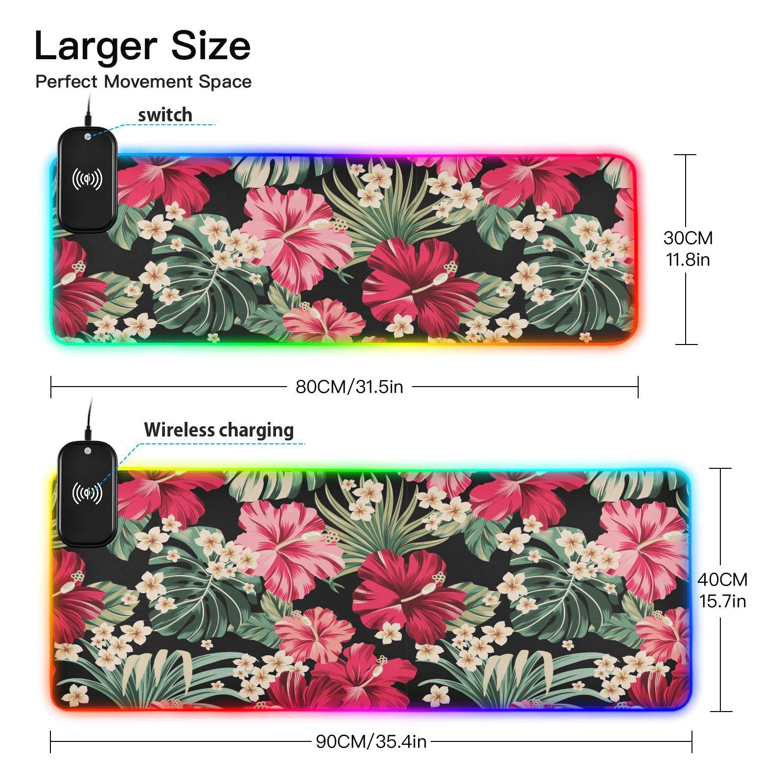 Exotic Hawaiian Tropical Hibiscus Wireless Charging Mouse Pad for Mobile Phone Extra Large Gaming Mousepad with 13 Lighting Modes Keyboard Mat for MacBook PC Laptop Desk Office Home Gaming