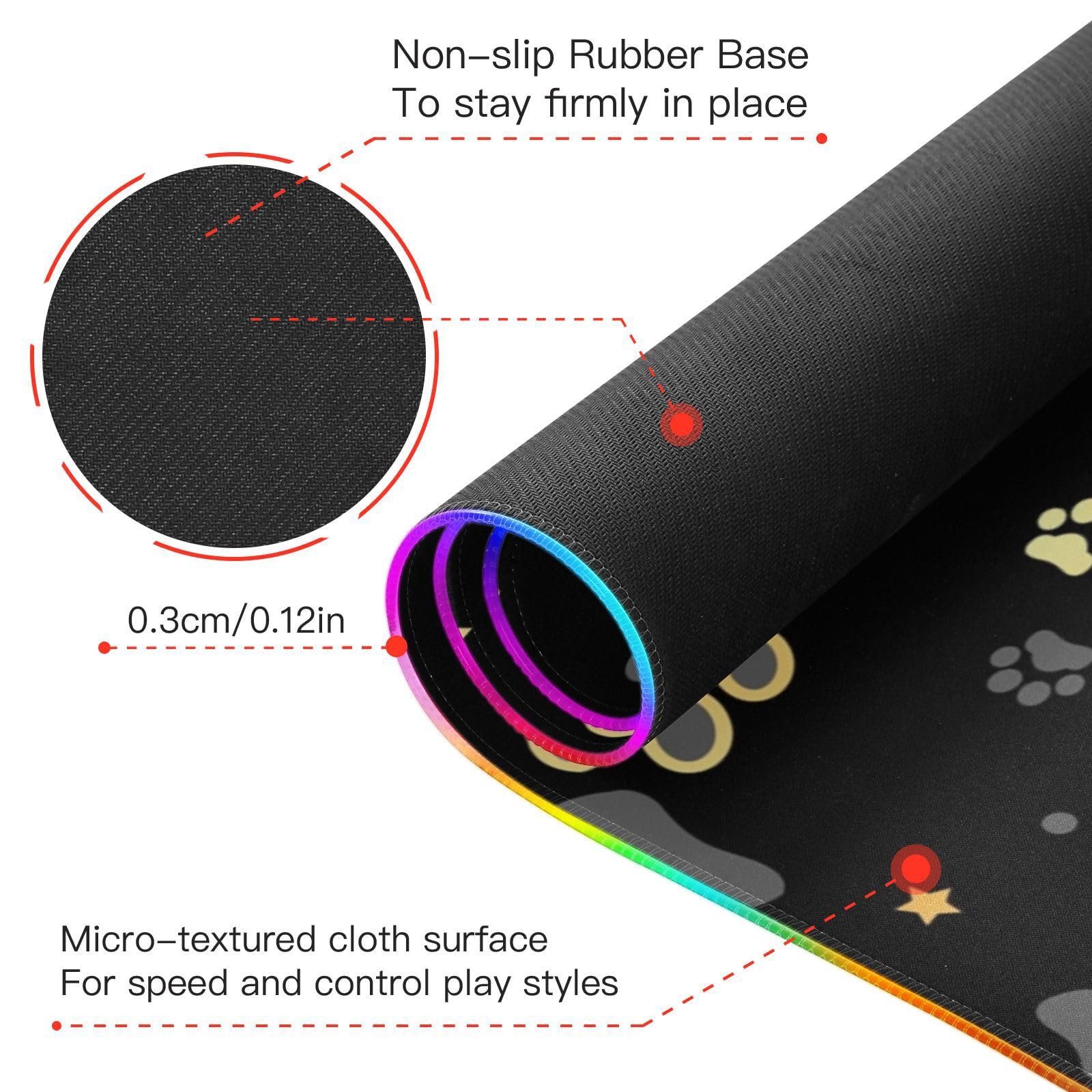Gold Dog Paw Wireless Charging Mouse Pad for Mobile Phone Extra Large Gaming Mousepad with 13 Lighting Modes Extended Desk Mat for Office Home Gaming MacBook PC Laptop Desk