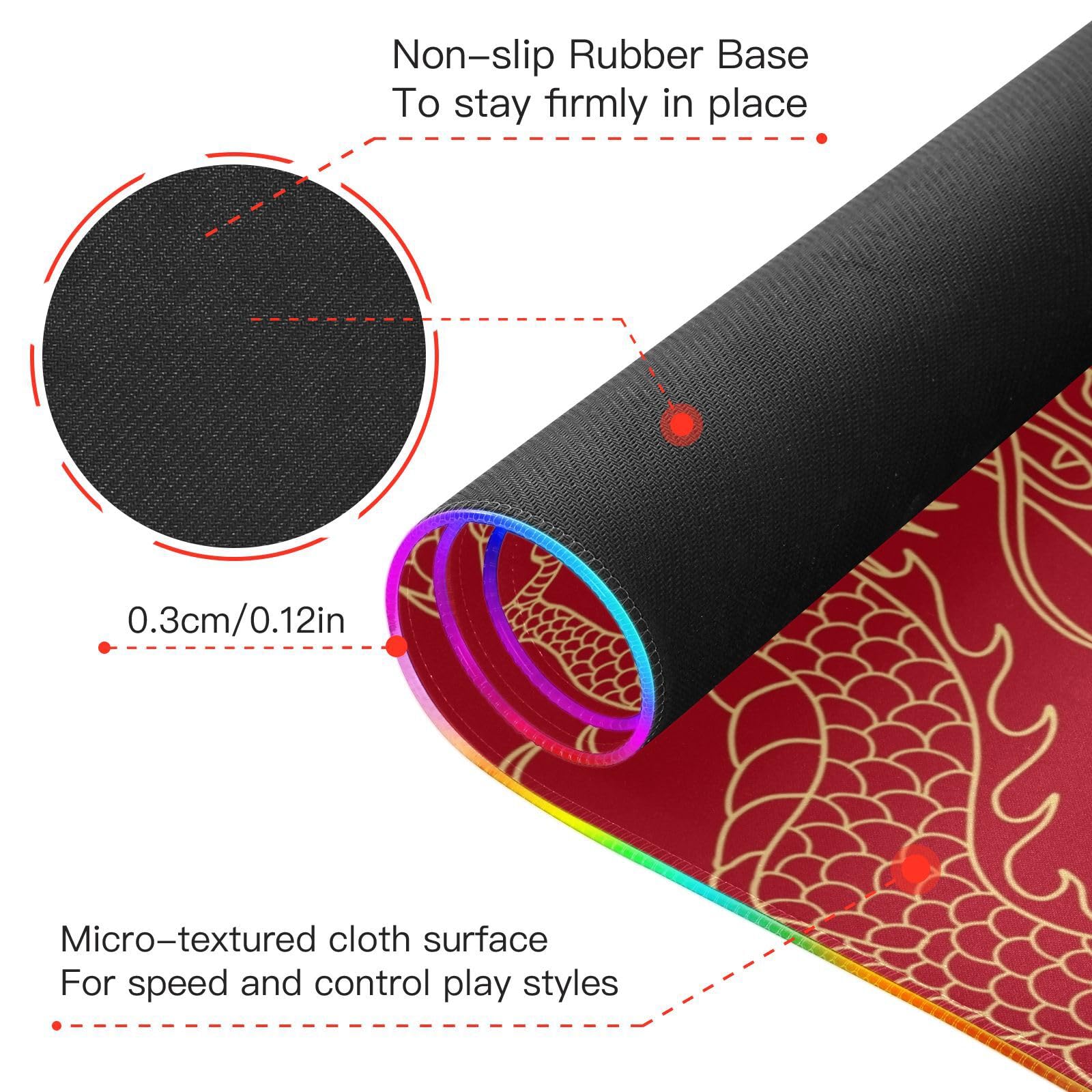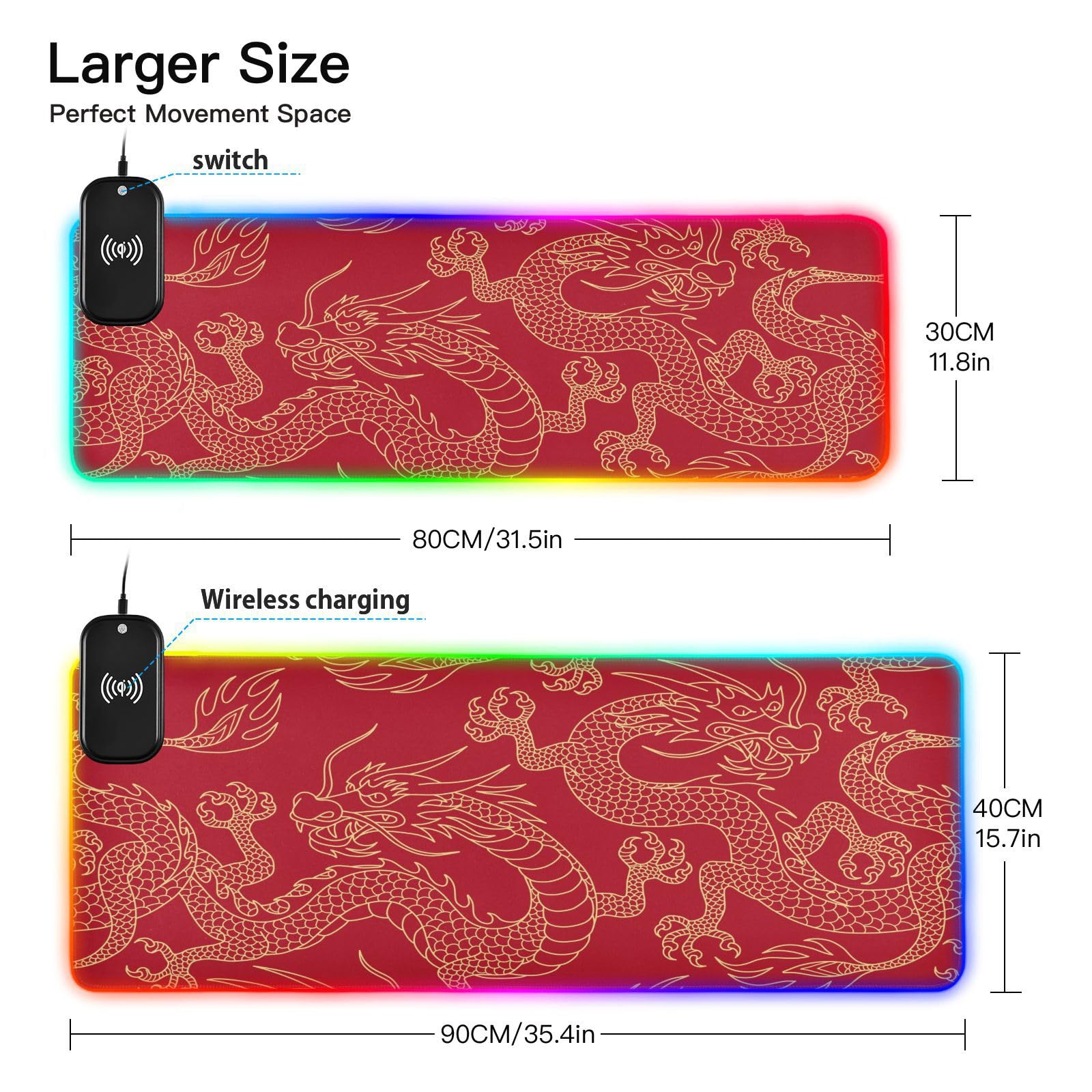 Chinese Dragon Wireless Charging Mouse Pad for Mobile Phone Extra Large Gaming Mousepad with 13 Lighting Modes Mouse Mat for Gaming MacBook Laptop Desk Home Office