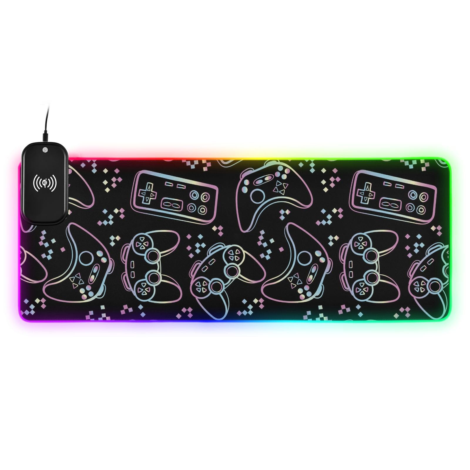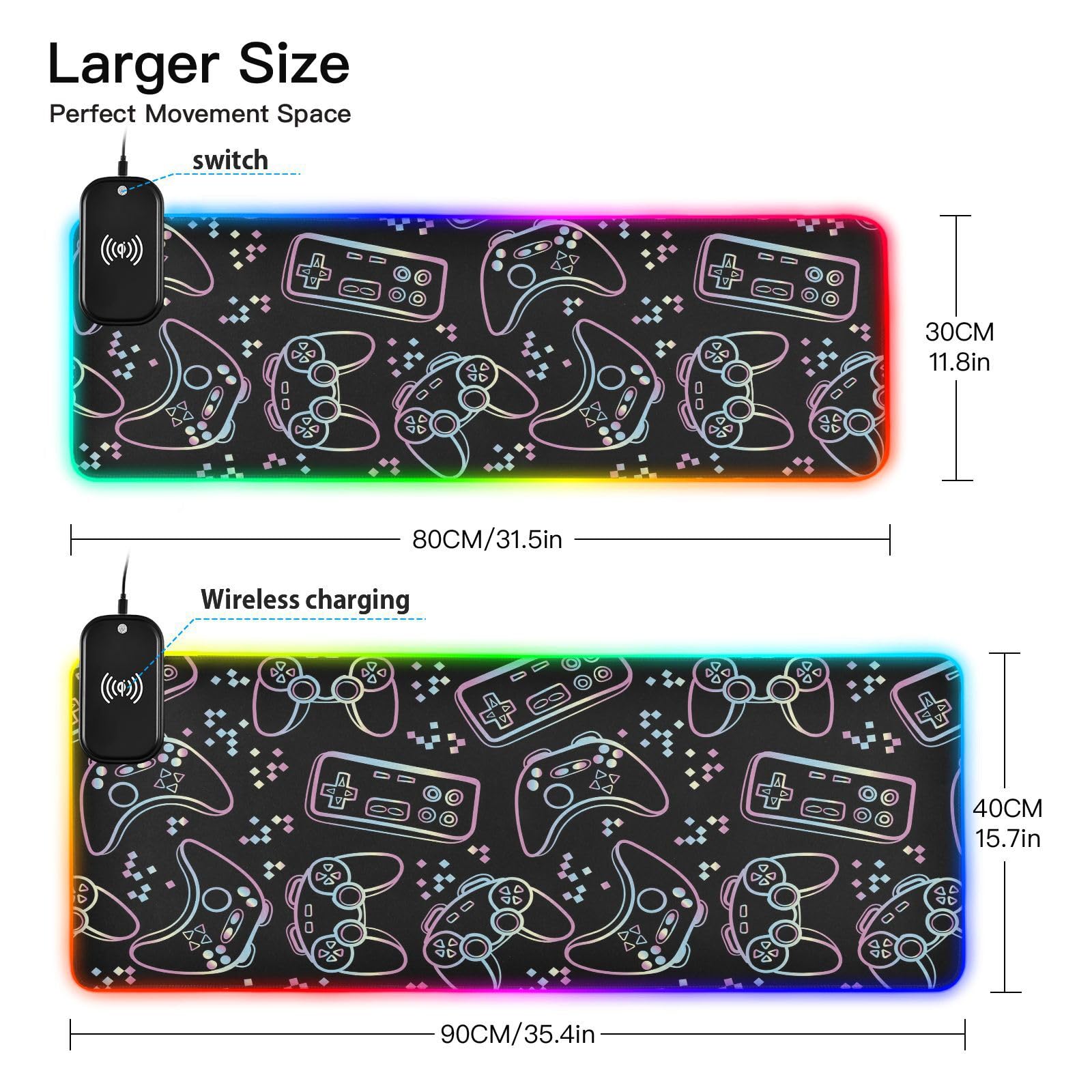 Holographic Gaming Wireless Charging Mouse Pad for Mobile Phone Extra Large Gaming Mousepad with 13 Lighting Modes Computer Mat for Gaming MacBook PC Laptop Desk Office Home