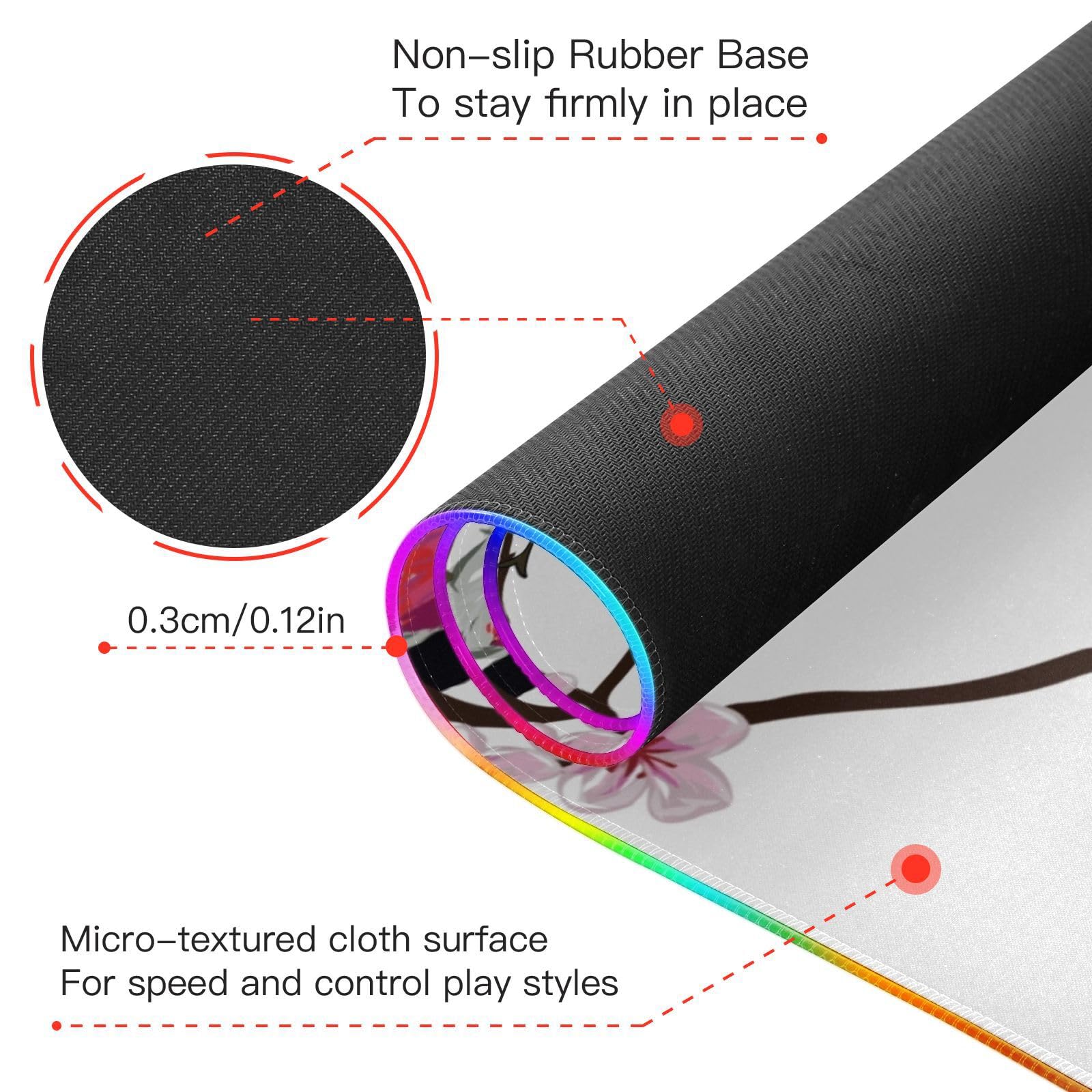 Branch Birds Blossom Wireless Charging Mouse Pad for Mobile Phone Extra Large Gaming Mousepad with 13 Lighting Modes Computer Mat for Gaming MacBook PC Laptop Desk Home Office