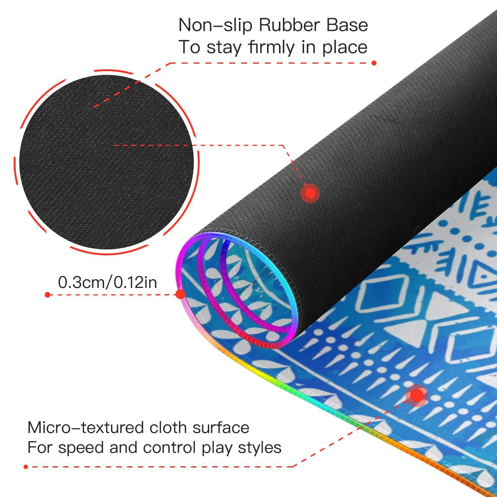 Boho Elephants Wireless Charging Mouse Pad for Mobile Phone Extra Large Gaming Mousepad with 13 Lighting Modes Mouse Mat for Gaming MacBook PC Laptop Desk Office Home