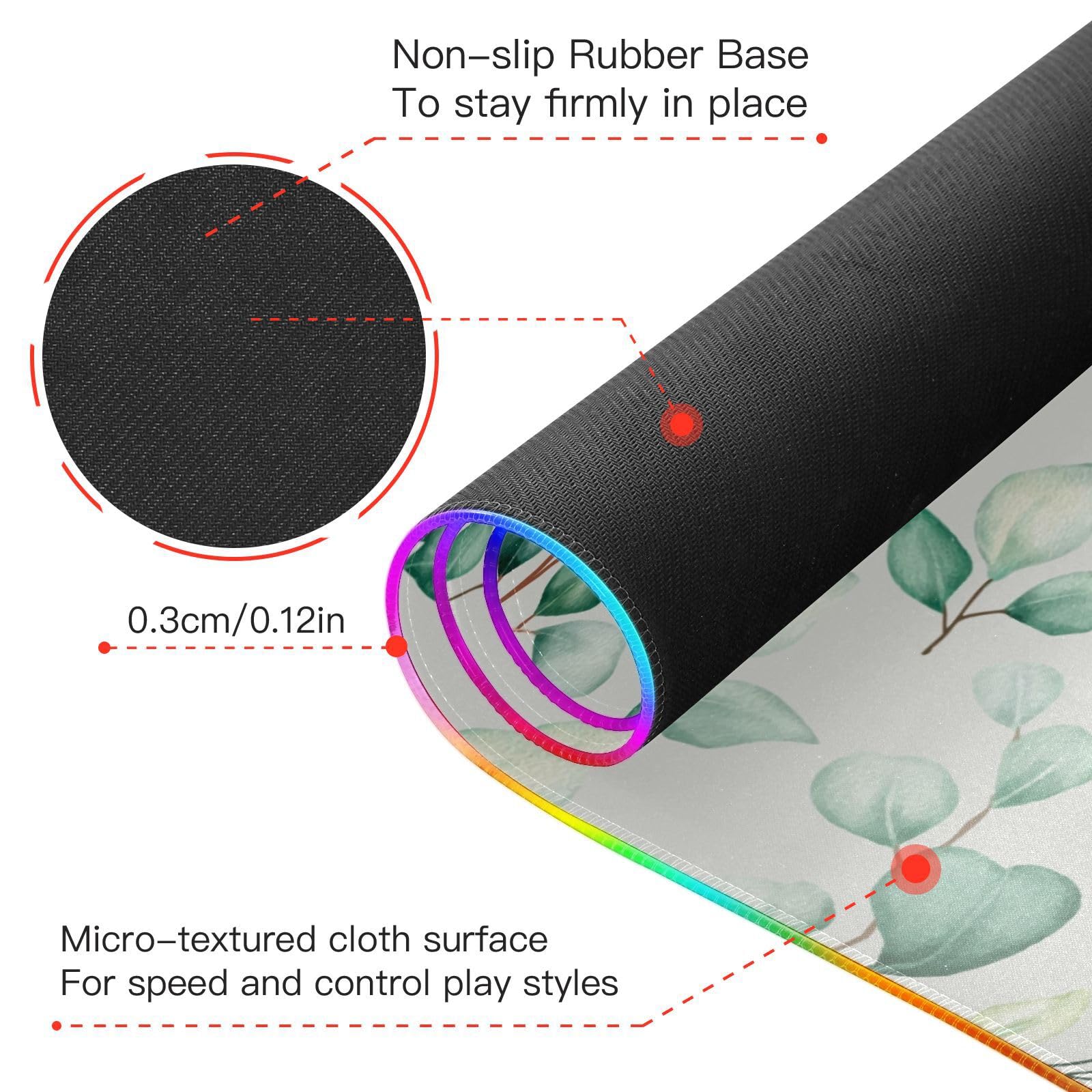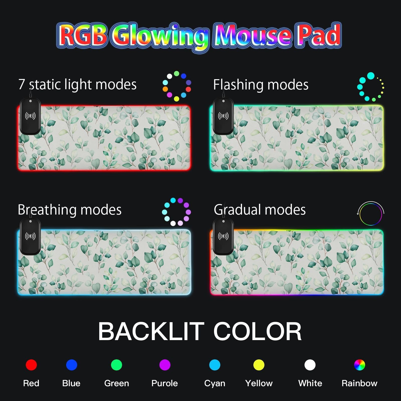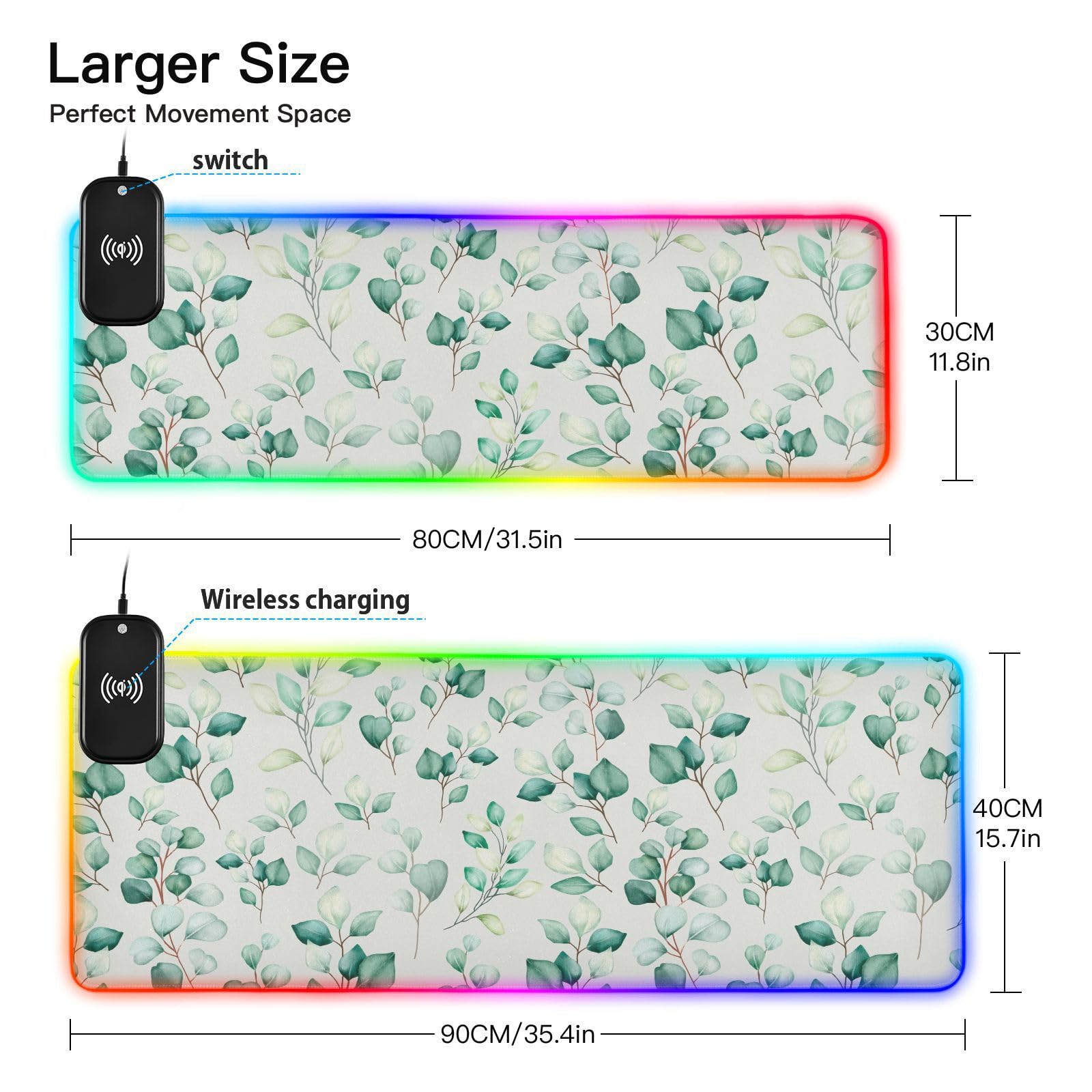 Green Leaves Watercolor Wireless Charging Mouse Pad for Mobile Phone Extra Large Gaming Mousepad with 13 Lighting Modes Extended Desk Mat for MacBook PC Laptop Desk Office Home Gaming