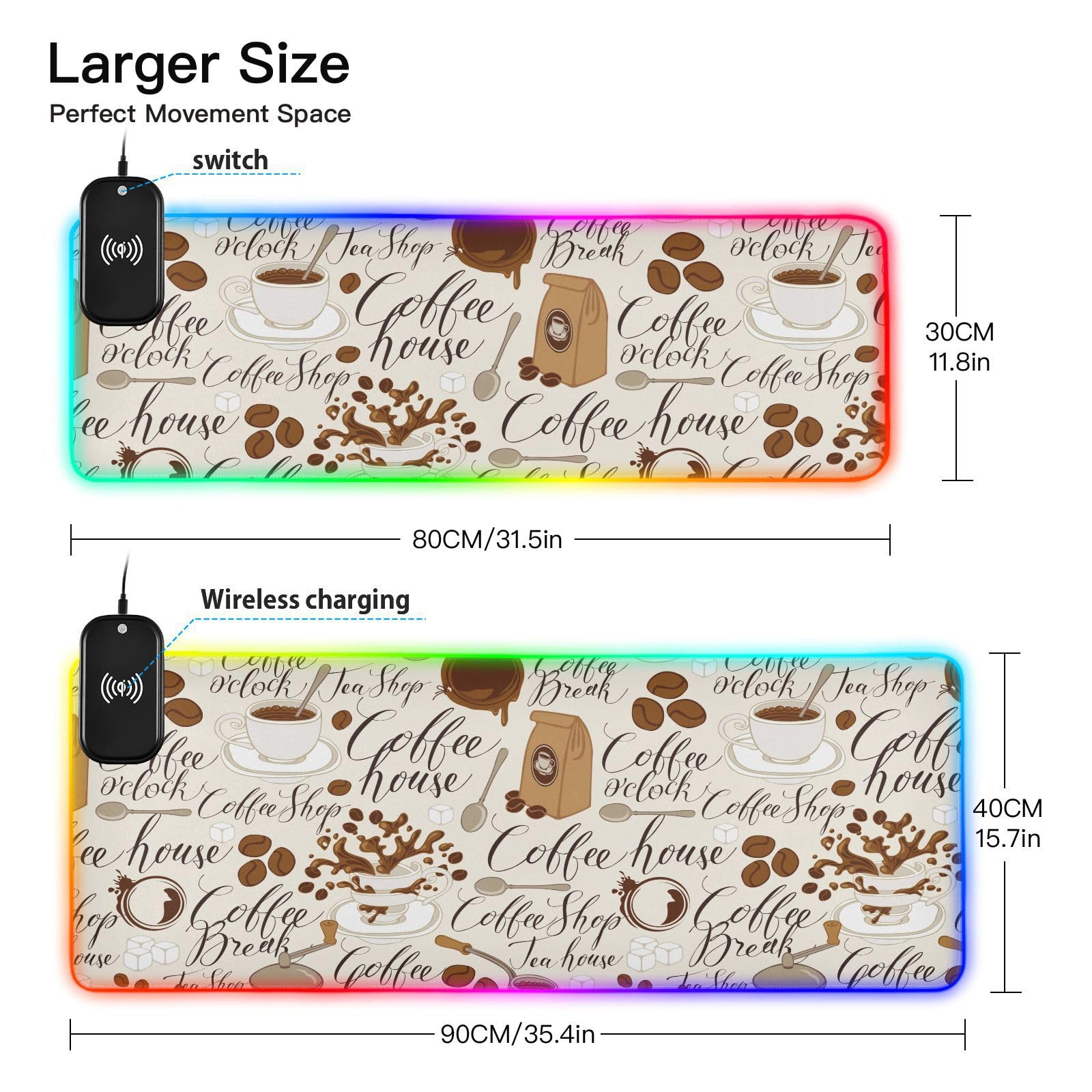 Coffee House Wireless Charging Mouse Pad for Mobile Phone Extra Large Gaming Mousepad with 13 Lighting Modes Mouse Mat for Gaming MacBook PC Laptop Desk Home Office