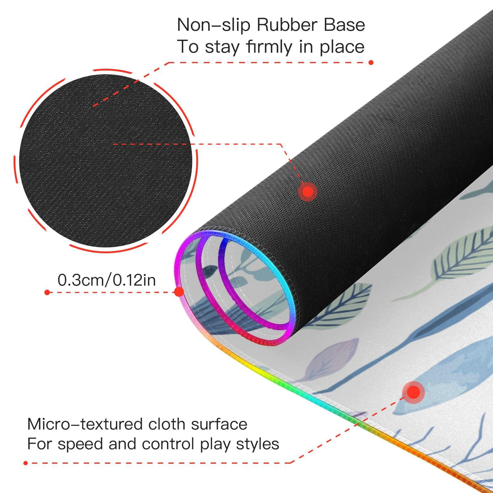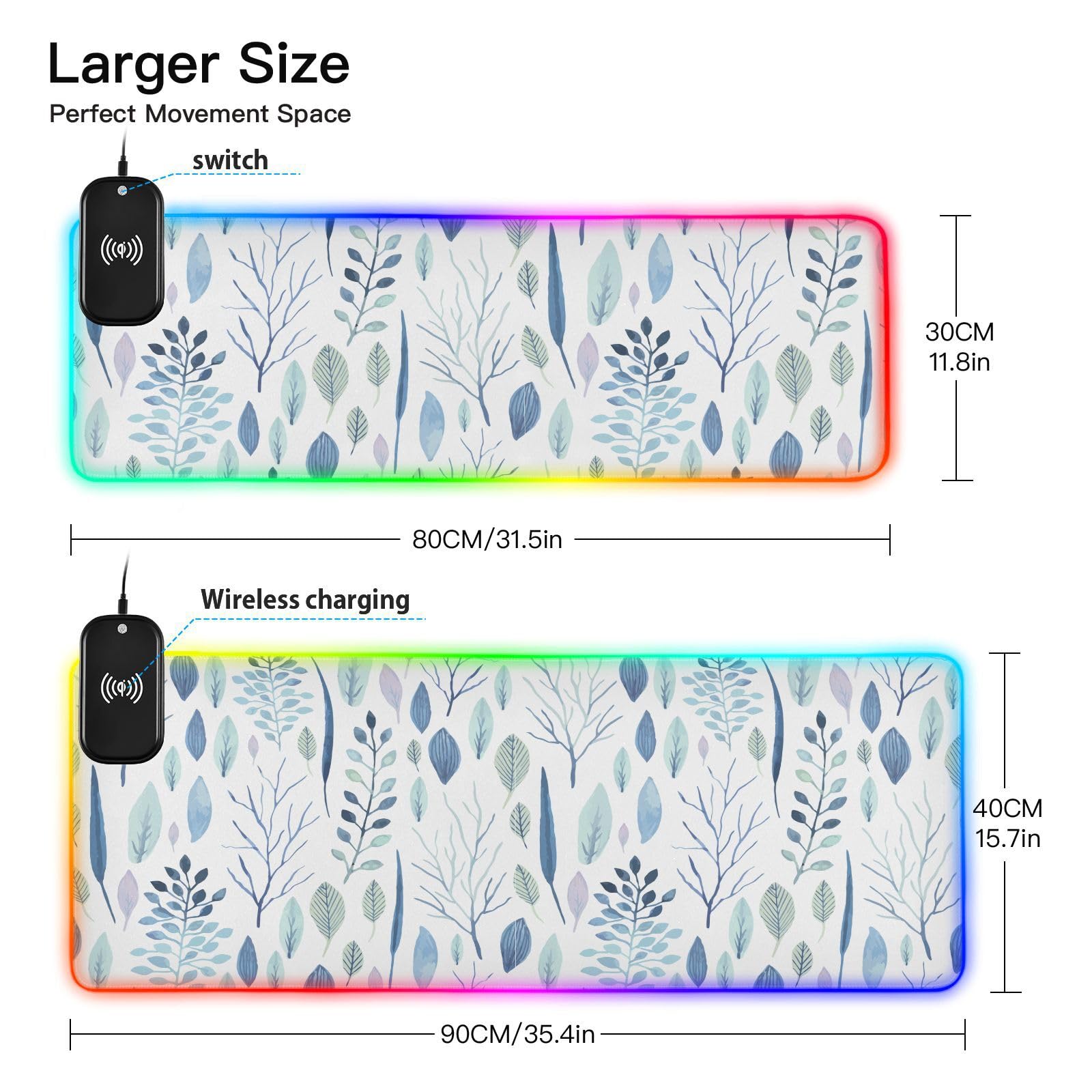 Flowers Leaves Wireless Charging Mouse Pad for Mobile Phone Extra Large Gaming Mousepad with 13 Lighting Modes Extended Desk Mat for Office Home Gaming MacBook PC Laptop Desk