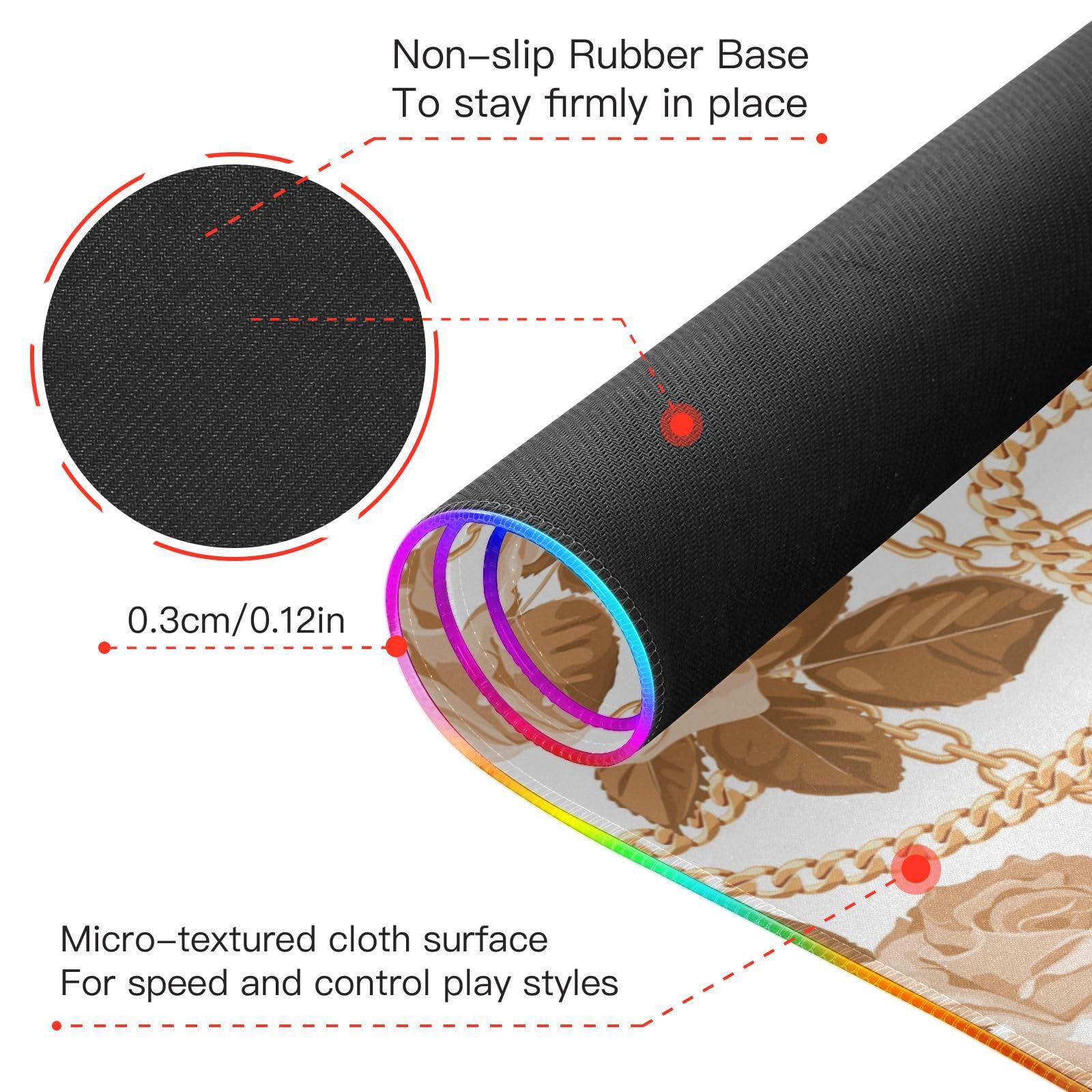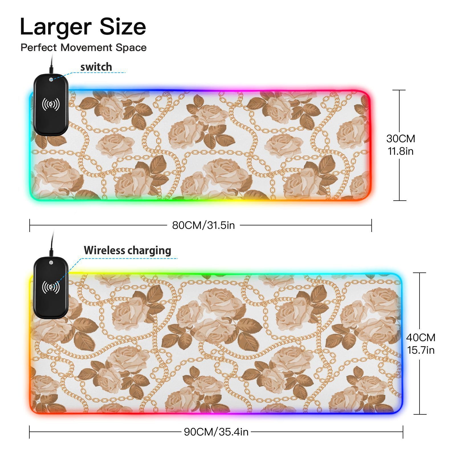 Golden Chains Beige Roses Wireless Charging Mouse Pad for Mobile Phone Extra Large Gaming Mousepad with 13 Lighting Modes Mouse Mat for Gaming MacBook PC Laptop Desk Office Home