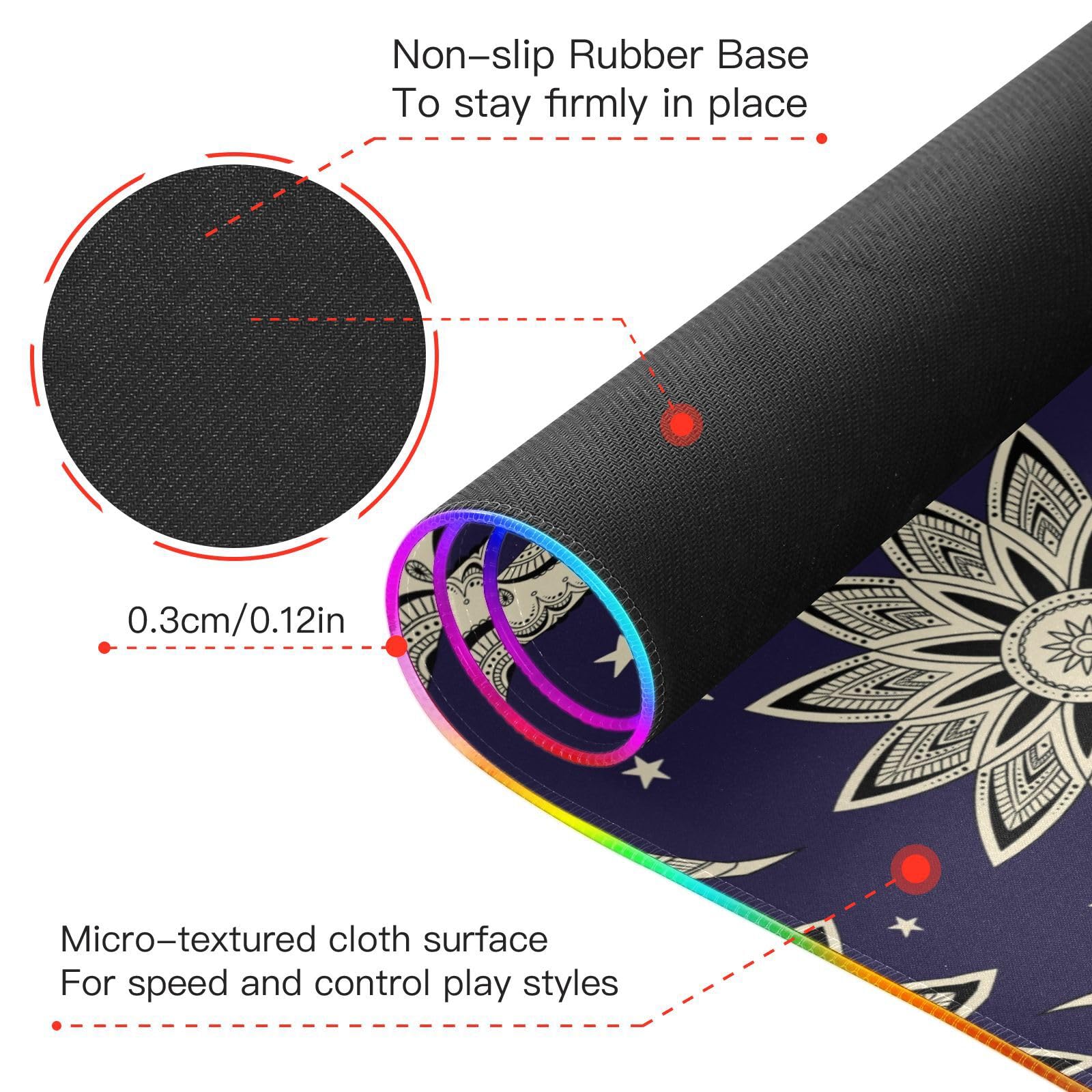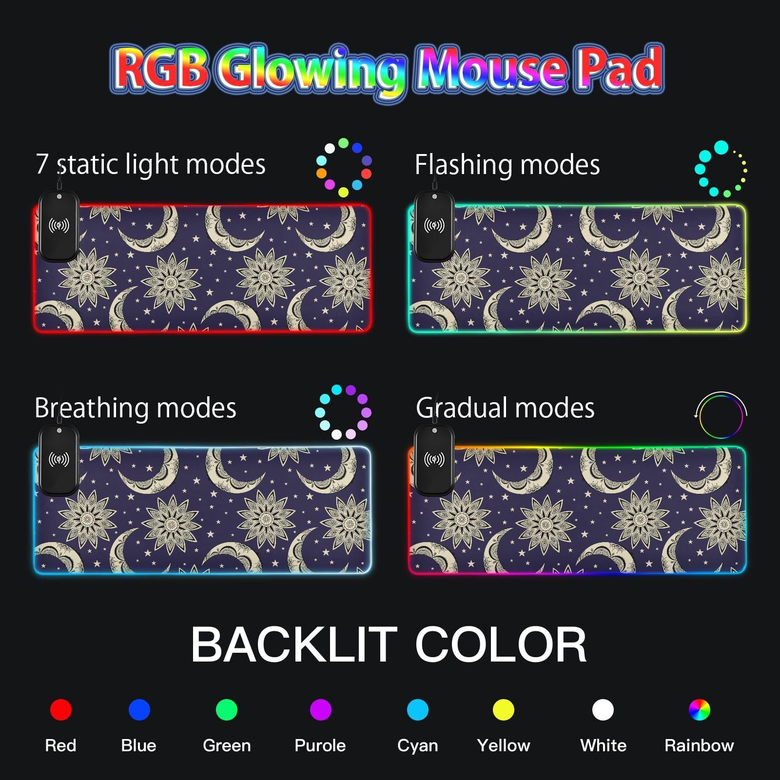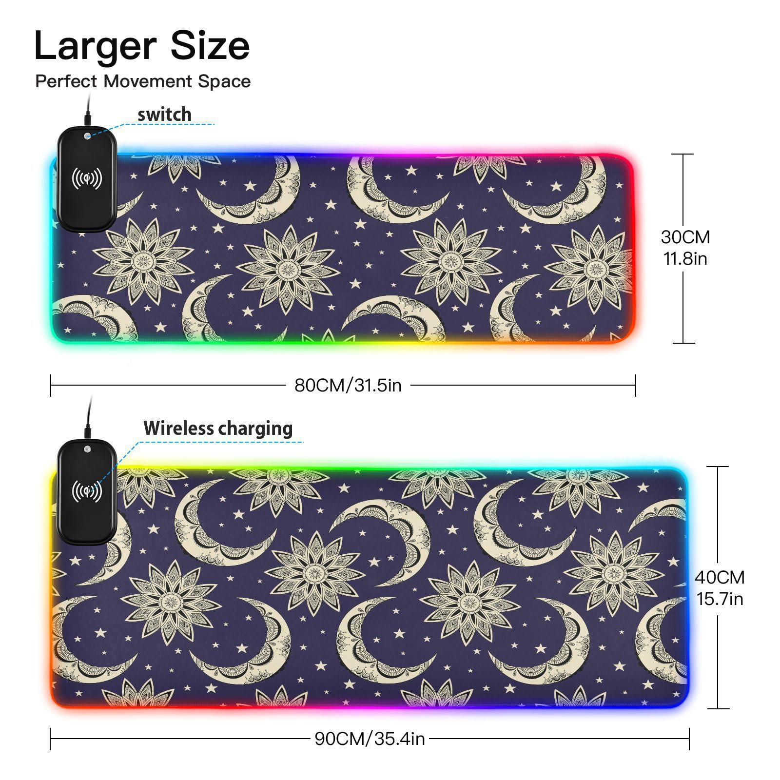 Boho Vintage Moon Sun Stars Wireless Charging Mouse Pad for Mobile Phone Extra Large Gaming Mousepad with 13 Lighting Modes Keyboard Mat for Gaming MacBook PC Laptop Desk Office Home