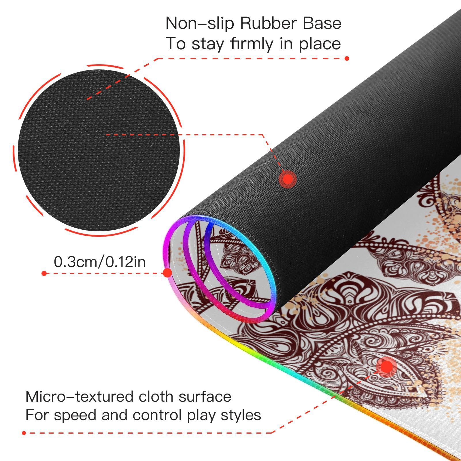 Boho Moon Sun Mandala Wireless Charging Mouse Pad for Mobile Phone Extra Large Gaming Mousepad with 13 Lighting Modes Keyboard Mat for Gaming MacBook PC Laptop Desk Office Home