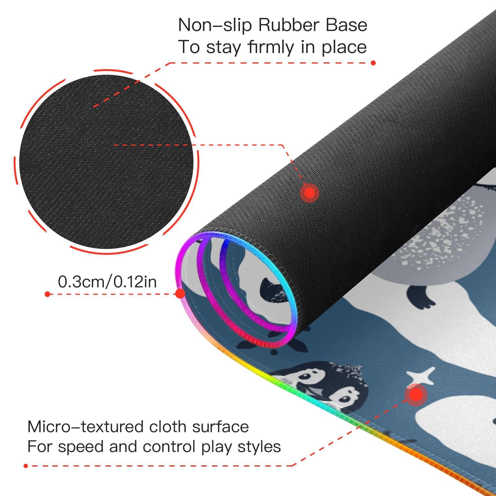 Cute Penguins Snowflakes Wireless Charging Mouse Pad for Mobile Phone Extra Large Gaming Mousepad with 13 Lighting Modes Keyboard Mat for MacBook PC Laptop Desk Office Home Gaming