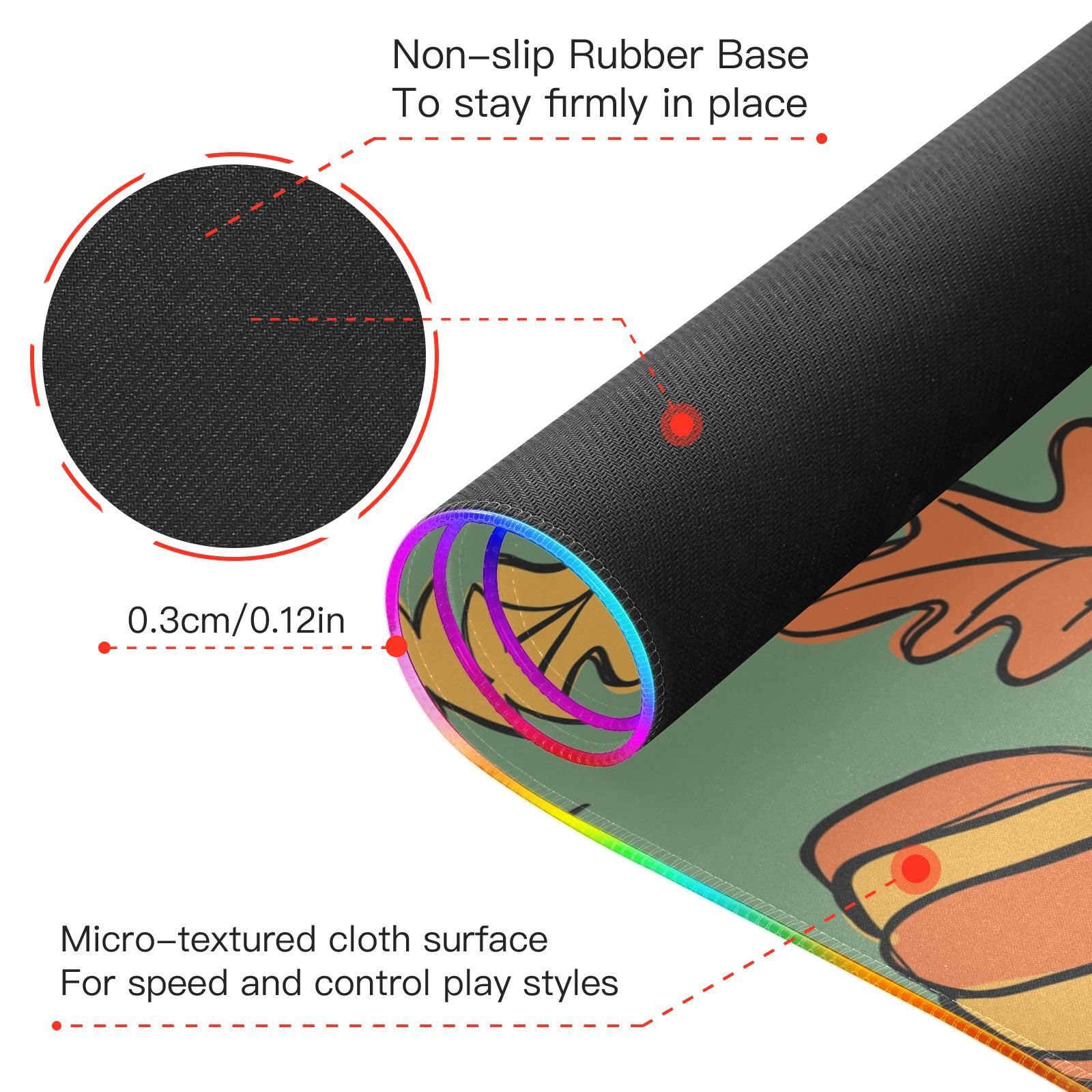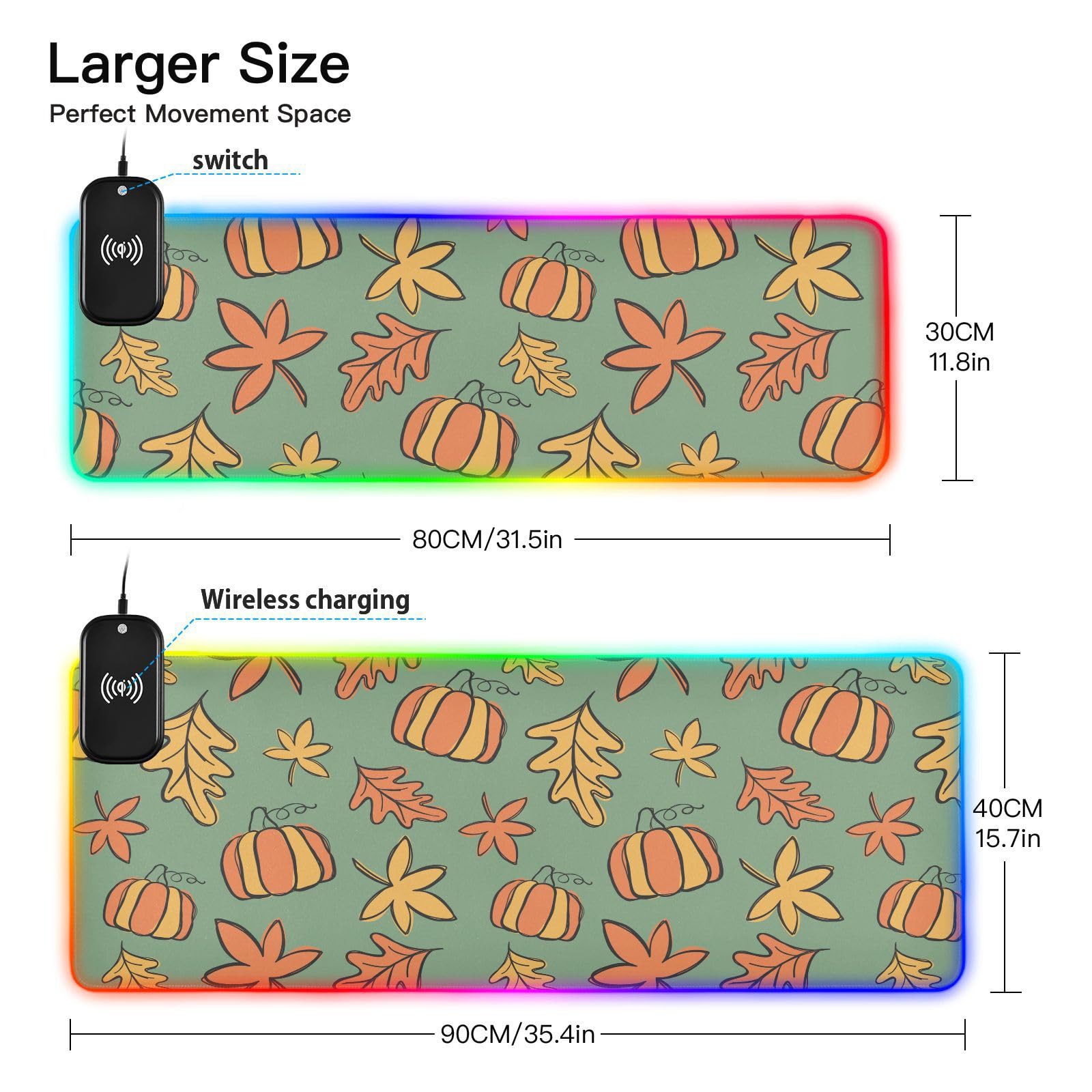 Autumn Fall Leaves Pumpkins Thanksgiving Wireless Charging Mouse Pad for Mobile Phone Extra Large Gaming Mousepad with 13 Lighting Modes Computer Mat for Gaming MacBook PC Laptop Desk Office Home