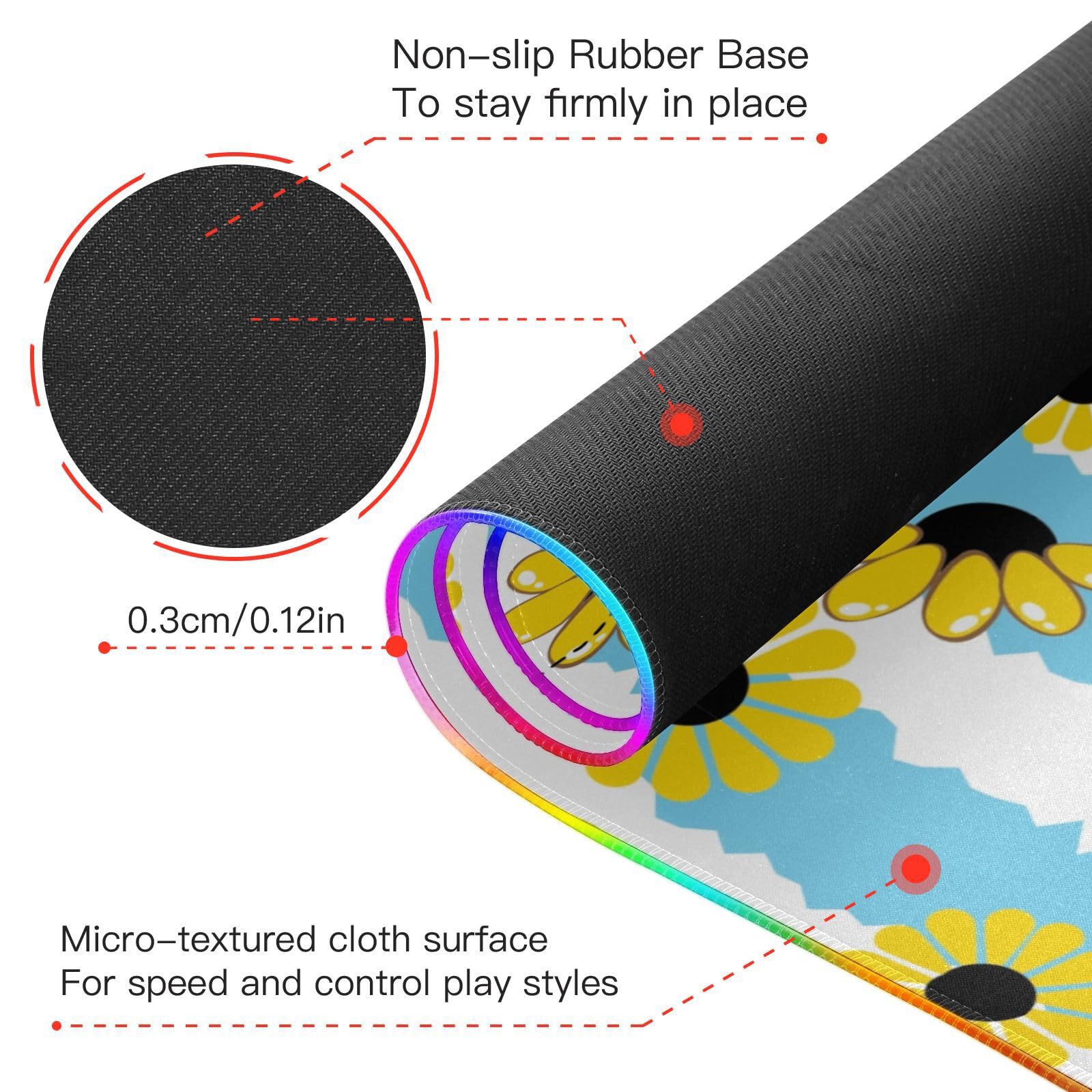 Bee Flowers Stripe Wireless Charging Mouse Pad for Mobile Phone Extra Large Gaming Mousepad with 13 Lighting Modes Computer Mat for Gaming MacBook PC Laptop Desk Home Office
