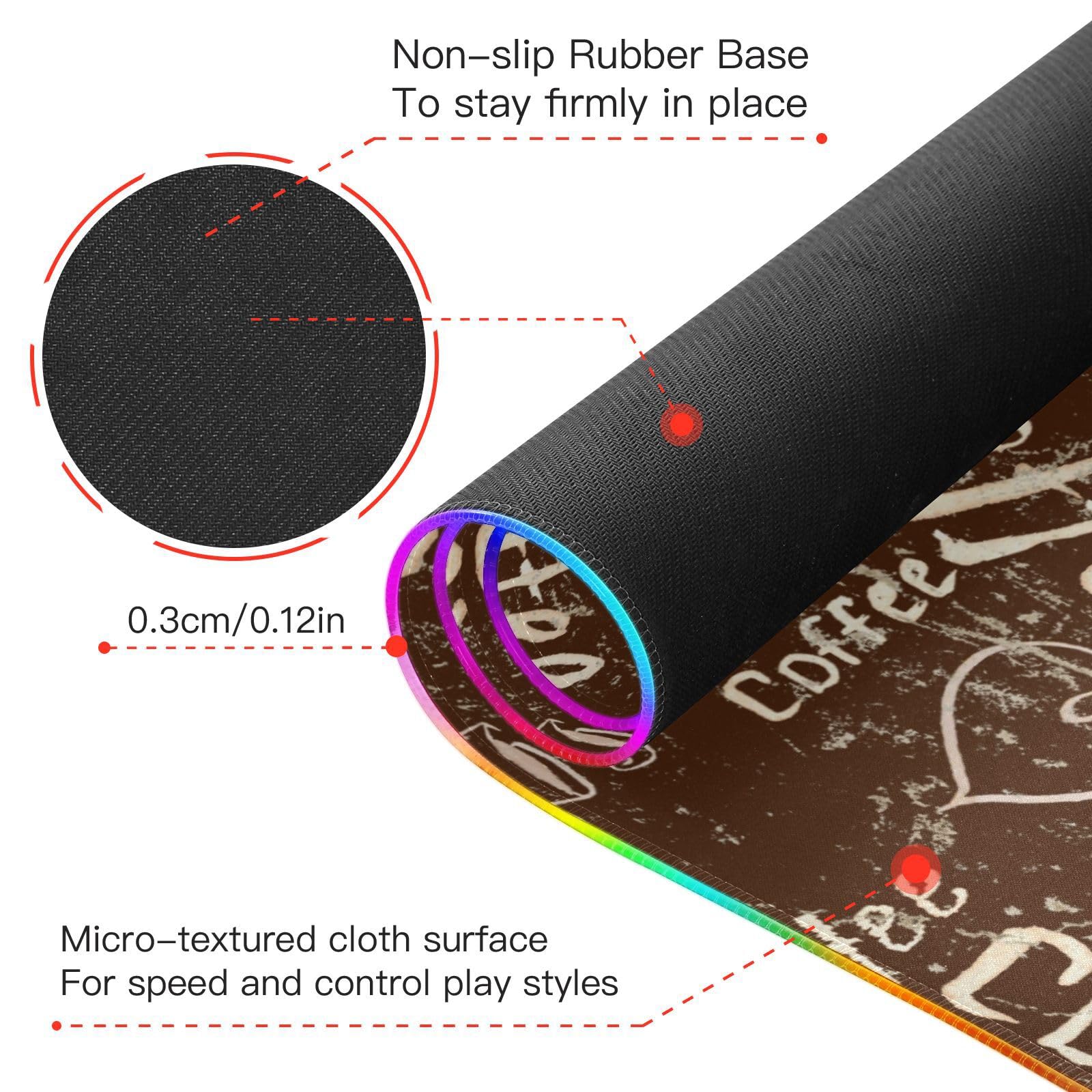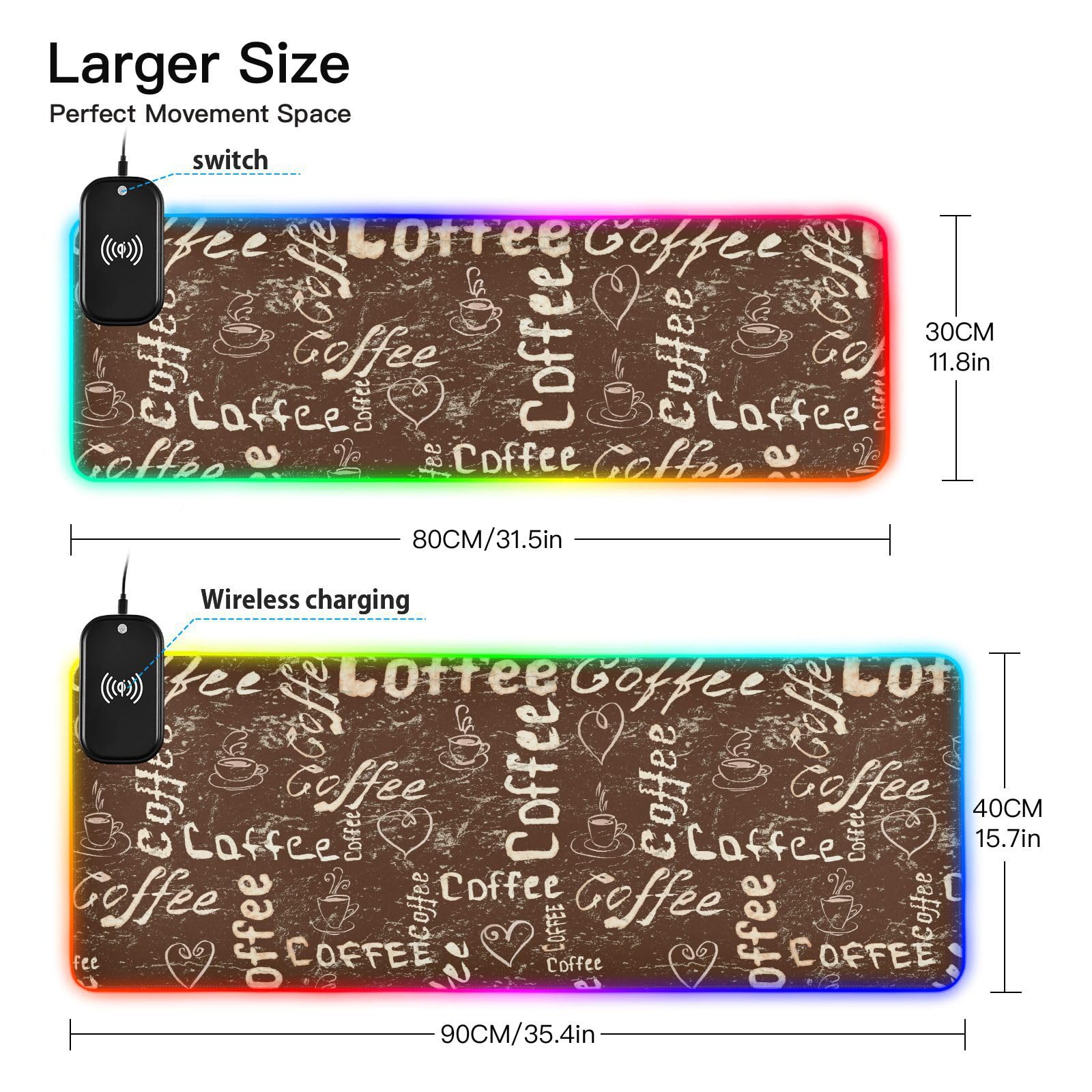 Coffee Cups Wireless Charging Mouse Pad for Mobile Phone Extra Large Gaming Mousepad with 13 Lighting Modes Mouse Mat for Gaming MacBook PC Laptop Desk Office Home