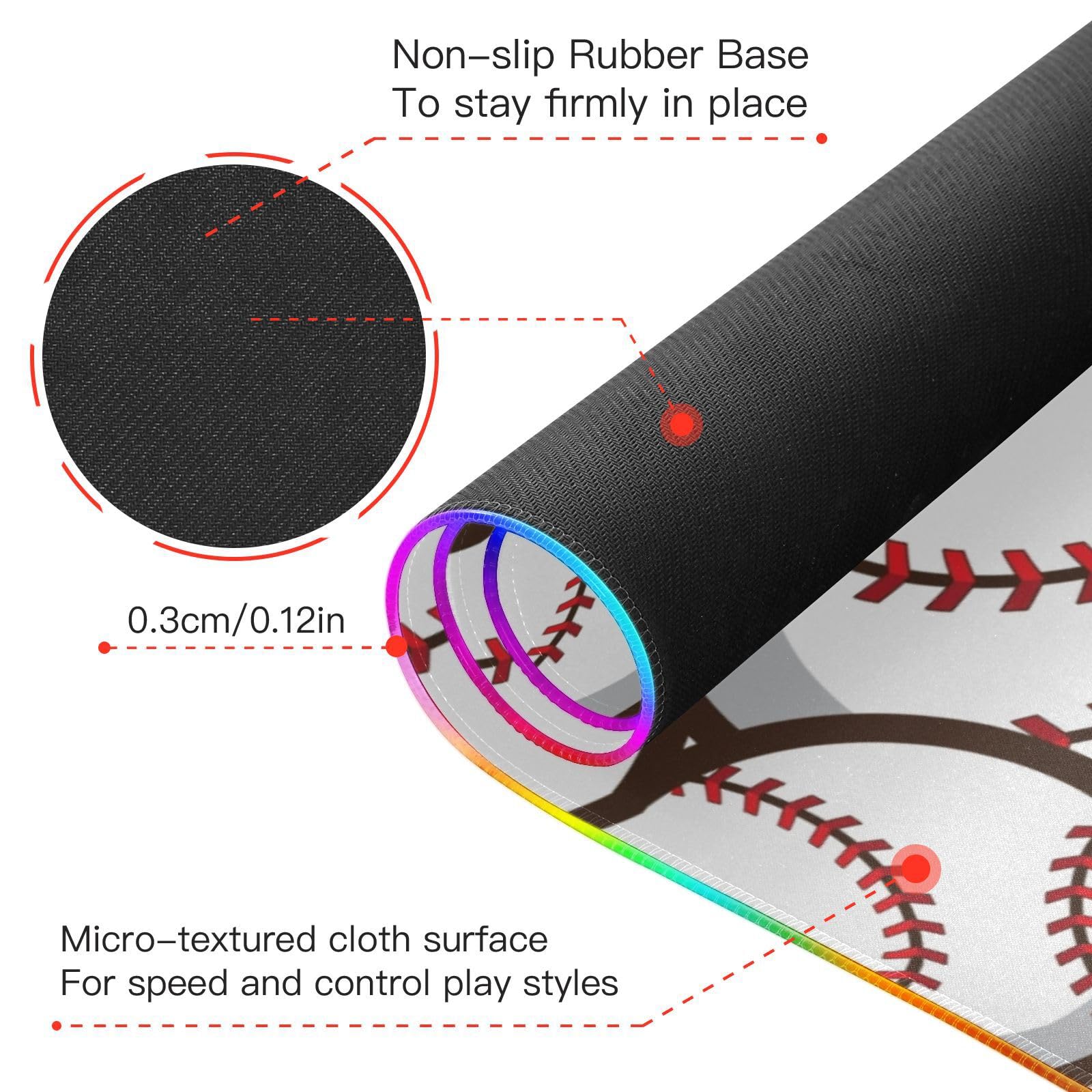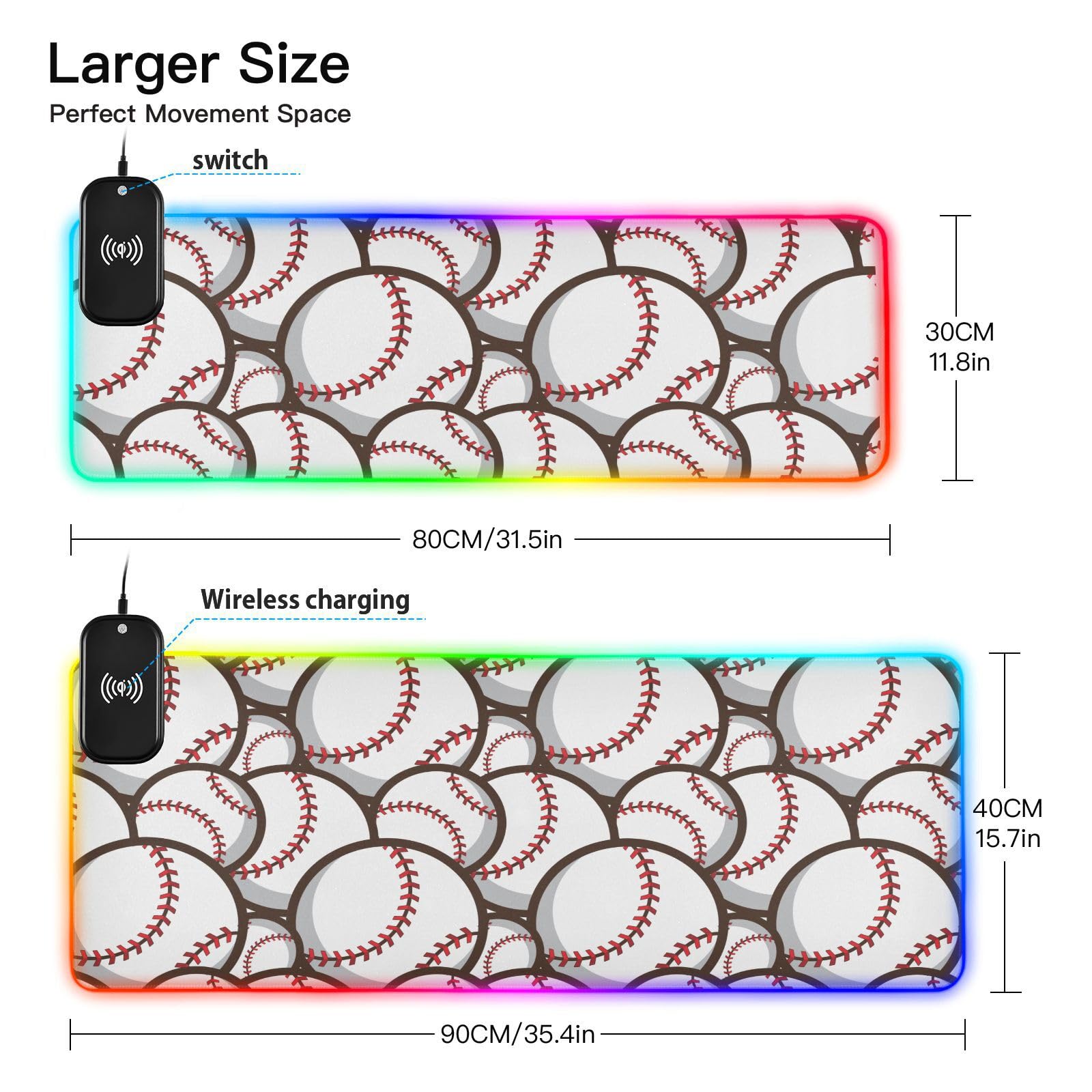 Baseball Ball Sport Wireless Charging Mouse Pad for Mobile Phone Extra Large Gaming Mousepad with 13 Lighting Modes Keyboard Mat for Office Home Gaming MacBook PC Laptop Desk